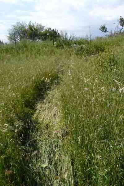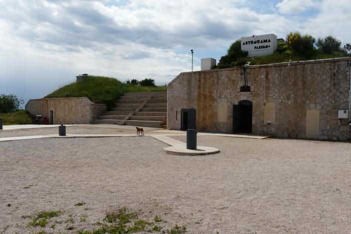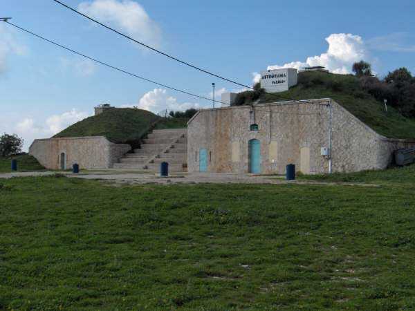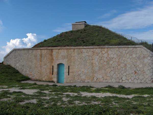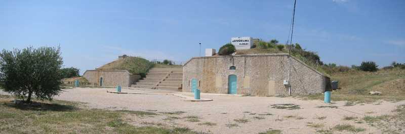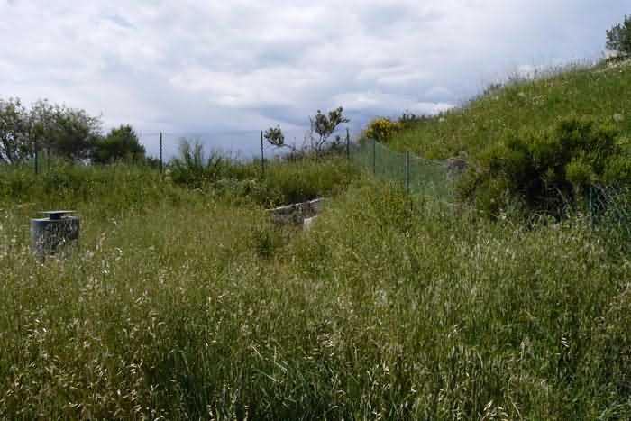 Fortress of Nice, east-north-east of the city, 188? 630 m/alt. From west to east, second annex battery of Revère fort, 1 000 m west of it. Today (05/2008) freely accessible, this battery distinguishes itself from the other batteries of the fortress by having two traverse-shelters. The left one has a normal size, while to its right, a second one is much more imposing, combining a small powder magazine as well as small troop quarters. Except for the doors, the openings are walled up, but the battery is clean, maintained and free of graffiti. The space between the two traverses has been provided with tiers for the activities of an Astrorama. Only the platform at the far right still shows a remnant of a parapet, quite low, and a traverse arm emerges there. It is a double, even triple platform. The relief spares the left traverse from having a platform to its left. It took us a long time to find, almost by chance, the battery magazine. It is of the same type as those encountered in Nice; a descending staircase leads to a gallery ending in a niche to the left and on both sides of which one finds a small room of 250/300 cm per side. This magazine is clean, well preserved, but lost in the vegetation on the left and below the battery.