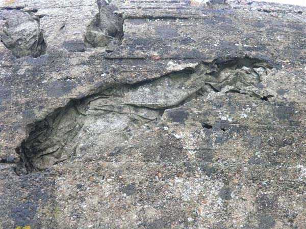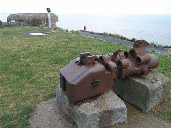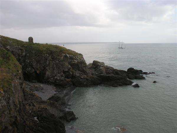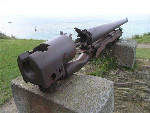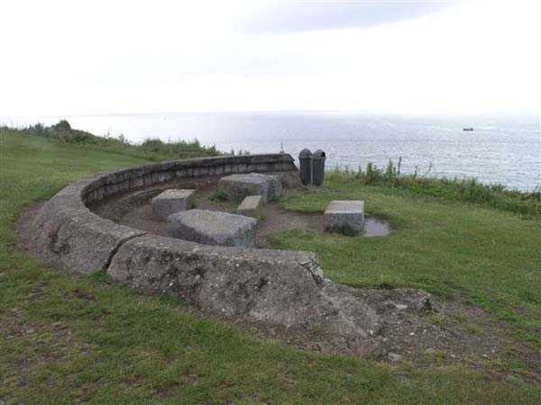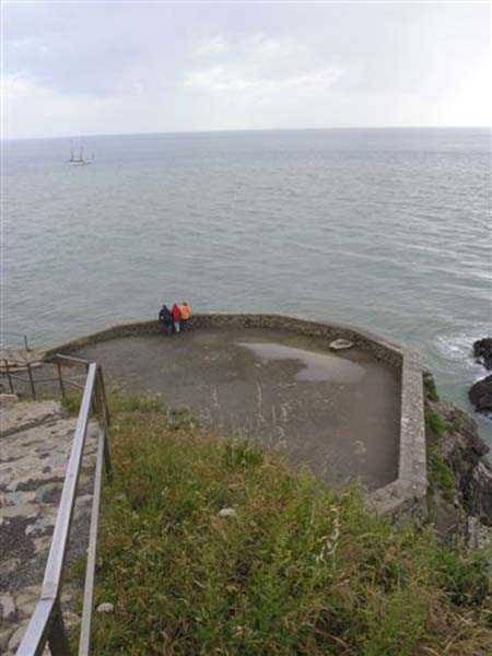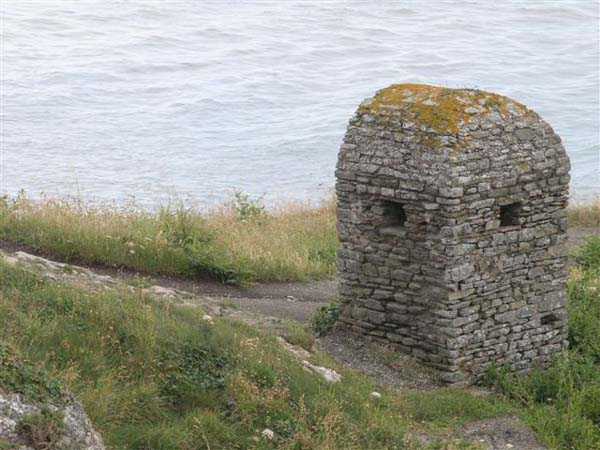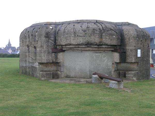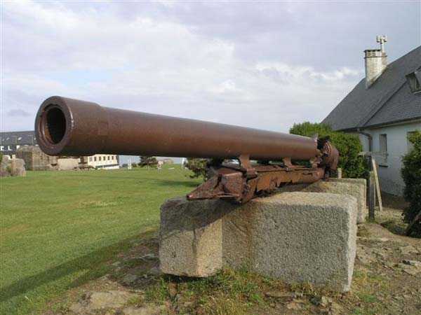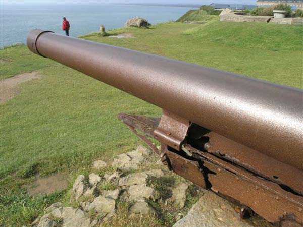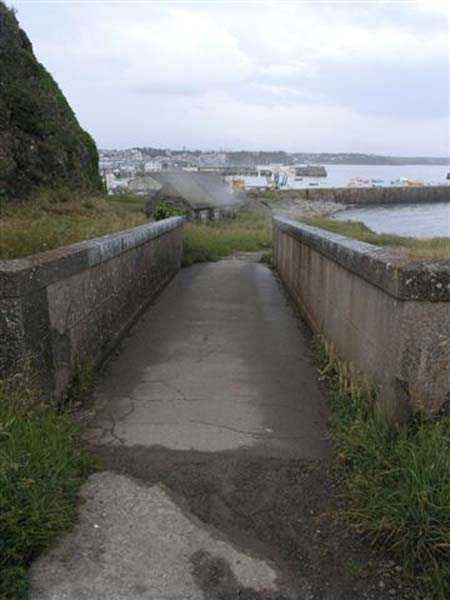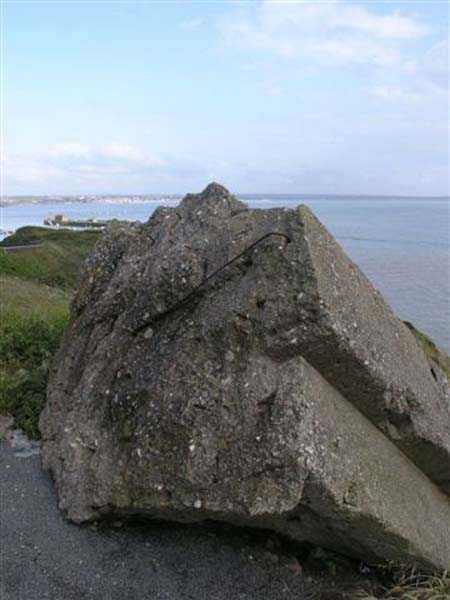 Fortress of Granville, west of the old town. 20 m alt. The end of the rock, as it is locally called, supporting the old town of Granville, peaks at 35 m alt. Its western end, designated as Cape Lihou, was not phagocytized by urbanization, the constructions remaining confined intra-muros or developing in the lower town. On the summit of this rock, one finds, in 1694, a first redoubt armed with 4 guns to which were added 2 mortars the following year. We have not found the year of construction of the so-called low battery of Cape Lihou, but it must be prior to 1860. In 1881, one finds there 3 smoothbore howitzers of 22 c replaced subsequently, at least on paper, by 3 guns of 16 c. Backed against the cliff, it consists of a platform with parapet. A short distance to its rear, the southern flank of the rock was quarried to allow the installation of a small barracks and, further still towards the port, a small powder magazine. This battery was declassified jointly with the others of the Granville arrondissement, in 1889. Today (05/2007), the coastal path crosses the battery from end to end, joining the summit of the rock where German blockhouses survive and the port. The platform and the magazine still subsist, but of the barracks or shelter for the servants, only the clearing in the rock is clearly discernible.