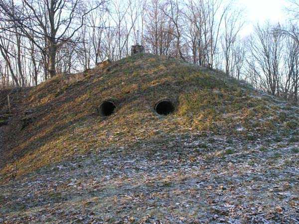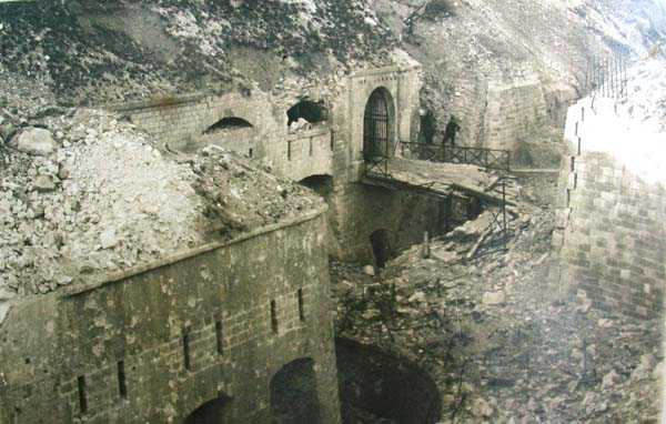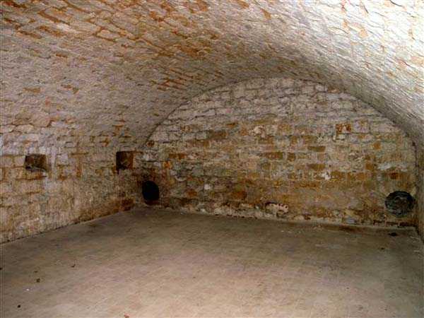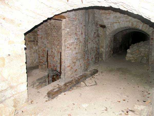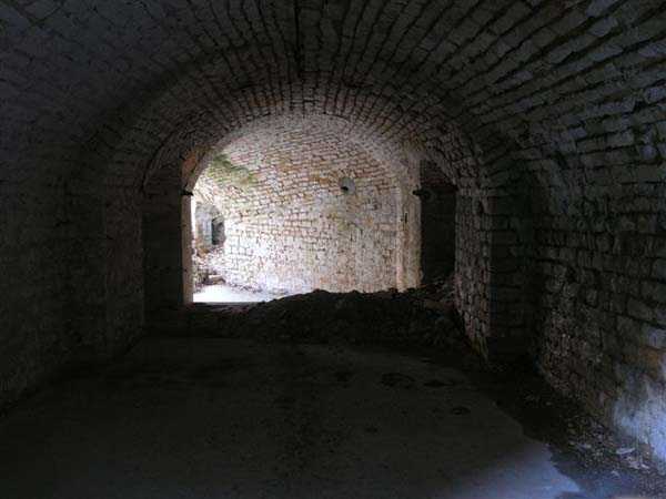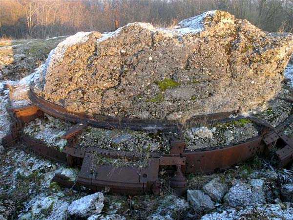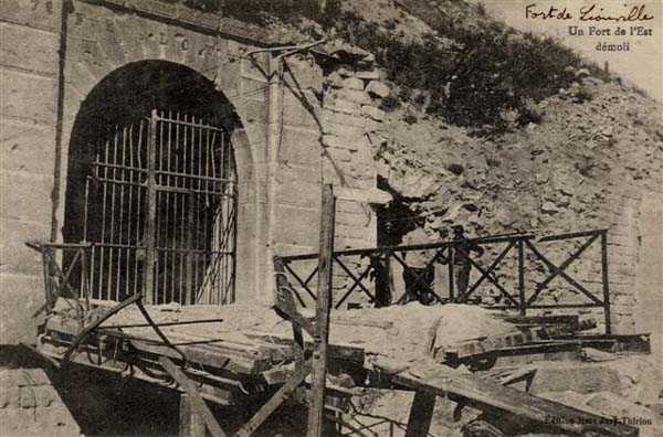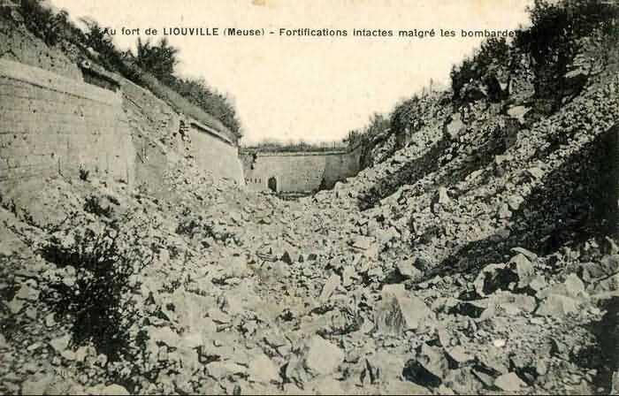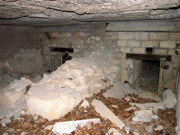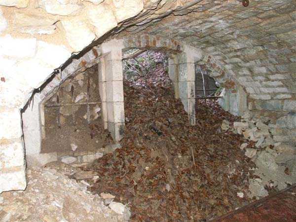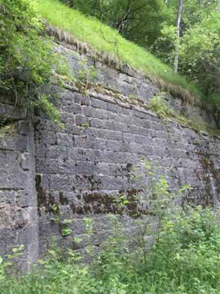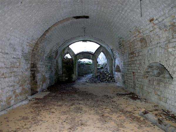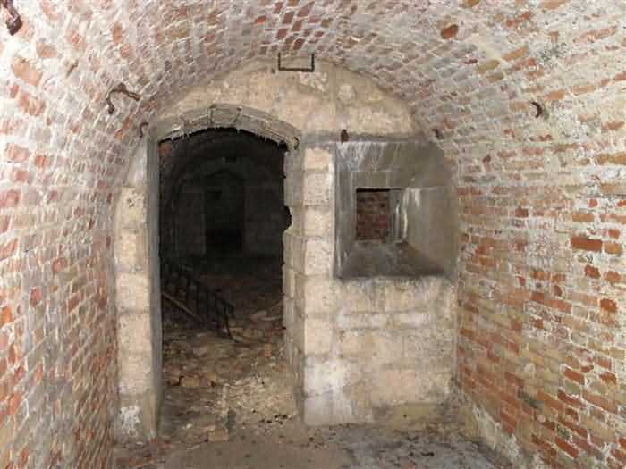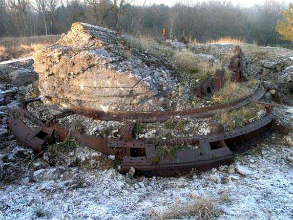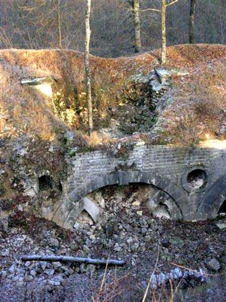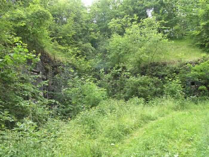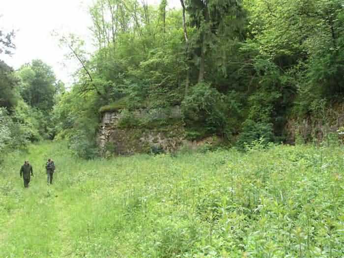 Defensive curtain of the Hauts de Meuse, 1876-1878. 380 m/alt. Called fort Stengel. 719 men and 45 guns including two under Mougin Mle 1876 turret. With its all-round missions, one would rather expect to find here a typical stopping fort, square in shape. Indeed, it dominates the Woëvre plain beyond which the enemy was sharpening its weapons. A hundred meters below, to the north, the Marbotte pass constituted a dangerous gap in the natural barrier of the Hauts de Meuse. To the south and 130 m below, another gap, that of Lérouville, where economic pressures finally overcame the categorical refusal of the military to run a railway line, had to be defended. Finally, to the west, the railway junction of Lérouville (a little over 7000 m away) and several bridges over the Meuse required surveillance and protection. Thus, against all expectations, a trapezoidal fort was to be built on this important height; a trapezoid with a curtain wall on its largest front. Usually, this largest front constitutes the gorge; here, it faces Germany. The gorge, determined by the presence of the entrance to the fort, will be the small southern flank of the structure, while the head of the trapezoid faces the Meuse. This singularity will condition the development of the fort and make it one of the most atypical of the entire Séré de Rivières system. Let's start with the perimeter defense. The flanking organs of the ditch, a wing at salient I and a double caponier at salient II face the Woëvre, and are therefore likely to be hit even by guns whose direct fire would take advantage of the length of the ditches to strike their embrasures. These organs are arranged as if the main attack were expected from the rear, that is, from the Meuse side. The base of the trapezoid, for its part, seems devoid of any defense, especially since the escarpment appears attached. It seems absurd, if not impossible, to leave this ditch unflanked. The flanks of the curtain wall of this front III-IV are also dominated by what one of the plans consulted determines to be indirect fire casemates, namely one close to salient III directed towards the Lérouville gap and two on the side of salient IV on the village of Saint-Agnant-sous-les-Côtes. In our opinion, this plan is erroneous and is nothing other than a crossfire defense identical to the initial one at the neighboring fort, Gironville, a defense carried out from the front of casemates serving as gun shelters. Unfortunately, the fighting of 1914 practically destroyed these three casemates, of which only the vaults of two are still visible. This being the case, their use as indirect fire casemates would probably have been possible. Despite everything, this profusion of such casemates seems to us all the more incongruous since the technical sheet of the Engineers, established on October 13, 1880, only lists two guns to arm them. An armament proposal for 1909 nevertheless recommends four 22 c smoothbore mortars and four others of 15 c smoothbore (or even, instead, six 15 c) but there is no indication that they were used from these casemates. Since we are discussing the perimeter, it should be noted that all the plans that have come down to us determine the southeast corner of the fort as salient I. For our part, we remain faithful to the principle of numbering in a clockwise direction from the salient closest to the left of the fort entrance. Thus, "our" salient I corresponds to salient II on the plans. The guns are arranged along the different fronts, but only front I-II has a real rampart street. The latter served nine sheltered traverses, four of which were entrenched. These are on two levels. Such a proportion of entrenched traverses clearly demonstrates that people expected to receive shots from all sides. Facing the Woëvre, three sheltered traverses framed four firing platforms at salient IV and, above the curtain wall, we find two pairs of direct-fire casemates. The short sides, responsible for defending the gaps, are each equipped with an indirect fire casemate (always according to the same plan) and two shelter traverses facing south and three facing north. Almost in the extension of the entrance tunnel, two indirect fire casemates (real ones!), aimed at the hamlet of Marbotte are attached. The center of the fort, along its length, comprises four parallel axes. From left to right when facing the entrance, we have the rampart street of front I-II, bordered on its right by the extension of the entrance tunnel, an extension materialized by four long rooted passages, the last of which opens near the descent shaft to the double caponier. Then, practically along the large median of the fort, a completely covered gallery connects the two indirect fire casemates (?) on the small flanks alongside two powder magazines (for a total capacity of 143,000 kg), the barracks, the bakery, the kitchens and access to the optical communications post. Finally, a last axis runs through the four courtyards of the barracks, ending up abutting a shelter traverse of font III-IV. Three of these courtyards are triangular. These are numbers 1, 3 and 4 or, according to plans, 1, 3 and 5. Indeed, a series of barracks planned between the two northern triangular courtyards seems never to have been realized and the courtyard to precede it, being only embryonic, is counted or not. In fact, at the 1914 mobilization, the housing capacity, deficit, will force to send part of the garrison to go to the neighboring forts. These courtyards were thought to be light wells with a blackout device, but this is not the case. The barrel vaults of the barracks are highlighted on the facade by an arch of cut stone. The builders had the good taste to adorn these facades with pointed arch windows, giving the place a Gothic cloister atmosphere. By chance, on Sundays in August and September 1914, masses were celebrated there. In addition to the eminently aesthetic aspect of the thing, it should be noted that this option is uni