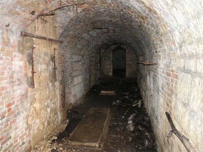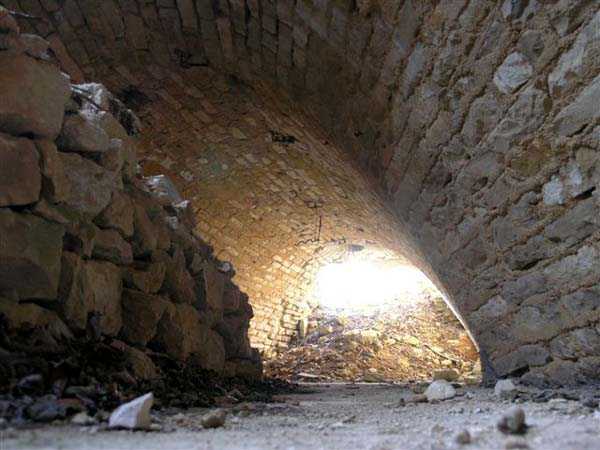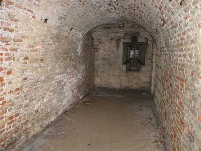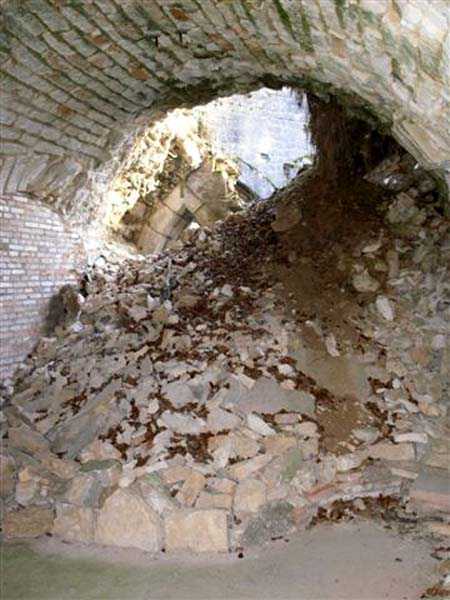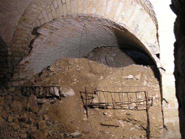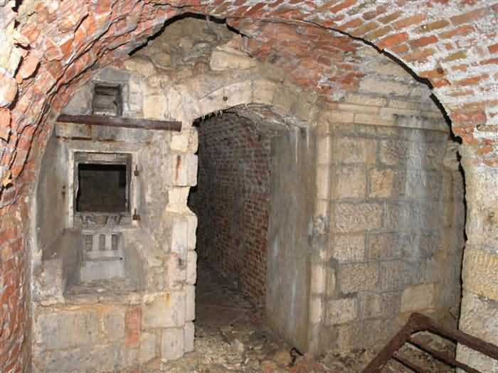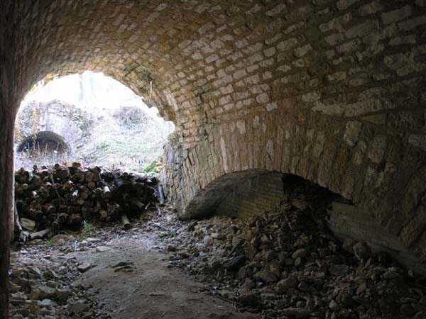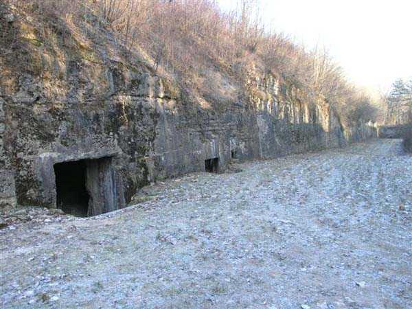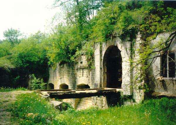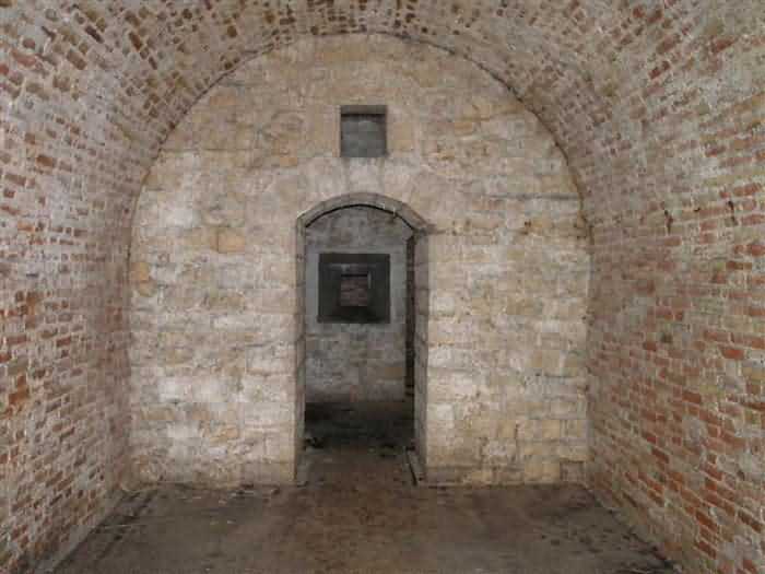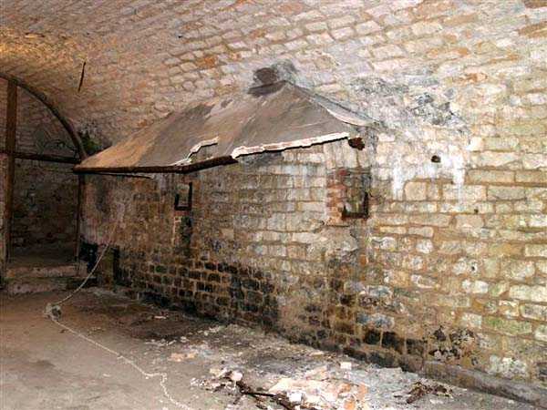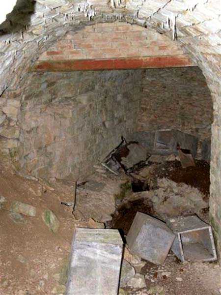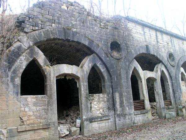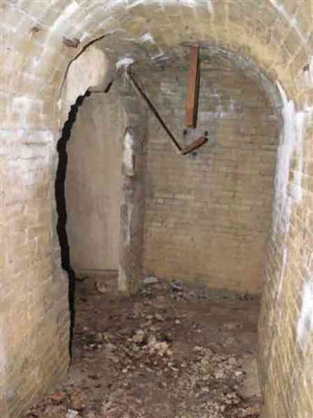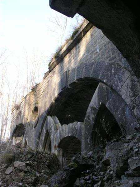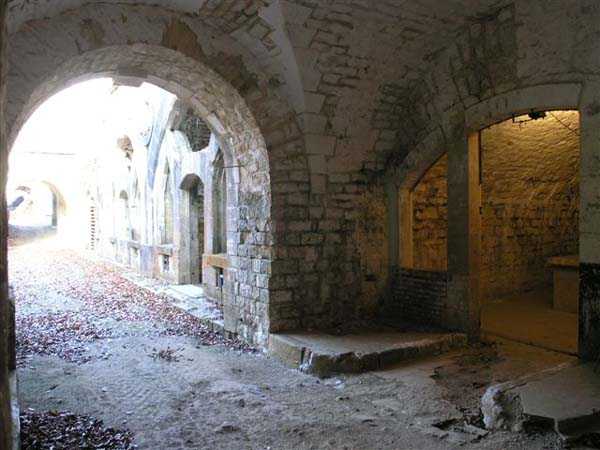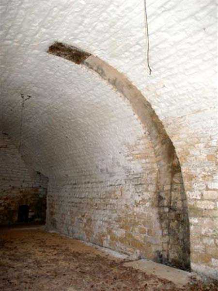 Defensive curtain of the Hauts de Meuse, 1876-1878. 380 m/alt. Called fort Stengel. 719 men and 45 guns including two under Mougin Mle 1876 turret. With its all-round missions, one would rather expect to find here a typical stopping fort, square in shape. Indeed, it dominates the Woëvre plain beyond which the enemy was sharpening its weapons. A hundred meters below, to the north, the Marbotte pass constituted a dangerous gap in the natural barrier of the Hauts de Meuse. To the south and 130 m below, another gap, that of Lérouville, where economic pressures finally overcame the categorical refusal of the military to run a railway line, had to be defended. Finally, to the west, the railway junction of Lérouville (a little over 7000 m away) and several bridges over the Meuse required surveillance and protection. Thus, against all expectations, a trapezoidal fort was to be built on this important height; a trapezoid with a curtain wall on its largest front. Usually, this largest front constitutes the gorge; here, it faces Germany. The gorge, determined by the presence of the entrance to the fort, will be the small southern flank of the structure, while the head of the trapezoid faces the Meuse. This singularity will condition the development of the fort and make it one of the most atypical of the entire Séré de Rivières system. Let's start with the perimeter defense. The flanking organs of the ditch, a wing at salient I and a double caponier at salient II face the Woëvre, and are therefore likely to be hit even by guns whose direct fire would take advantage of the length of the ditches to strike their embrasures. These organs are arranged as if the main attack were expected from the rear, that is, from the Meuse side. The base of the trapezoid, for its part, seems devoid of any defense, especially since the escarpment appears attached. It seems absurd, if not impossible, to leave this ditch unflanked. The flanks of the curtain wall of this front III-IV are also dominated by what one of the plans consulted determines to be indirect fire casemates, namely one close to salient III directed towards the Lérouville gap and two on the side of salient IV on the village of Saint-Agnant-sous-les-Côtes. In our opinion, this plan is erroneous and is nothing other than a crossfire defense identical to the initial one at the neighboring fort, Gironville, a defense carried out from the front of casemates serving as gun shelters. Unfortunately, the fighting of 1914 practically destroyed these three casemates, of which only the vaults of two are still visible. This being the case, their use as indirect fire casemates would probably have been possible. Despite everything, this profusion of such casemates seems to us all the more incongruous since the technical sheet of the Engineers, established on October 13, 1880, only lists two guns to arm them. An armament proposal for 1909 nevertheless recommends four 22 c smoothbore mortars and four others of 15 c smoothbore (or even, instead, six 15 c) but there is no indication that they were used from these casemates. Since we are discussing the perimeter, it should be noted that all the plans that have come down to us determine the southeast corner of the fort as salient I. For our part, we remain faithful to the principle of numbering in a clockwise direction from the salient closest to the left of the fort entrance. Thus, "our" salient I corresponds to salient II on the plans. The guns are arranged along the different fronts, but only front I-II has a real rampart street. The latter served nine sheltered traverses, four of which were entrenched. These are on two levels. Such a proportion of entrenched traverses clearly demonstrates that people expected to receive shots from all sides. Facing the Woëvre, three sheltered traverses framed four firing platforms at salient IV and, above the curtain wall, we find two pairs of direct-fire casemates. The short sides, responsible for defending the gaps, are each equipped with an indirect fire casemate (always according to the same plan) and two shelter traverses facing south and three facing north. Almost in the extension of the entrance tunnel, two indirect fire casemates (real ones!), aimed at the hamlet of Marbotte are attached. The center of the fort, along its length, comprises four parallel axes. From left to right when facing the entrance, we have the rampart street of front I-II, bordered on its right by the extension of the entrance tunnel, an extension materialized by four long rooted passages, the last of which opens near the descent shaft to the double caponier. Then, practically along the large median of the fort, a completely covered gallery connects the two indirect fire casemates (?) on the small flanks alongside two powder magazines (for a total capacity of 143,000 kg), the barracks, the bakery, the kitchens and access to the optical communications post. Finally, a last axis runs through the four courtyards of the barracks, ending up abutting a shelter traverse of font III-IV. Three of these courtyards are triangular. These are numbers 1, 3 and 4 or, according to plans, 1, 3 and 5. Indeed, a series of barracks planned between the two northern triangular courtyards seems never to have been realized and the courtyard to precede it, being only embryonic, is counted or not. In fact, at the 1914 mobilization, the housing capacity, deficit, will force to send part of the garrison to go to the neighboring forts. These courtyards were thought to be light wells with a blackout device, but this is not the case. The barrel vaults of the barracks are highlighted on the facade by an arch of cut stone. The builders had the good taste to adorn these facades with pointed arch windows, giving the place a Gothic cloister atmosphere. By chance, on Sundays in August and September 1914, masses were celebrated there. In addition to the eminently aesthetic aspect of the thing, it should be noted that this option is uni