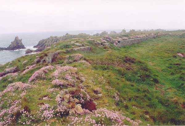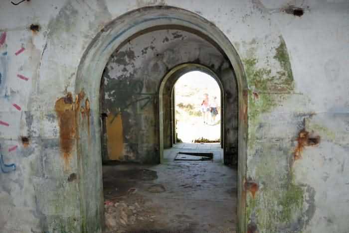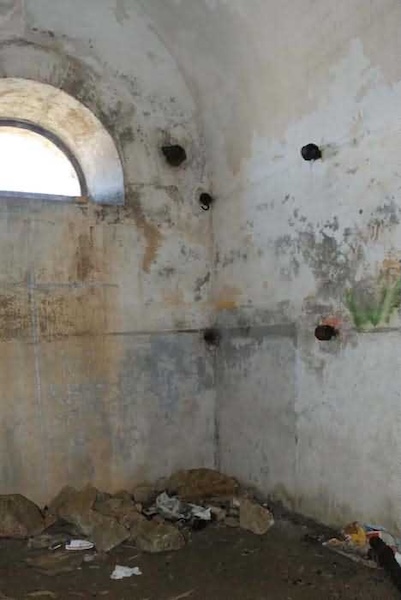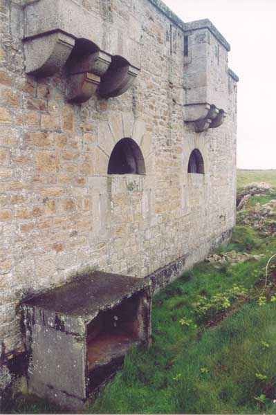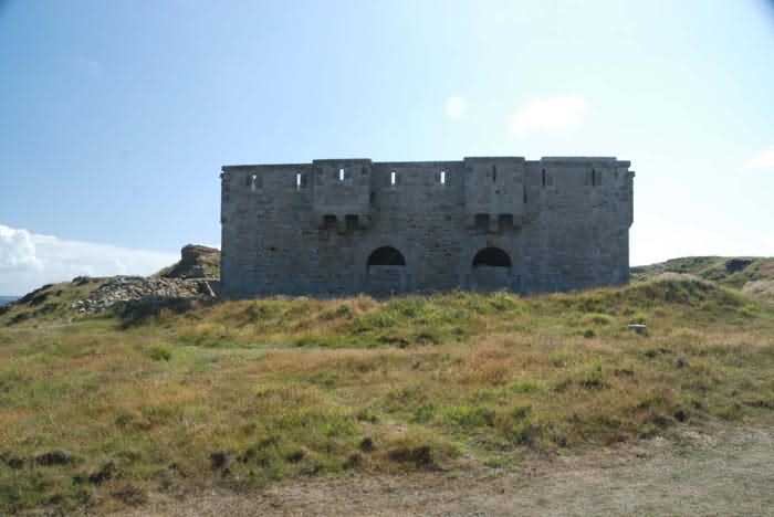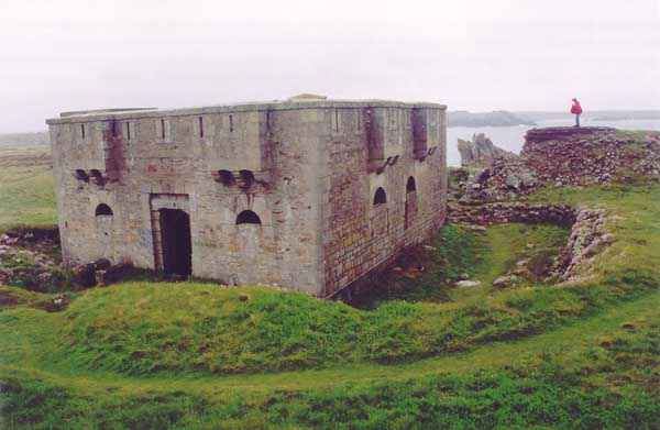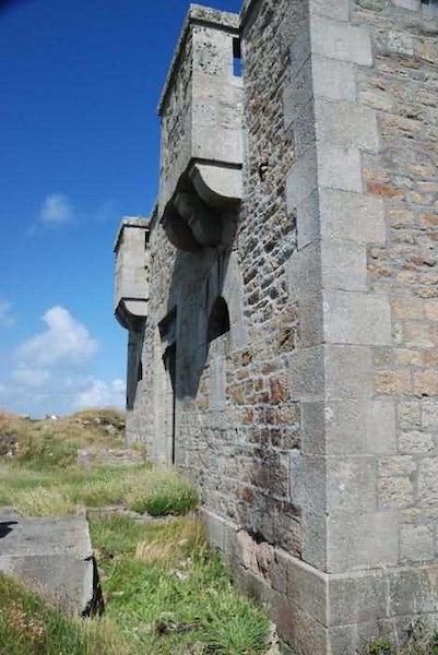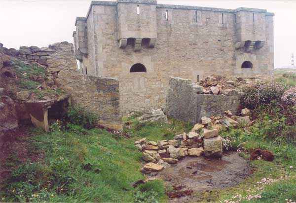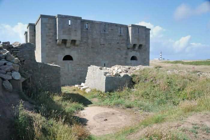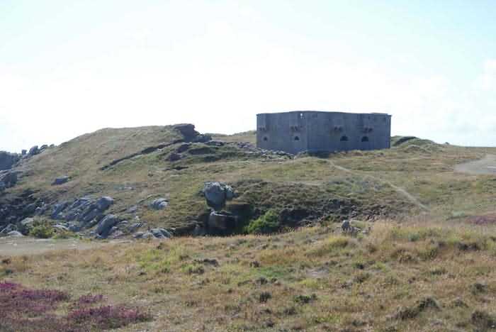 Fortress of Brest, Ouessant island. Almost at the north-western tip of the island, this battery swept perpendicularly the Lampaul bay. A guardhouse model 1846 No. 3, erected in 1862 at 17 m alt, was extended on its right by an area of ± 40 × 25 m bordered by a stone parapet behind which the pieces took place. In May 1876, the Coastal Defence Commission pronounced in favour of the declassification of this battery which, however, seems to have known subsequent activity. This is confirmed by Louis Le Guen (see bibliography) who mentions there, in 1939, 2 guns of 90 mm. One of the gun emplacements is still discernible, the second saw its earth protection walls collapse covering it. The same Le Guen mentions a garrison there in October 1898 upon the appearance of an English squadron. Effectively, one finds mention of a restoration in 1899 so that the reduit serves as quarters. The site is open to all winds and is worth the detour, if not for its some humorous graffiti dating from the Phoney War, for the impressive landscape offered by this end of the continent. Within the bibliography, we have found the spelling "Loc Gweltas". The place is known locally under the name of "fort de Roch Kroum".