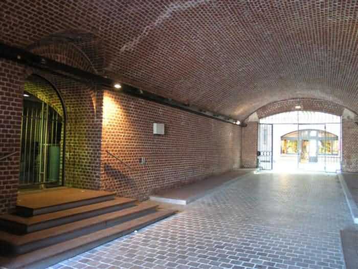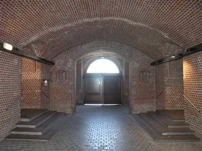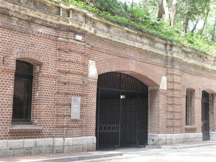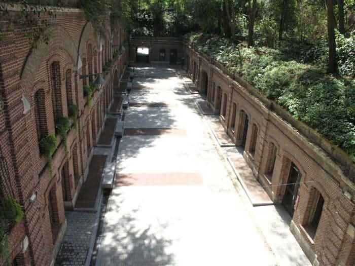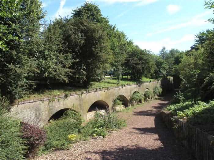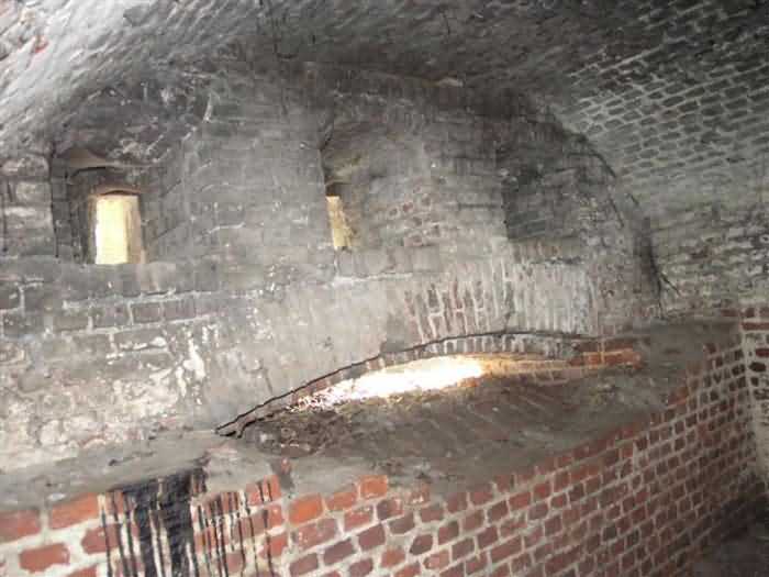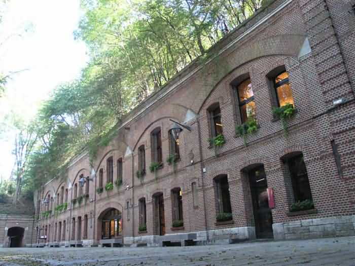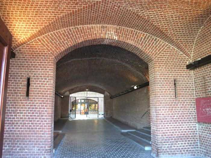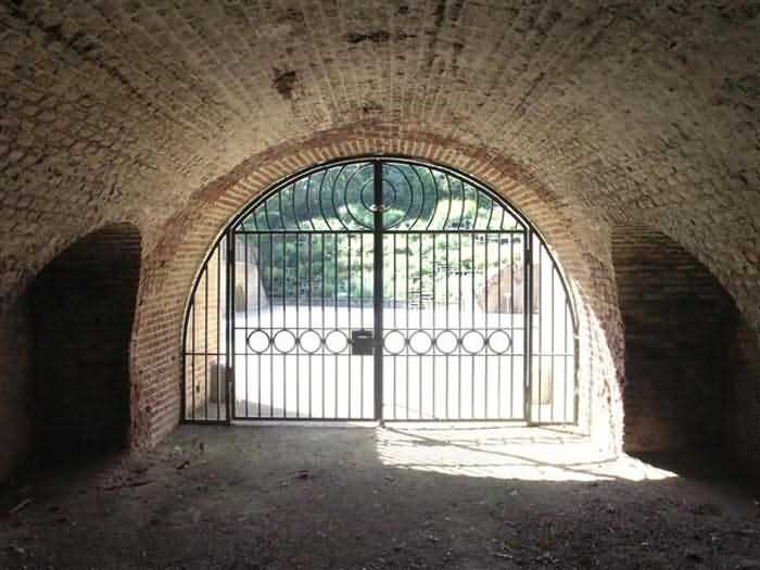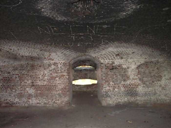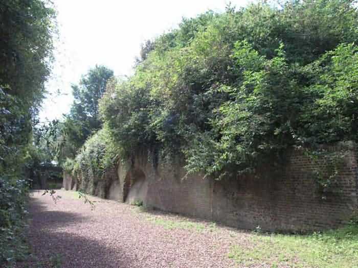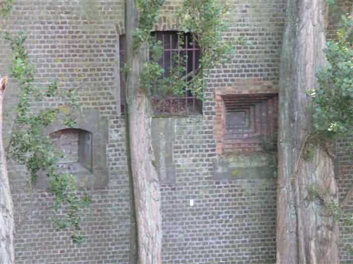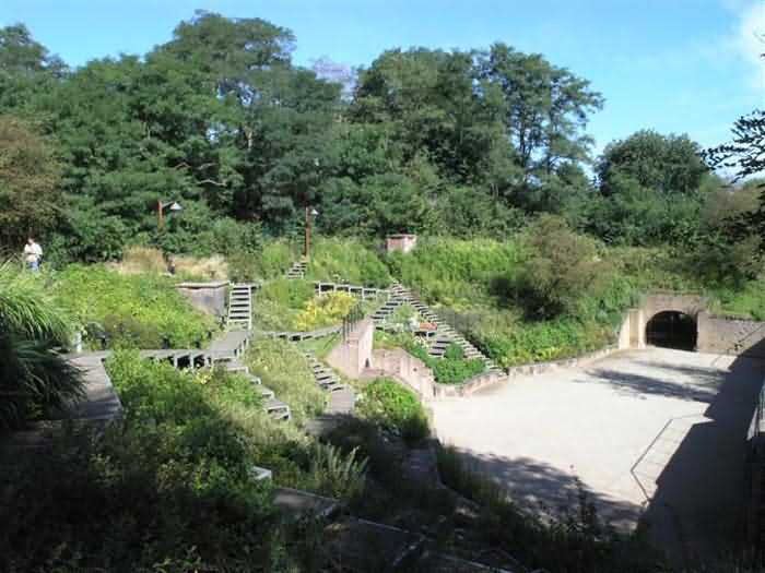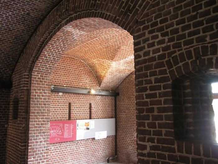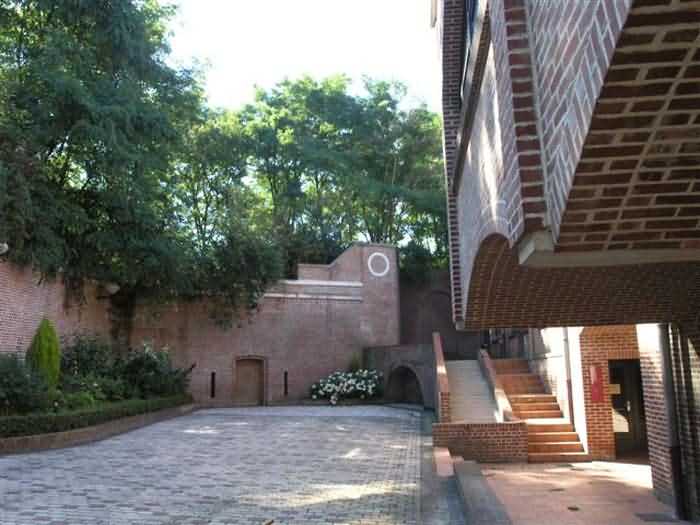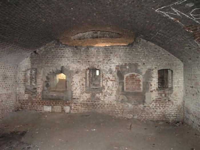 Fortress of Lille, east of the town, 1879-1883. ± 50 m above sea level. Named fort Mac Donald. Regular trapezoid with a re-entering gorge, its dry ditches were defended by a double caponier at salient II and an aileron at salient III. The counterscarp is in relieving arches and the escarp, the essential facing of which has disappeared, must have been detached. The caponiers, however, were not connected to any covered way. A wide curtain wall at the gorge shows, at its center, the entrance porch, which has, on either side, a line of three casemates on two levels (0 and -1) constituting the gorge barracks. The returns of this curtain wall house the coffers which, by their crossfire, ensure the defence of the gorge ditch. According to the panel displayed at the entrance, it was equipped with a bascule bridge underneath. First singular feature, the entrance tunnel is quite wide and, on either side of the defunct gate, a brick wall pierced with a loophole defended the axis of this entrance. The space between this gate and the raised deck of the bridge was furthermore taken on the flank by the loopholes of the contiguous casemates. The tunnel opens into a large transverse courtyard where, with its back to the head front, is the troop barracks composed of six bays on two levels (0 and +1), the whole framed by two narrower bays. Facing these dormitories, is the rear of level 0 of the casemates of the gorge barracks. Each of the flanks of this courtyard gives onto a tunnel passage allowing access to the north and south courtyards. These are identical and one sees there an imposing curved wall ensuring the protection of the entrance airlock of the powder magazines. These are arranged perpendicularly to the lateral fronts of the fort. Each of these courtyards allows access to the single traverse-shelter that each flank of the fort possesses. Still in these courtyards, on this side of the aforementioned curved wall, opens via a tunnel passage the rampart street. This serves nine traverse-shelters, including two rooted ones. The latter frame three traverse-shelters Mle 1879, the line of which constitutes the center of the head front. Behind each salient of this head front, one finds two other traverse-shelters, two of which have their back wall pierced to allow the passage for a corridor debouching first into the open air in an infantry bonnet, before reaching, via another tunnel, the caponiers. The majority of the fort's artillery pieces were directed towards Roubaix. The tops of the barracks, organized as infantry crests, include at least two sally ports and an impressive quantity of chimneys and other light well heads. Regarding particularities, we note that the abutments at the front of the traverse-shelters Mle 1879 are provided with a small ventilation shaft. Still concerning these traverses, their shelter body includes several lateral niches in which brick ledges allowed the installation of two rows of planks. The passages of the rampart street under the rooting of the traverses also include lateral niches, niches the floor of which is curved downwards. The projectile magazines of the double caponier have one of their right angles broken by the passage of the escarp flanking gallery. They also have, each, a light well. Only the flank enfilading the head front is provided with a large visor. Vertically to the wall of the embrasures, an oval shaft about two meters long by one wide, must have ensured, come what may, the evacuation of firing fumes. In the escarp galleries at the level of the caponiers, the rifle loopholes of the two rooms closest to the access corridor are flared inwards by vertical setbacks, only on the caponier side. The parapets of the firing platforms show two pretty masonry arches separated by a niche in which a strong metal ring has been sealed. Each of the firing platforms was reached by a double staircase attached perpendicularly to its root. Finally, each curtain coffer has one of its two embrasures modified. We visited the fort of Mons-en-Barœul in August 2008, during our final trip before the closing of the texts for this index. We therefore had a good idea of what had been done elsewhere regarding the restoration and repurposing of forts. The municipality has made it its cultural centre and it is undoubtedly here that the restoration for cultural (but not necessarily historical) purposes will have impressed us the most. A plaque in the entrance tunnel indicates that the restoration is due to an architect named Gérard DAVID, and dates back to June 1984. We do not know what, in detail, is to be attributed to him, but no matter, we take our hats off to him. The fort is entirely built of baked clay bricks. The structure of the buildings has been respected, while being lightened by varied and colourful plantings. The visitor evolves in a crescendo of wonder. The gorge and then the entrance exhibit careful masonry, harmoniously combining straight lines and curves. The central courtyard, in grey cobblestones, shows lines of reddish cobblestones as if the brick façades were reflecting on a watery element. The south courtyard has received, on the gorge side, a modern building whose ground floor, set back, is surmounted by rooms whose windows, dominated by segmental arches, recall the bays of the large barracks, an element accentuated by the parallel curves of the ground floor gallery. The paving in two shades of grey of this courtyard follows the shape of the protective wall of the powder magazine airlock (transformed into a projection room). Other curves come to meet them; as if pebbles had been thrown into the water, the concentric circles opposing each other confer a certain dynamism to the architectural ensemble. Finally, one reaches the small courtyard behind salient III and finds oneself in an amphitheatre where the parados of the artillery crest – perfectly restored – is only a succession of stepped pathways within a gigantic multicoloured flower bed; moving thro