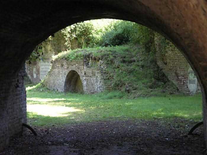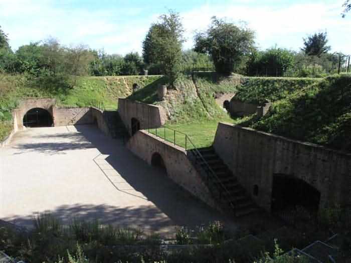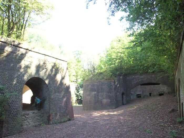 Festung von Lille, Osten der Stadt, 1879-1883. ± 50 m ü. M. Bezeichnet als Fort Mac Donald. Regelmäßiges Trapez mit zurücktretender Kehle, seine trockenen Gräben wurden durch eine Doppelkaponniere am Saillant II und einen Backenschild am Saillant III verteidigt. Die Kontereskarpe ist aus Entlastungsbögen und die Escarpe, deren wesentliche Verkleidung verschwunden ist, müsste abgetrennt sein. Die Kaponnieren waren jedoch nicht mit einer gedeckten Straße verbunden. Eine breite Kurtine an der Kehle zeigt in ihrer Mitte den Torbogen des Eingangs, der auf beiden Seiten eine Reihe von drei Kasematten auf zwei Ebenen (0 und -1) aufweist, die die Kehlkaserne bilden. Die Rückseiten dieser Kurtine beherbergen die Kasematten, die durch ihr Kreuzfeuer die Verteidigung des Kehlgrabens sicherstellen. Dem am Eingang ausgestellten Schild zufolge war dieser mit einer darunter liegenden Wippbrücke ausgestattet. Erstes Merkmal: Der Tunneleingang ist recht breit und beiderseits des ehemaligen Gitters schützte eine mit einer Schießscharte versehene Ziegelmauer die Achse dieses Eingangs. Der Raum zwischen diesem Gitter und dem hochgeklappten Brückenbelag wurde zudem seitlich durch die Schießscharten der benachbarten Kasematten unter Feuer genommen. Der Tunnel mündet in einen großen Querhof, wo, mit dem Rücken zur Kopffront, die Mannschaftskaserne liegt, bestehend aus sechs Jochen auf zwei Ebenen (0 und +1), das Ganze eingerahmt von zwei schmaleren Jochen. Diesen Stuben gegenüber befindet sich die Rückseite der Ebene 0 der Kasematten der Kehlkaserne. Jede Seite dieses Hofs führt zu einem Tunnelgang, der den Zugang zu den Nord- und Südhöfen ermöglicht. Diese sind identisch und man sieht dort eine imposante gekrümmte Mauer, die den Schutz der Zugangsschleuse der Pulvermagazine gewährleistet. Diese sind senkrecht zu den Seitenfronten des Forts angeordnet. Jeder dieser Höfe ermöglicht den Zugang zum einzigen Traversenunterstand, den jede Seite des Forts besitzt. Ebenfalls in diesen Höfen, diesseits der oben erwähnten gekrümmten Mauer, öffnet sich durch einen Tunnelgang die Wallstraße. Diese erschließt neun Traversenunterstände, davon zwei eingewurzelt. Letztere rahmen drei Traversenunterstände Mle 1879 ein, deren Linie die Mitte der Kopffront bildet. Hinter jedem Saillant dieser Kopffront befinden sich zwei weitere Traversenunterstände, von denen zwei ihre Rückwand durchbrochen haben, um den Durchgang für einen Gang zu ermöglichen, der zunächst im Freien in einer Infanteriescharte mündet, bevor er über einen weiteren Tunnel die Kaponnieren erreicht. Der Großteil der Artilleriegeschütze des Forts war auf Roubaix ausgerichtet. Die Oberseiten der Kaserne, die als Infanteriekamme organisiert sind, umfassen mindestens zwei Ausgänge und eine beeindruckende Anzahl von Schornsteinen und anderen Lichtschachtköpfen. Was die Besonderheiten betrifft, so stellen wir fest, dass die Widerlager vor den Traversenunterständen Mle 1879 mit einem kleinen Belüftungsschacht ausgestattet sind. Immer noch bezüglich dieser Traversen, ihr Unterstandskörper umfasst mehrere seitliche Nischen, in denen Ziegelsimse die Installation von zwei Bretterreihen ermöglichten. Die Durchgänge der Wallstraße unter der Einwurzelung der Traversen umfassen ebenfalls seitliche Nischen, deren Boden nach unten gewölbt ist. Die Geschossmagazine der Doppelkaponniere haben eine ihrer rechten Winkel durch den Durchgang der Eskarpenflankierungsgalerie gebrochen. Sie haben zudem jeweils einen Lichtschacht. Nur die die Kopffront bestreichende Flanke ist mit einer großen Visierblende versehen. Senkrecht zur Brustwehr der Schießscharten befindet sich ein ovaler Schacht von etwa zwei Metern Länge und einem Meter Breite, der notdürftig die Rauchabfuhr der Schüsse gewährleisten musste. In den Eskarpengalerien auf Höhe der Kaponnieren sind die Gewehrscharten der beiden dem Zugangsgang nächstgelegenen Räume nach innen durch vertikale Vorsprünge erweitert, und zwar nur auf der Kaponnierseite. Die Brustwehren der Geschützplattformen zeigen zwei hübsche Mauerwerksbögen, getrennt durch eine Nische, in der ein starkes Metallring eingelassen ist. Jede der Geschützplattformen wurde durch eine doppelte, senkrecht zu ihrer Wurzel angebrachte Treppe erreicht. Schließlich ist eine der beiden Schießscharten jedes Kurtinenkasematten modifiziert. Wir besuchten das Fort von Mons-en-Barœul im August 2008, also während unserer letzten Reise vor dem Abschluss der Texte für diesen Index. Wir hatten daher eine gute Vorstellung davon, was andernorts in Bezug auf die Restaurierung und Umnutzung von Forts getan worden war. Die Gemeinde hat daraus ihr Kulturzentrum gemacht und es ist zweifellos hier, dass die Restaurierung für kulturelle (wenn auch nicht unbedingt historische) Zwecke uns am meisten beeindruckt hat. Eine Plakette im Eingangstunnel besagt, dass die Restaurierung auf einen Architekten namens Gérard DAVID zurückgeht und auf Juni 1984 datiert. Wir wissen nicht, was im Einzelnen ihm zuzuschreiben ist, aber egal, wir ziehen unseren Hut vor ihm. Das Fort ist vollständig aus gebrannten Ziegeln errichtet. Die Struktur der Gebäude wurde respektiert, während sie durch vielfältige und farbenfrohe Bepflanzungen aufgelockert wurde. Der Besucher bewegt sich crescendo in der Verzückung. Die Kehle und dann der Eingang weisen sorgfältige Mauerwerke auf, die harmonisch Geraden und Kurven verbinden. Der zentrale Hof, in grauem Pflaster, zeigt Linien von rötlichen Pflastersteinen, als ob sich die Ziegelfassaden auf einem wässrigen Element spiegelten. Der südliche Hof hat, auf der Kehlseite, ein modernes Gebäude erhalten, dessen Erdgeschoss, zurückversetzt, von Räumen überragt wird, deren Fenster, von Segmentbögen überwölbt, an die Joche der großen Kaserne erinnern, ein Element, das durch die parallelen Kurven der Galerie im Erdgeschoss betont wird. Die Pflasterung in zwei Grautönen dieses Hofes folgt der Form
