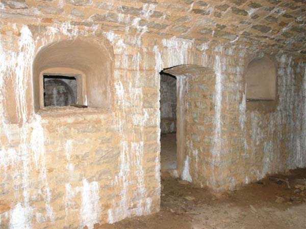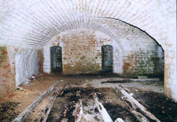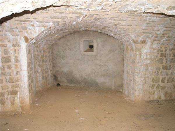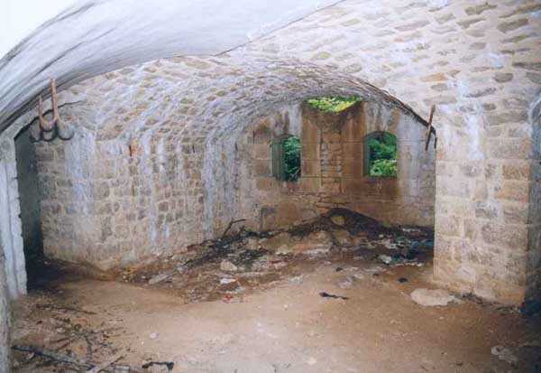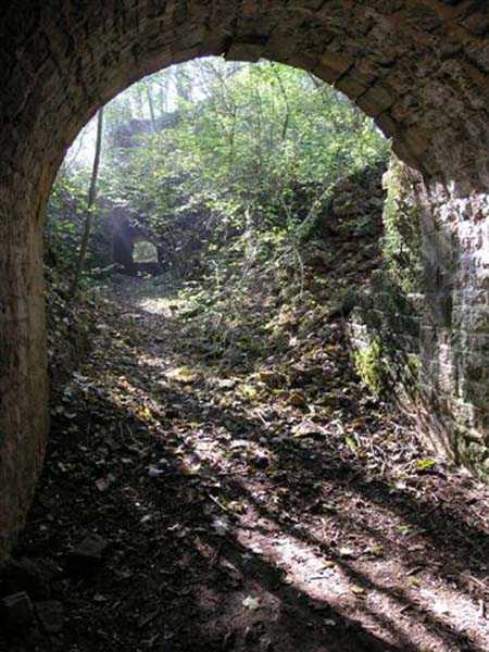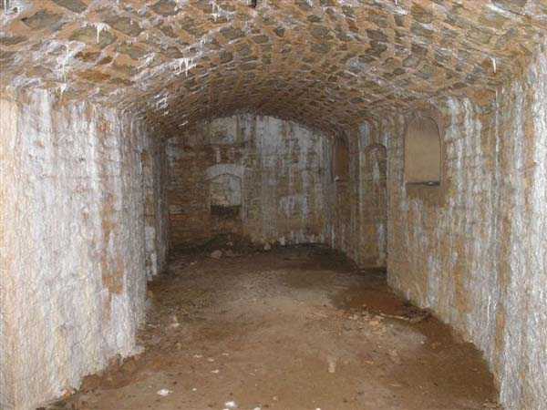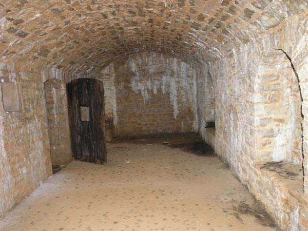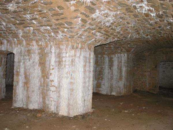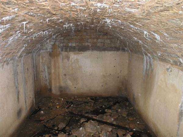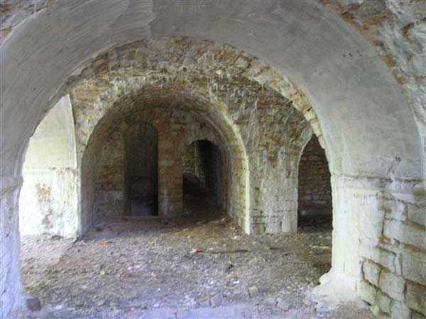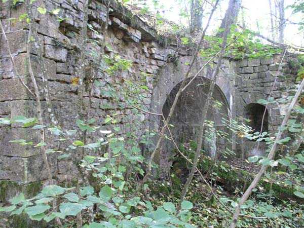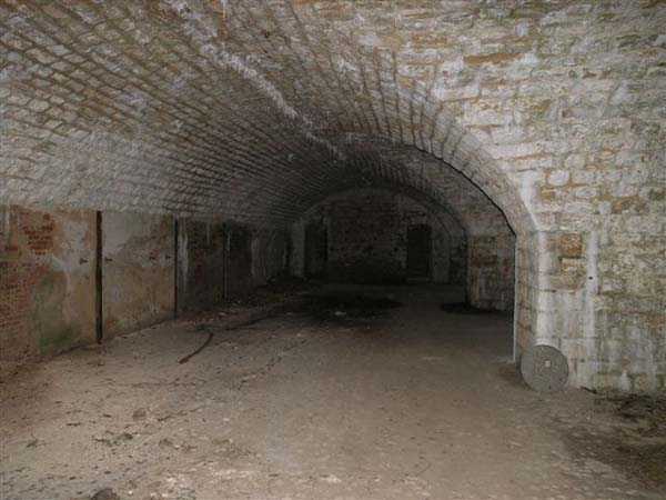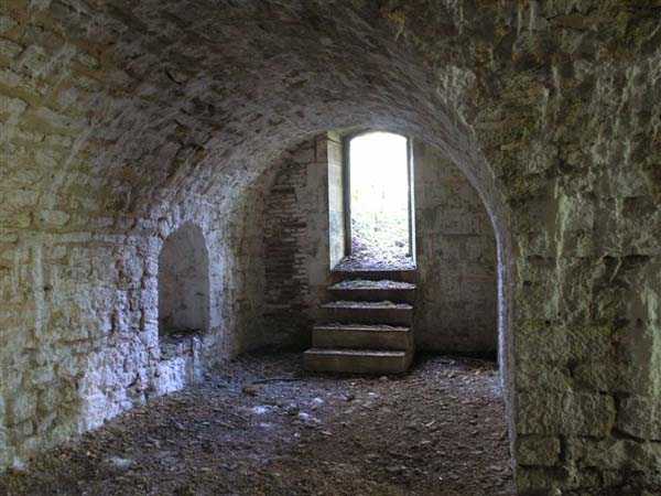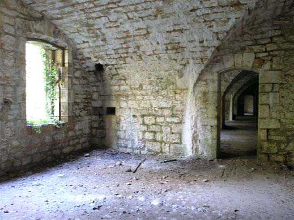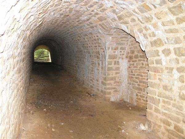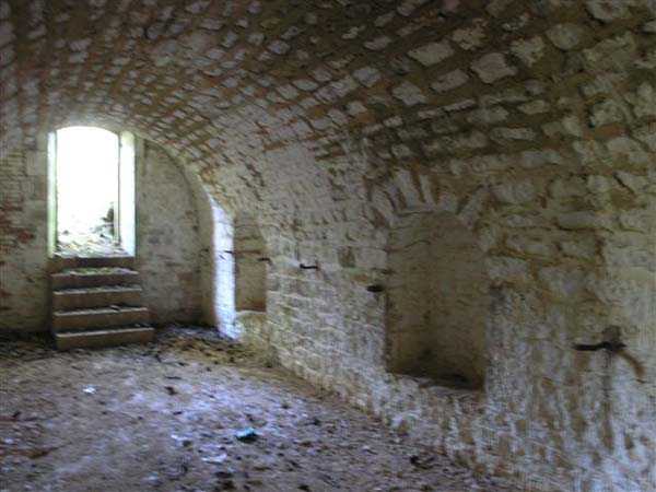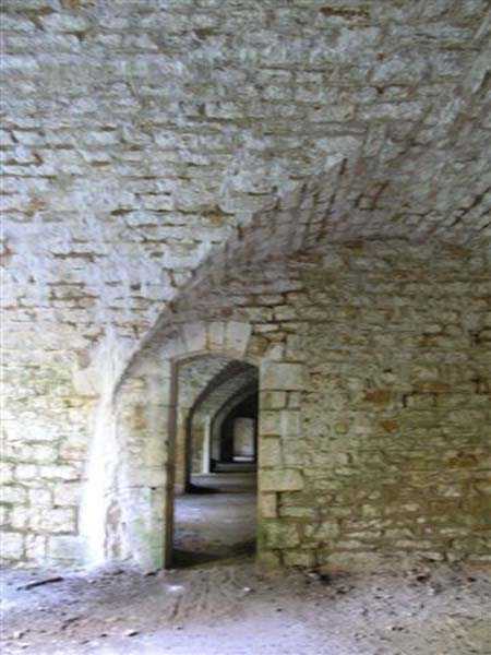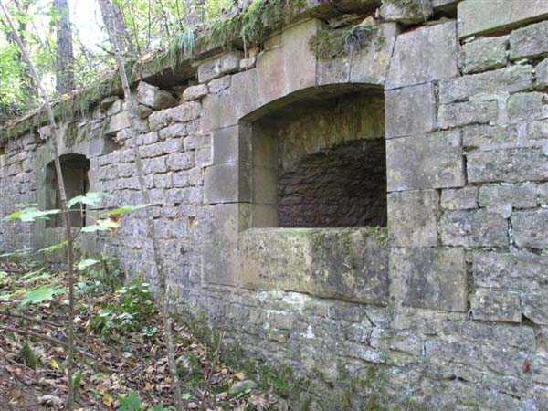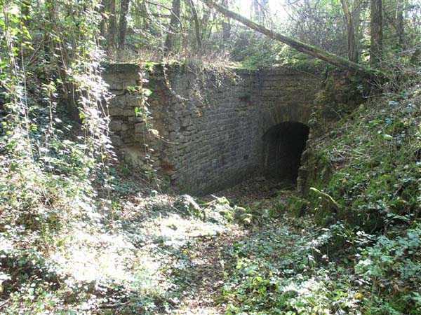 Fortress of Langres, south-south-east of the city, 1876-1878. 470 m/alt. Beautiful triangular work established 3700 m west of the fort of Cognelot. 107 men and 9 rampart pieces + 2 mortars and 4 flanking pieces. The entrance opens at the bottom of the gorge ditch and the counterscarp is notched by a gently sloping descent; there is therefore no drawbridge system. The defense of the curtain at the entrance is carried out only from the parapet dominating the semi-detached escarp. That of the two lateral fronts is for its part taken care of from a double caponier at salient II, caponier dominated by a small concreted observatory. The flanking galleries of this caponier, whether escarp or faces, have been concreted and provided with grenade chutes. The opening ensuring ventilation during firing, opening located against the top of the vault between the two embrasures, takes on an unusual and rather pretty shape. The barracks comprise five bays of which the three central ones are united into one large dormitory of 24 × 10 m. All are aligned to the left of the entrance. The artillery of the battery is arranged along an arc of a circle whose ends fold back perpendicularly to the gorge. Singularity of this battery, this arc consists of an enveloping gallery onto which the magazines of each traverse open. Projectile magazines, of course, but also and therein lies the originality, powder magazines. Light wells opening at the exit of the traverse arms provide this gallery with rather meager lighting. The external traverse-shelters are large (11 × 7 m) and partitioned. Their external flank has windows while their entrance has access to a cistern. The traverses communicate with the basement either by shaft or by staircase. The two parts of the enveloping gallery giving onto the capital are closed for the benefit of the Chiroptera by the Conservatoire du Patrimoine Naturel de Champagne-Ardenne (C.P.N.C.A.), the rest is open to all winds. The battery shows some blowholes, but on the whole, it is still in relatively good state of preservation (10/2007).