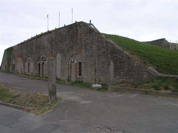 Fortress of Boulogne, south of the Digue Carnot. On the site of a first fort erected in 1806-1807, it was decided, in 1881, to build a coastal battery. It is reported as under construction in 1886. Irregular pentagon, surrounded on 3 of its 5 fronts by a dry ditch (the gorge and front IV-V were exempted) protected by bastionets (salients I, III and IV), the battery included 2 emplacements for 24 cm G Mle 1876 guns on G PC carriages and 2 positions planned for 1 gun of 155 mm. A barracks parallel to the gorge front, with four bays (11 x 5 m) on a single level, was to house 3 officers, 6 non-commissioned officers and 60 men. This battery was the subject of much criticism due to the receding cliff endangering it. Today (05/2007), only the barracks, walled up, and the two traverse-shelters (also walled up) are visible. The command posts topping each of the traverses have also been razed. The defensive perimeter, probably as illusory as that of the Alprech battery, has disappeared, while if the mound of the powder magazine (with storage room of 13.20 x 4.40 m) still exists, no entrance is visible anymore and the whole is topped by a bungalow. In 1916, it was planned, in a light building grouping guardhouse, power plant and combat post, to install near the battery a 90 cm projector. Note that in 1927, the receding cliff removed part of the head front. Some maps list it as "fort du Mont de Couppes" or add a terminal "s" to "couple".