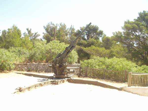 Une batterie dans la montée vers le mémorial de la tour Beaumont ▼