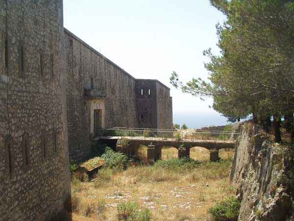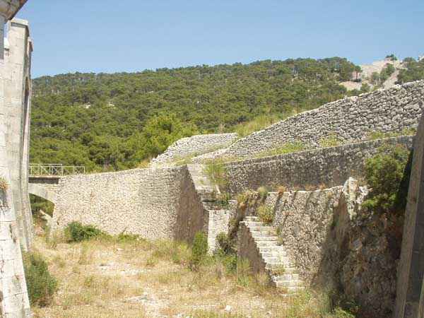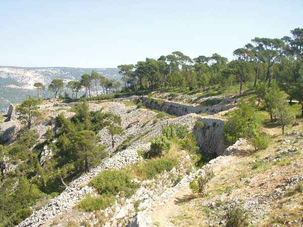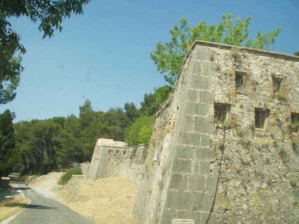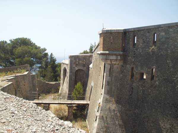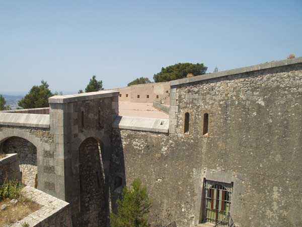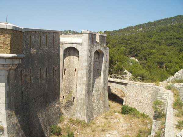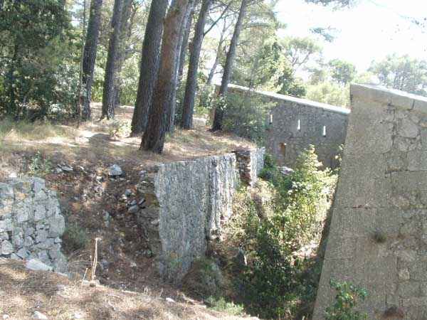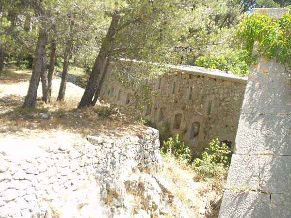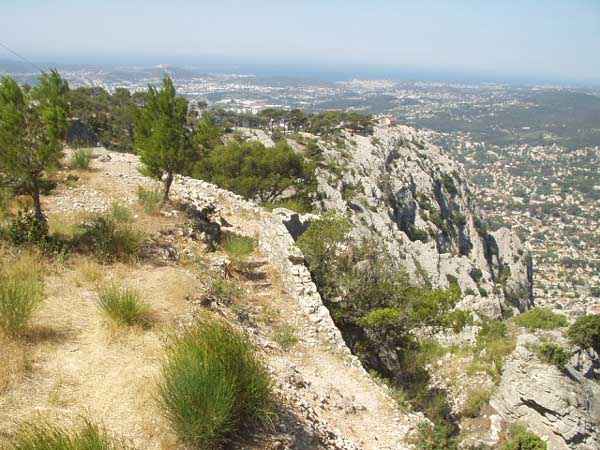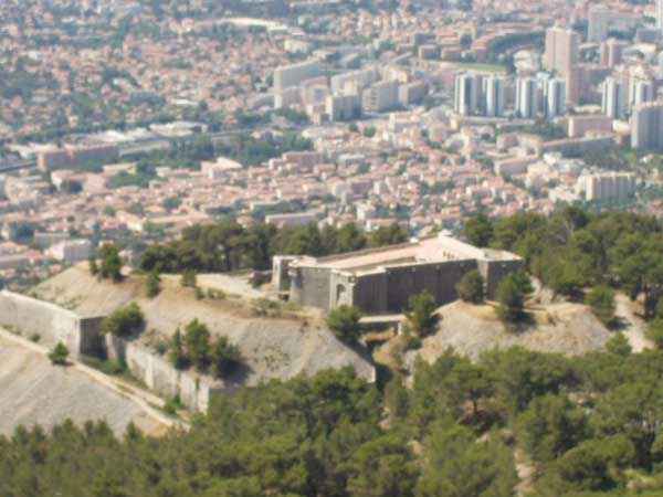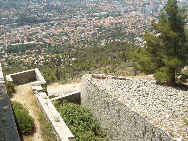 Fortress of Toulon, north-north-east of the city. Peaking at 584 m/alt, Mount Faron constitutes a veritable screen preventing any view of the arsenal of Toulon from the north. Who holds Faron holds Toulon, that's obvious. It was fortified to the extent of its importance. From west to east, at mid-slope, one finds the fort of Grand Saint-Antoine and the tower of Hubac (Ubac) at 241 m/alt. The western summit of the mount is crowned by the tower Beaumont, where the memorial of the Provence landing is installed today, a tower to which two traverses of the battery of the tower Beaumont are attached. On its right, this battery is extended by the entrenchment of Pas de Leydet, a sort of covered way preceded by a ditch cut into the rock. Behind this entrenchment, there is a semi-cavern magazine in which the sanctuary of Notre Dame du Faron has been installed. Almost midway between the tower Beaumont and the fort of Croix Faron, is the defensive barracks of Pas de la Masque below which we find the battery of the same name and, further east, that called "of the Barracks". Over a few hundred meters towards the east starting from this barracks, is the entrenchment of Pas de la Masque. Finally, the eastern extremity of the mount is furnished with the fort of Croix Faron, the rack railway of Faron and the old fort Faron. This ensemble, ultimately quite heterogeneous, required unimaginable efforts to see the light of day. For information regarding accesses, see the detail in the articles.