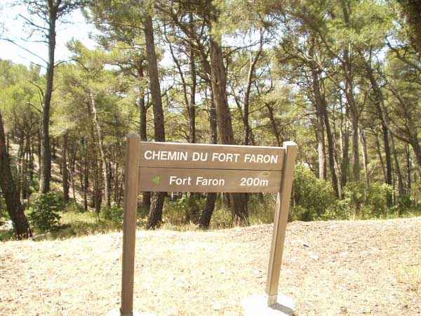 Pevnost Toulon, severo-severovýchodně od města. Vrcholící 584 m/n.m., hora Faron tvoří opravdovou clonu zabraňující jakémukoli výhledu na arzenál Toulonu ze severu. Kdo drží Faron, drží Toulon, to je zřejmé. Opevnili ji podle její důležitosti. Od západu na východ, v polovině svahu, nalézáme fort Grand Saint-Antoine a věž Hubac (Ubac) na 241 m/n.m. Západní vrchol hory je korunován věží Beaumont, kde je dnes instalován památník vylodění v Provence, věži, na kterou jsou přisazeny dvě travérsy baterie věže Beaumont. Na její pravici je tato baterie prodloužena opevněním Pas de Leydet, jakýsi krytý cest předcházený příkopem vytesaným ve skále. Za tímto opevněním se nachází polojeskynní sklad, ve kterém byl instalován svatostánek Notre Dame du Faron. Téměř v polovině cesty mezi věží Beaumont a fortem Croix Faron se nachází obranná kasárna Pas de la Masque pod kterými nalézáme baterii stejného jména a, dále na východ, tu zvanou "Kasáren". Na několik set metrů k východu od těchto kasáren se nachází opevnění Pas de la Masque. Konečně, východní konec hory je opatřen fortem Croix Faron, ozubenou dráhou Faron a starým fortem Faron. Tento soubor, nakonec dosti různorodý, vyžadoval nepředstavitelné úsilí, aby spatřil světlo světa. Pro informace ohledně přístupů viz podrobnosti v článcích.
