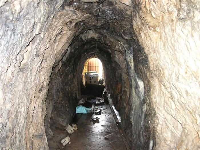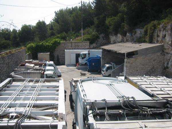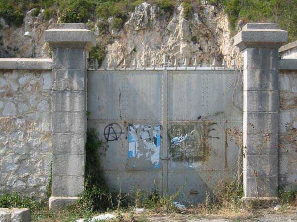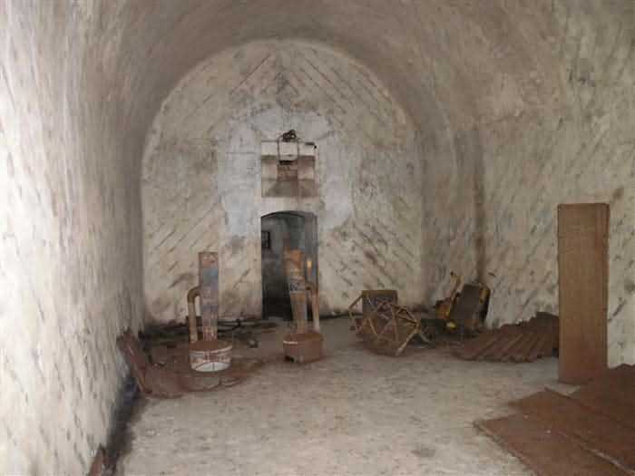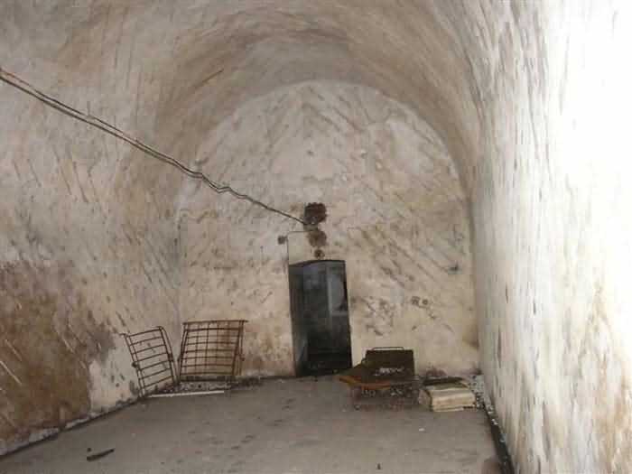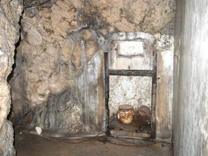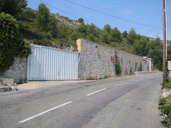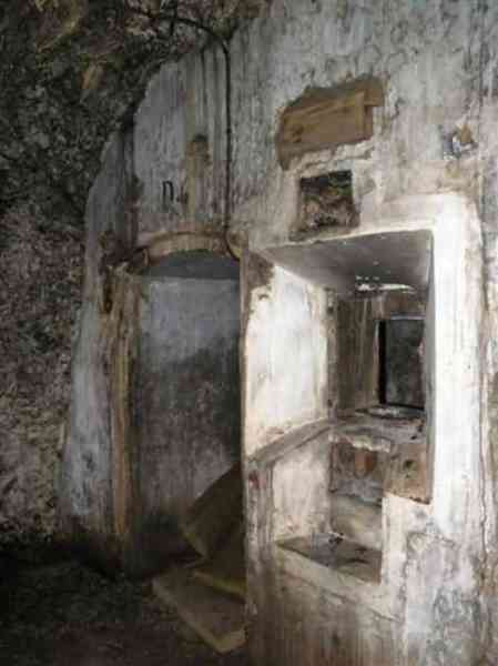 Fortress of Nice, north-east of the city, 188? or 189? 465 m/alt. Rock magazine, located on the south-western slopes of the eponymous mount, east of the hamlet of La Condamine. It is a central magazine. Well sheltered from shots that would have come from the land front, it comprises a rather vast enclosure. At each end of the facade of this enclosure, there was a wide portal. Only the right one remains because, having become municipal property, the enclosure serves as a parking lot for garbage collection trucks, haulage for which it was necessary to widen the left portal even more. This facade wall comprises some beautiful fixing irons of the masonries, irons somewhat recalling fleur-de-lis. The interior arrangement of this enclosure has been upset and the ground modified. The court has been completely rock-cut. In the left flank, we notice a door located about one meter lower than the current ground and closed. The rock wall parallel to the long enclosure wall comprises today (04/2008) only one door, identical to that we have just mentioned in the left flank. This door is situated on the right when one faces the rock wall. In the right rock return, a third door, always identical, also opens. In the two right magazines, we will find on the pediment of the rooms the letters C and D both followed by the number 4. Henceforth, it is permitted to us to consider that the door of the left flank gives into a magazine A and that the wall of recent manufacture attached to the left of the large rock wall, masks a magazine B. As for the number 4, it is very probably to be interpreted as indicating the fourth central magazine of the fortress (with Saint-Antoine, Colomars and Faliconet). Only the C and D could be visited. Both are more or less identical. A gallery, left of raw rock and about ten meters long, comes to abut on a concreted wall beside which is located an artifices niche framed with wood. The gallery extends on the left (for magazine C, on the right for the D) over six meters, until meeting a room whose interior is, also, of raw rock. This room has 7 m depth for magazine C and only 3 for the D. On the side one enters into the chicane preceding a storage room. This room, with a barrel vault culminating at 5 m height has for dimensions 12 x 6 m. The walls of the storage rooms C and D are covered with a cemented coating letting appear the device for drainage of percolation waters, device in herringbone. The storage room of magazine C has preserved, above its entrance door, its lamp embrasure, embrasure particularly splayed side… airlock! That of magazine D has been obstructed, replaced by another, pierced in the wall of the airlock, facing the entrance of the room (embrasure existing in the C also). We have searched in vain in our memories, four storage rooms, totally independent from one another while being reunited within the same enclosure, is a configuration of which we know no equivalent. In this respect, although the access galleries are filled with bits and pieces, that the fittings and constitutive elements of the embrasures have been pillaged, this magazine distinguishing itself from its similars reveals itself very interesting. In case of accident, the damages would have been limited to a single quarter of the stored powders, that is what must explain the choice of this option by the local Engineering leadership. Little distance to the west, is located the water reservoir No. 5 (see Nice). Sometimes spelled "Mont Leuse" or still "Mont Leuza".