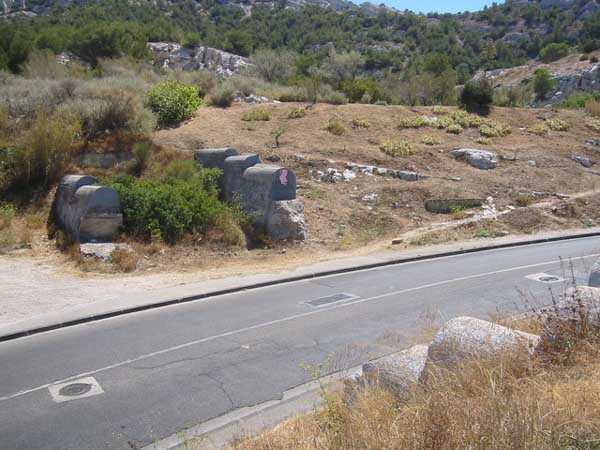Festung von Marseille, Süd-Südwesten der Stadt. 149 M/ü M. Küstenbatterie, die in einem Sitzungsprotokoll der Kommission für Küstenverteidigung vom 19. Februar 1886 als dringend zu bauen gemeldet wurde. Man fand dort 5 Kanonen 24 cm Mle 1876 auf PC Lafette und ihre Nebenbatteie von 4 Kanonen 95 Mle 1888 auf Lafette Mle 1904. Ihre Besetzung bis in die jüngste Zeit hat sie verändert, aber auch geschützt. Was man davon behalten muss, ist vor allem ihr Felsmagazin, das noch Gitter, Türen, Blechdachschirme und originalen Einschienenkran besitzt. Jetzt (07/2005) allen Winden offen, werden diese Überreste lange dem Vandalismus widerstehen?