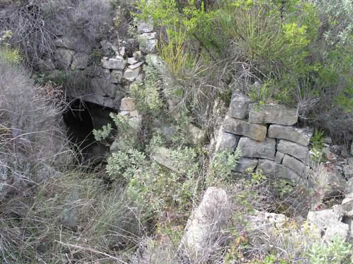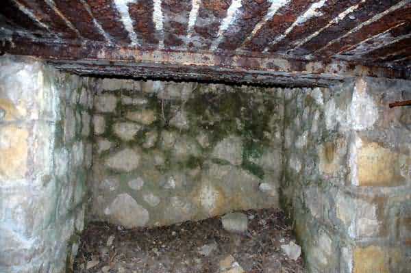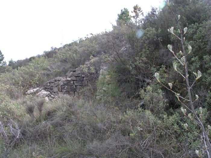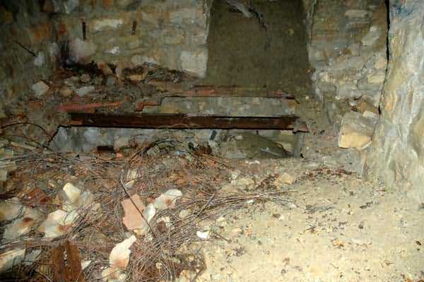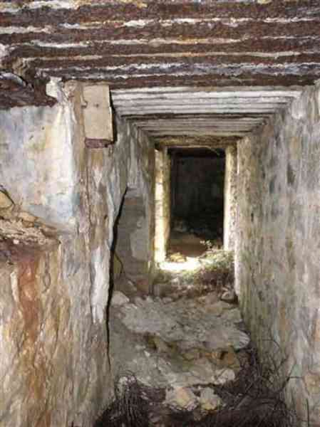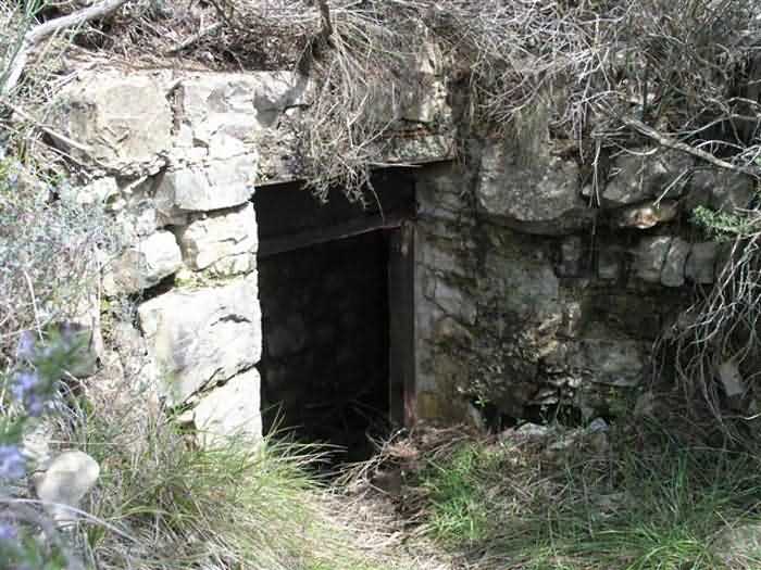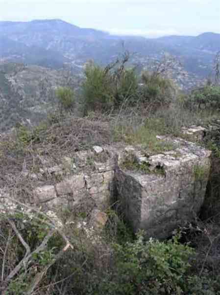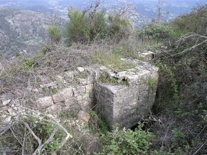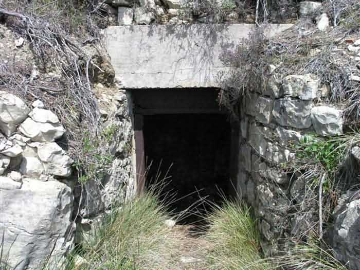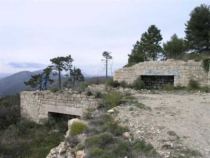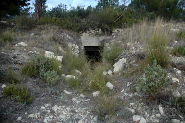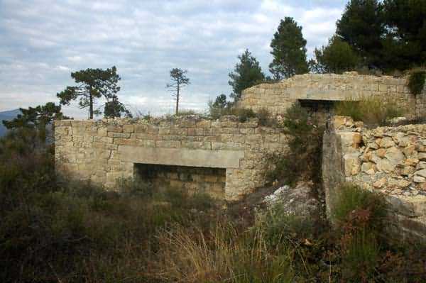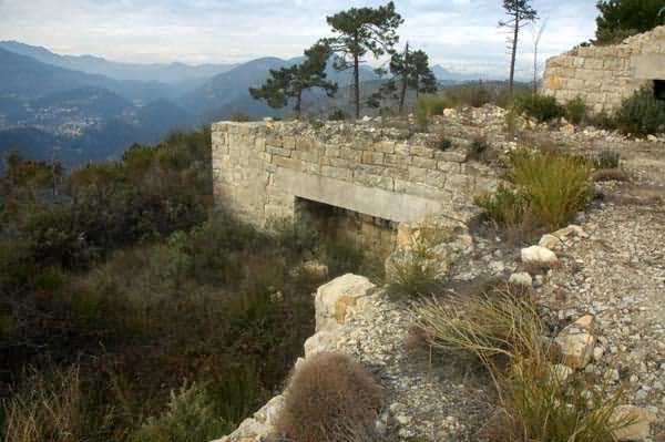 Fortress of Nice, north-north-east of the city, 189? 654 m/alt. Intermediate work occupying, with that of Mas Duc, the interval between the forts of Mont Chauve de Tourrette and Drête. Its contours are extremely tormented since following the terrain. It does not possess a ditch, its perimeter is only delimited by a continuous trench on about 75 % of its length, trench punctuated by small firing posts (28 exactly) in half-circles of barely 80 to 100 cm diameter. The summit of Ubac culminates at 654 m/alt but no building is constructed there. The perimeter encompasses this summit and the components are terraced between 624 m/alt and 644 m/alt. Access is made from the south where are located two artillery platforms joined but in vertical setback of three meters. These platforms are provided on their right with a large ammunition niche and any parapet has disappeared. They flanked Mont Chauve de Tourrette. Shortly behind these platforms, are located the officers' post and a dressing station. These two rooms, dug into the rock, are accessible by a same gallery of little length. The interior is of rather rudimentary workmanship; the rubble masonries form several arches letting the rock appear and the ceilings are constituted of jointed rails. About forty meters further on the road that climbs to the summit, a path in trench leads towards the entrance of a cavern shelter. The latter has only one room, of same workmanship as the officers' post, five meters wide, but over forty long. Its basement comprises two cisterns in concrete, isolated from the walls, as well as a laboratory. A gallery, remained in raw rock and coming from a second cavern shelter located parallel to this one and a little higher on the mountainside, served only for the emptying of the cisterns of this second shelter. These two shelters possess two entrances; the lower shelter has the left one obstructed, the upper one, the right. They are both dangerous to visit. The floor above the cisterns is composed of vaults resting on girders. These vaults are extremely fragile and we can testify to it knowingly since one of them gave way under our weight, fortunately, without physical consequence for us. The north-east of the work comprises four other shelters, each for a section. We had to search well to find them within the maquis; if we had not had a location plan, never would we have unearthed them. One of them even required a clearance of the vegetation with the saw followed by a crawling (04/2008). These shelters are of two types and share only their relative narrowness (2 m) and their length (between 8 and 10 m). Two have their ceiling in jointed rails placed at 45° relative to the horizontal ground, and the two others have an identical ceiling, but parallel to the ground. Some are accessible by stairs with steps high 50 cm with iron bars sealed in the wall to hoist oneself more easily outside. All communicate with the trench delimiting the perimeter. Sometimes reported "Mont de l'Ibac". Free access, but at the risks and perils of the visitor.