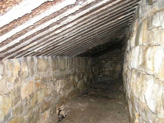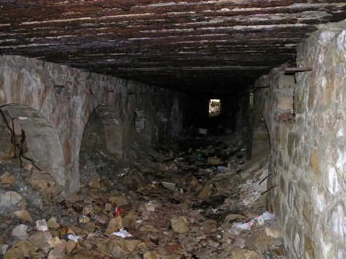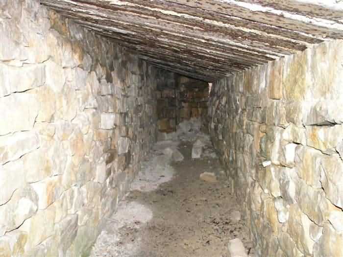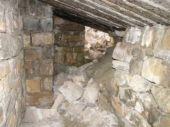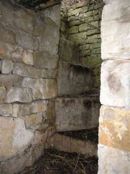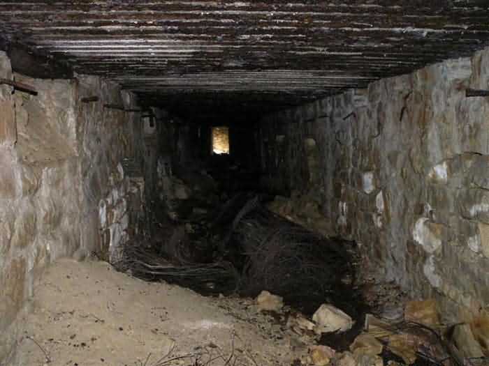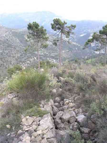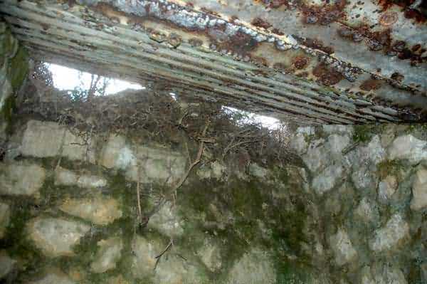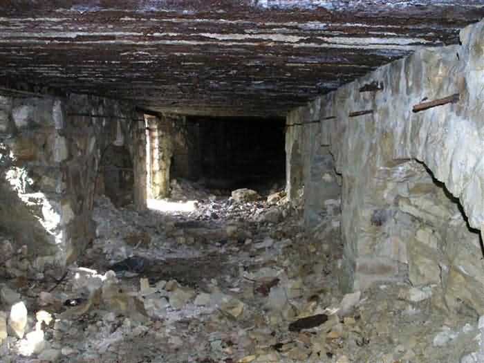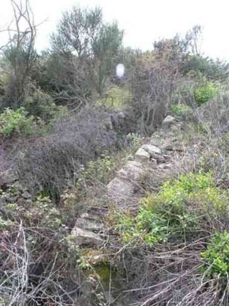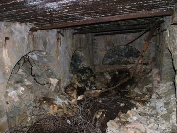 Fortress of Nice, north-north-east of the city, 189? 654 m/alt. Intermediate work occupying, with that of Mas Duc, the interval between the forts of Mont Chauve de Tourrette and Drête. Its contours are extremely tormented since following the terrain. It does not possess a ditch, its perimeter is only delimited by a continuous trench on about 75 % of its length, trench punctuated by small firing posts (28 exactly) in half-circles of barely 80 to 100 cm diameter. The summit of Ubac culminates at 654 m/alt but no building is constructed there. The perimeter encompasses this summit and the components are terraced between 624 m/alt and 644 m/alt. Access is made from the south where are located two artillery platforms joined but in vertical setback of three meters. These platforms are provided on their right with a large ammunition niche and any parapet has disappeared. They flanked Mont Chauve de Tourrette. Shortly behind these platforms, are located the officers' post and a dressing station. These two rooms, dug into the rock, are accessible by a same gallery of little length. The interior is of rather rudimentary workmanship; the rubble masonries form several arches letting the rock appear and the ceilings are constituted of jointed rails. About forty meters further on the road that climbs to the summit, a path in trench leads towards the entrance of a cavern shelter. The latter has only one room, of same workmanship as the officers' post, five meters wide, but over forty long. Its basement comprises two cisterns in concrete, isolated from the walls, as well as a laboratory. A gallery, remained in raw rock and coming from a second cavern shelter located parallel to this one and a little higher on the mountainside, served only for the emptying of the cisterns of this second shelter. These two shelters possess two entrances; the lower shelter has the left one obstructed, the upper one, the right. They are both dangerous to visit. The floor above the cisterns is composed of vaults resting on girders. These vaults are extremely fragile and we can testify to it knowingly since one of them gave way under our weight, fortunately, without physical consequence for us. The north-east of the work comprises four other shelters, each for a section. We had to search well to find them within the maquis; if we had not had a location plan, never would we have unearthed them. One of them even required a clearance of the vegetation with the saw followed by a crawling (04/2008). These shelters are of two types and share only their relative narrowness (2 m) and their length (between 8 and 10 m). Two have their ceiling in jointed rails placed at 45° relative to the horizontal ground, and the two others have an identical ceiling, but parallel to the ground. Some are accessible by stairs with steps high 50 cm with iron bars sealed in the wall to hoist oneself more easily outside. All communicate with the trench delimiting the perimeter. Sometimes reported "Mont de l'Ibac". Free access, but at the risks and perils of the visitor.