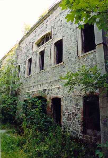 Fortress of Grenoble, southeast of the city, 1875-1879. 544 m/alt. Named Fort Clermont-Tonnerre. Cavalier fort and low battery, for 560 men and 24 guns including 4 mortars and 4 flanking guns. Highly irregular decagon, all its ditches are defended by caponiers (3 double and one single), except for fronts VII-VIII, VIII-IX and IX-X swept by the embrasures of the semi-detached scarp. The entrance building has been razed. It led directly to a two-storey barracks whose windows were fitted with a rare system for closing the windows of the quarters with fixed slats. The ground floor consists mainly of magazines and the rear corridor leads to the artillery magazines and loading workshops. The façade threatening to detach from the building was secured by flat irons anchored to the ceiling of the quarters on level +1. A bread oven for 380 rations in a more than pitiful state. To the right of this building, one accesses the main courtyard of the work which leads to two other buildings. The first, facing front VII-VIII, two-storey, comprises officers' quarters and cisterns; the second, backed against front IV-V, comprises two powder magazines joined along their length (the engineering data sheet attributes a combined capacity of 170,100 kg to them) and six other rooms (quarters?), also surmounted by an artillery cavalier. The low battery, five traverse-shelters without arms, only faces fronts II-III and III-IV. The glacis on either side of the fort show a line of 4 artillery platforms separated by solid traverses with niches at their base for safety shots. The majority of the fort's guns and annex batteries were directed towards the Belledonne massif, curiously leaving the upper Drac valley outside its field of action. Abandoned fort in a sad state (08/2000).