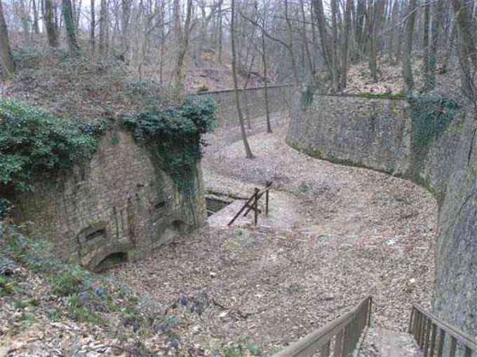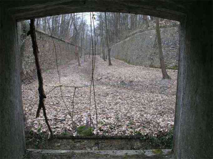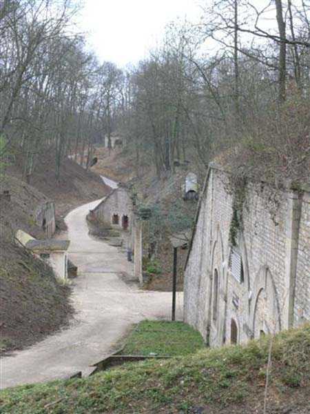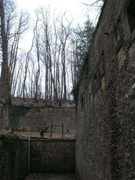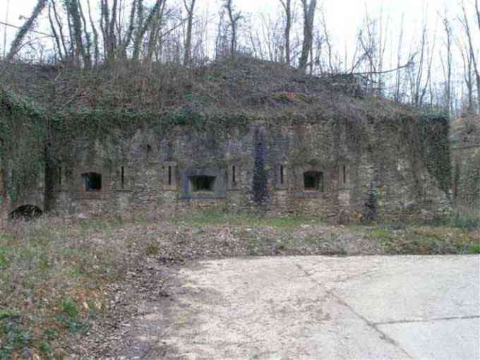Fortress Paris, north of the city, 1875-1879. 190 m/alt. Average fort for 794 men and 57 guns. It is a trapezoidal fort, if only for the break in its gorge giving it five sides, with a semi-detached escarpment. The escarpment entrance still has, complete, an Ardagt & Pilter drawbridge coupled with a vertically sliding gate. Indeed, when raised, the parallelepiped bridge left free the curved space of the semicircular vault of the entrance porch. This space was closed by this vertically sliding gate, descending like a portcullis, but whose movement was coupled with the bridge's lifting mechanism. This porch with a semicircular vault is followed by a long, wide corridor with a basket-handle vault, in the center of which, on either side, a spiral staircase with very careful masonry leads to a double exit whose vault is also basket-handle. The officers' pavilion has two levels and displays a fairly ordinary architecture. The troop barracks, which occupied the epicentre of the fort and comprised seven bays (+ two halves), has completely disappeared. The only powder magazine, installed some distance to the right of the officers' pavilion, could contain a maximum of 109,588 kg of powder. It has now been transformed into a shooting range. The gorge parados, in the massif of front I-II, still has, in very good condition, two direct-fire casemates whose rubble masonry is enhanced with terracotta bricks. The plans consulted show them as direct fire casemates, but it seems that the presence of the upper troop barracks would have made curved fire obligatory. On the other hand, on the left of the large barracks, at the level of the rampart street, two casemates still remain, dedicated to indirect fire. As for the cavalier, which disappeared with the barracks, it seems that at least one of its traverses could have been converted into a direct fire casemate. Apart from the throat one, the caponiers have three pieces per direction of fire. While the fin of salient III is perfectly presentable, the double caponier of salient IV, on the other hand, suffered greatly from the occupation by the C.E.A. during the 1960s. As is the case with the tanks nestled in salient V, this double caponier was fitted out for pyrotechnic tests with the armor and concreting that such use made necessary. At the counterscarp, in the middle of front III-IV, there are two side-by-side relief arches, absolutely the only ones in the perimeter and remaining unexplained. The counterscarp of front IV-V has an alignment of seven rooms, six of 6 x 4 m separated into two groups of three by an intermediate room of 3 x 4 m. Each room has a door and a window as well as communication with its neighbor. We must admit to having no explanation as to their purpose, but undoubtedly, they are old. A 1911 project, which was not followed up, granted the fort of Montlignon a 75 mm turret and two machine gun turrets, while it was planned to sink a concrete shelter there for the garrison and provide it with counterscarp vaults. The procrastination of the decision-makers was not resolved before the start of hostilities in August 1914. Currently (03/2007) National Police shooting range.