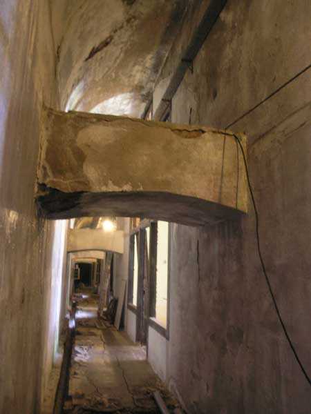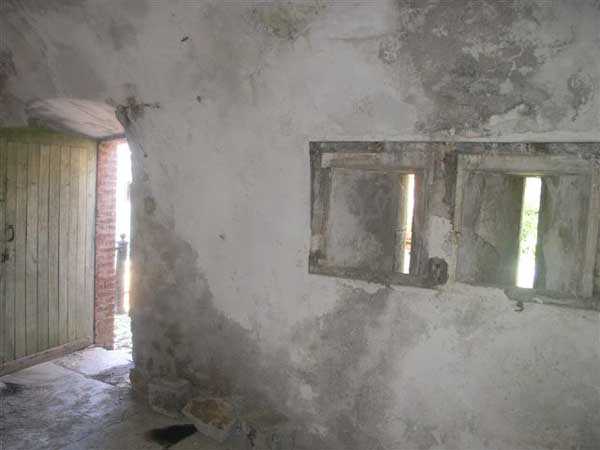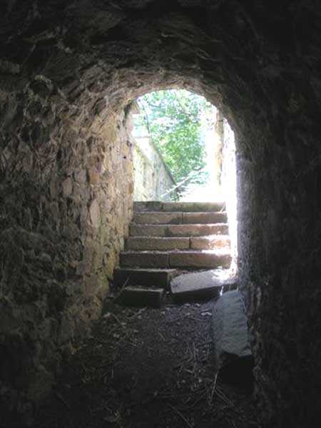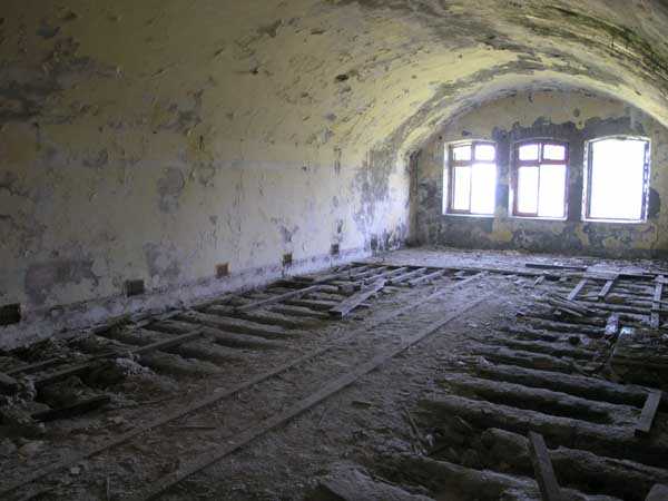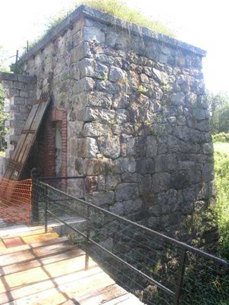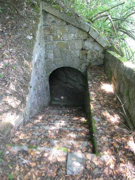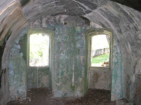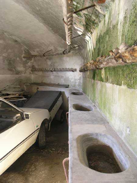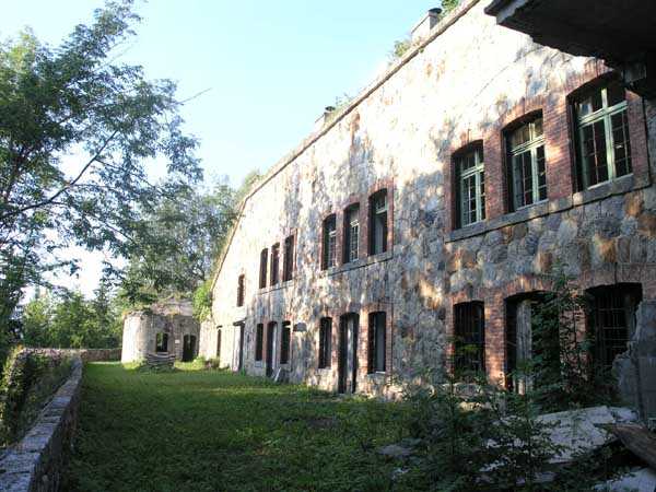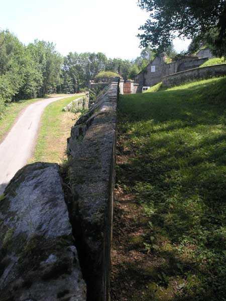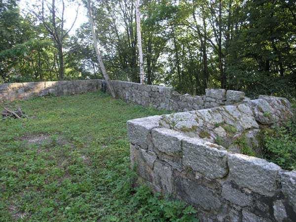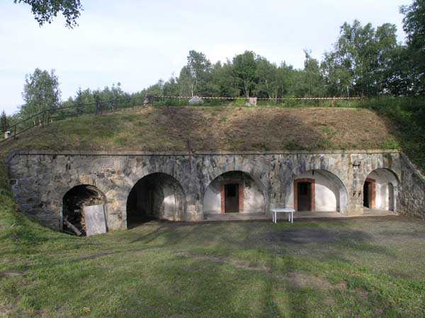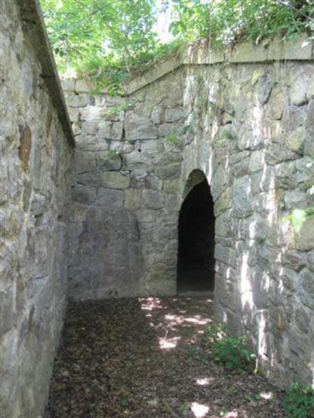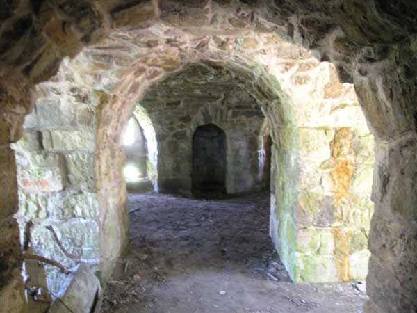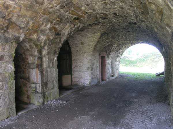 Fortress of Chamousset, east-northeast of the town, 1875-1876. 965 to 1,012 m above sea level. 609 men and 28 guns. Fine fort, practically rectangular, established on five successive terraces, with the troops' barracks cutting it in two along its minor median. It is designed as a blocking fort with platforms oriented in all directions. The entrance is preceded by a detached half-caponier. This case, extremely rare not to say unique, implies, unlike fort Hauteville, having as its mission only the defense of a single ditch segment, namely the eastern half-gorge. The defense of the western half-gorge is shared between perpendicular loopholes located to the right immediately after the escarp entrance and is dominated along its entire length by a parapet wall. Note that this detached half-caponier is also responsible for the close defense of the entrance passage and is in no way connected by a gallery to the fort. Upon entering the fort, one finds oneself almost facing the stables, which have ten mangers, which is well above average. It must be said that the slightest gun movement in this terraced fort could not do without horse power. To the right, a succession of seven defense casemates was to prevent an enemy from approaching the detached half-caponier by taking advantage of its blind spots. Also found at this level are the food stores and a staircase allows access to the main barracks comprising seven large rooms, with very high ceilings. We are then approximately at the center of the fort, this barracks, on a single level, being oriented overall north-south. In front of it, slightly to its left and at the same level, a covered passage leads into a small courtyard bordered by rooms devoted to armament. As these sensitive rooms, being susceptible to being hit, they were placed set back from a corridor open onto three large bays that were planned to be blocked in case of conflict. Facing them, a traverse shelter most certainly housed an optical communications post. The abutment of this traverse shows four bricked-up loopholes and next to the chimney of the heliostat, the passage of the linkage. From this same traverse, one accesses a first basement and then the first floor of the west barracks. This staircase extends down to the ground floor, making it a passage protected on four levels. The circulation corridor at the rear of this barracks is curved over the width of each bay, to better resist earth pressure. Here, the destroyed bread oven could bake 250 rations per day. At the northern end of this barracks, a small simple concrete optical post was set up. It comprises three loopholes but no table for equipment and no heliostat shaft. As the loophole towards fort du Mont runs straight into the parapet wall of the gorge escarp, a passage with metal doors was provided in the latter. Going back up into the main barracks, one will note there, in the rear circulation corridor, masonry buttresses that are so many small supporting arches. To its right, this barracks includes extensive engineer rooms as well as a small caponier occupying the center of the long straight front formed by the south escarp. This caponier is accessible by a small ramp staircase and its roof is made of a terrace with a parapet wall and projections at the angles in order to be able to sweep the blind spots, projections apt to provoke a semantic quarrel. The very important infirmary building is located one terrace higher, thus further east. There one spots rare remains of stoves. Higher still, another courtyard with the officers' barracks behind which we find the main powder magazine. In the storage room of the latter, one will note a recess in the ceiling for the passage of the doors of the light shaft, which undoubtedly constitutes an originality. The lamp room has preserved all its wooden parts, stairs and floor. This lamp room serves, in addition to the three lamp niches of the powder magazine, that of the cartridge magazine, contiguous and impressive in height. A half level higher, one finds a group of three rooms of which the two outer ones have a lamp niche occupying the place of a half-window and which must have been served from the outside… a bizarre and probably unique device having the air of a makeshift solution. Finally, finishing our sweep to the east, one arrives at the last level of traverse-shelters from which one can access the two small double caponiers occupying the angles of the chevron of the two fronts oriented to the east, caponiers connected by a covered way very pleasant to walk. The cumulative lengths of the escarps total 700 m. Montperché could sweep both the upstream part of the Isère valley and that of the Arc. Since 2005, it is inhabited private property. A project to set up guest rooms is underway (10/2007). This fort, original in more than one respect, certainly deserves a visit. An annex battery downhill, without the slightest masonry. (www.fort-de-montperche.com).