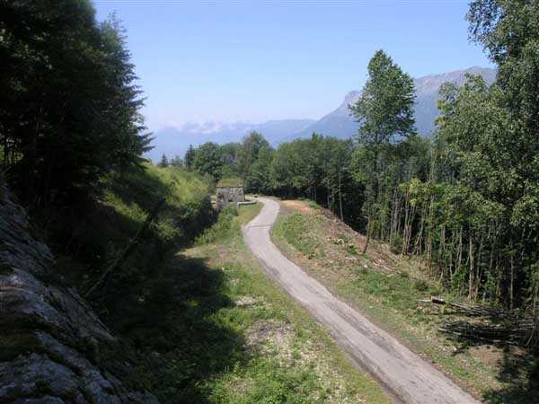 Festung von Chamousset, ost-nordöstlich der Stadt, 1875-1876. 965 bis 1 012 M/ü M. 609 Mann und 28 Geschütze. Schönes Fort, praktisch rechteckig, auf fünf aufeinanderfolgenden Terrassen errichtet, wobei die Truppenunterkunft es in seiner kleinen Mitte in zwei Hälften teilt. Es ist als Sperrfort mit in alle Richtungen ausgerichteten Geschützplattformen konzipiert. Dem Eingang ist eine abgesetzte halbe Kaponniere vorgelagert. Dieser Fall, äußerst selten, um nicht zu sagen einzigartig, bedeutet im Gegensatz zum Fort Hauteville, dass es nur die Aufgabe hat, einen einzigen Grabenabschnitt zu verteidigen, nämlich die östliche Halshälfte. Die Verteidigung der westlichen Halshälfte teilt sich zwischen rechtwinkligen Schießscharten, die sich rechts gleich nach dem Eskarpeneingang befinden, und wird auf ihrer gesamten Länge von einer Brustwehr beherrscht. Beachten wir, dass diese abgesetzte halbe Kaponniere auch für die Nahverteidigung des Eingangsdurchgangs zuständig ist und keineswegs durch einen Gang mit dem Fort verbunden ist. Wenn man in das Fort eintritt, steht man fast den Stallungen gegenüber, die zehn Tröge besitzen, was deutlich über dem Durchschnitt liegt. Man muss sagen, dass die geringste Geschützbewegung in diesem Terrassenfort nicht ohne Pferdekraft auskommen konnte. Rechts sollte eine Abfolge von sieben Verteidigungskasematten einen Feind daran hindern, sich der abgesetzten halben Kaponniere zu nähern, indem er deren tote Winkel ausnutzte. Auf dieser Ebene findet man auch die Proviantmagazine und eine Treppe ermöglicht den Zugang zur Hauptunterkunft mit sieben großen, sehr hochräumigen Kammern. Wir befinden uns dann ungefähr in der Mitte des Forts, diese Unterkunft, auf einer einzigen Ebene, ist insgesamt nord-süd ausgerichtet. Davor, etwas links und auf gleicher Höhe, führt ein überdeckter Durchgang in einen kleinen Hof, der von Räumen für die Bewaffnung gesäumt ist. Da diese empfindlichen Räume möglicherweise getroffen werden könnten, hat man sie zurückversetzt von einem Gang, der zu drei großen Öffnungen hin offen ist, die im Konfliktfall verschlossen werden sollten. Ihnen gegenüber hat eine Traversen-Schutzraum sehr wahrscheinlich einen optischen Meldeplatz beherbergt. Das Widerlager dieser Traverse zeigt vier zugemauerte Schießscharten und neben dem Kamin des Heliostaten den Durchlass der Gestängelitung. Von derselben Traverse aus gelangt man zu einem ersten Keller und dann zum ersten Stock der westlichen Unterkunft. Diese Treppe setzt sich bis zum Erdgeschoss fort, was sie zu einem auf vier Ebenen geschützten Durchgang macht. Der Verkehrsgang hinter dieser Unterkunft ist über die Breite jedes Jochs gekrümmt, um dem Erddruck besser zu widerstehen. Hier konnte der zerstörte Brotofen 250 Rationen pro Tag backen. Am nördlichen Ende dieser Unterkunft wurde ein einfacher kleiner Beton-Optikposten eingerichtet. Er umfasst drei Schießscharten, aber keinen Tisch für die Ausrüstung und keinen Heliostatenschacht. Da die Schießscharte zum Fort du Mont direkt gegen die Brustwehr der Halseskarpe stößt, wurde in letzterer ein Durchgang mit Metalltüren ausgespart. Zurück in die Hauptunterkunft steigend, wird man dort im hinteren Verkehrsgang auf Strebepfeiler aus Mauerwerk stoßen, die ebenso viele kleine Stützbögen sind. Zu ihrer Rechten umfasst diese Unterkunft umfangreiche Genieräume sowie eine kleine Kaponniere, die die Mitte der langen, geraden Front besetzt, die von der Südeskarpe gebildet wird. Diese Kaponniere ist über eine kleine Rampentreppe zugänglich und ihre Decke besteht aus einer Terrasse mit Brustwehr und vorspringenden Winkeln, um die toten Winkel bestreichen zu können, Vorsprünge, die geeignet sind, einen semantischen Streit zu provozieren. Das sehr wichtige Krankenreviergebäude liegt eine Terrasse höher, also weiter östlich. Dort erkennt man seltene Überreste von Heizöfen. Noch höher, ein weiterer Hof mit der Offiziersunterkunft, hinter der wir das Hauptpulvermagazin finden. Im Lagerraum desselben wird man eine Aussparung in der Decke für den Durchgang der Türen des Lichtschachts bemerken, was zweifellos eine Eigenart darstellt. Die Lampenkammer hat all ihre hölzernen Teile, Treppen und Fußboden bewahrt. Diese Lampenkammer erschließt neben den drei Lampennischen des Pulvermagazins die des benachbarten und beeindruckend hohen Patronenmagazins. Eine halbe Ebene höher findet man eine Gruppe von drei Räumen, von denen die beiden äußeren eine Lampennische haben, die den Platz eines halben Fensters einnimmt und die von außen bedient worden sein muss… ein bizarres und wahrscheinlich einzigartiges Anordnung, das nach einem Notbehelf aussieht. Schließlich, unser Abstreifen nach Osten abschließend, gelangt man zum letzten Niveau der Traversen-Schutzräume, von dem aus man Zugang zu den beiden kleinen Doppelkaponnieren hat, die die Winkel des Winkelhakens der beiden nach Osten gerichteten Fronten einnehmen, Kaponnieren, die durch einen gedeckten Weg verbunden sind, der sehr angenehm zu begehen ist. Die kumulierten Längen der Eskarpen betragen 700 m. Montperché konnte gleichzeitig den oberen Teil des Isère-Tals und den des Arc bestreichen. Seit 2005 ist es bewohntes Privateigentum. Ein Projekt zur Einrichtung von Gästezimmern ist im Gange (10/2007). Dieses Fort, aus mehr als einem Grund originell, verdient sicherlich einen Besuch. Eine Hilfsbatterie hangabwärts, ohne das geringste Mauerwerk. (www.fort-de-montperche.com).