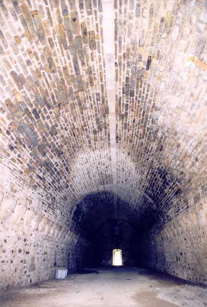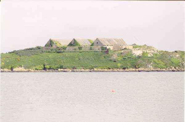 Fortress of Brest, south of the city. This small island is located between the Roscanvel peninsula and Île Longue. Île des Morts was well sheltered in the roadstead and far enough from the city of Brest for the location to be considered particularly favourable for powder storage. Proposed in 1791, the construction of the three powder magazines would take six years, from 1808 to 1813, while 1814 saw the completion of the barracks, jetty and mole. Each powder magazine had a length of 45 m and a width of 12 metres for a floor area of 670 m². Their capacity was around 250 tonnes per powder magazine. The buildings had a stone roof covered with cement and the sides were reinforced with 12 buttresses each. The majority of the work was carried out by convicts subjected to "the great fatigue". In 1860, advances in artillery led to fears that fire from a ship, anchored off Toulinguet or the Tas de Pois, could reach the powder magazines with the disastrous consequences one can imagine. Eight years later, a main powder magazine was built at Saint-Nicolas along with four ancillary depots scattered along the Pontrouff stream. From 1905, the Saint-Nicolas site concentrated the design, manufacture, storage and supply of ammunition for the fortress of Brest. The powder magazines on Île des Morts were still mentioned as a storage location in 1878. Subsequently, they were only used sporadically to supply the rock magazines of the modern batteries in the roadstead, before being used to store downgraded powder. During the Second World War, the occupier reactivated the depot and, in 1945, almost everything found in the way of abandoned ammunition was stored there. The powder magazines were decommissioned in the 1960s. Landing on the island is prohibited. An application for authorisation must imperatively be addressed to the Maritime Prefecture.