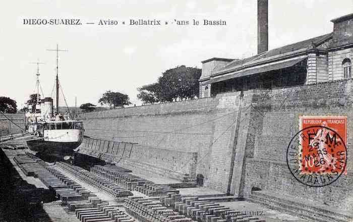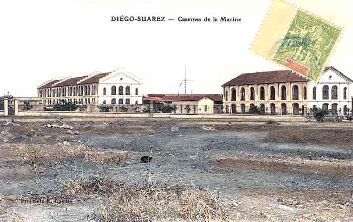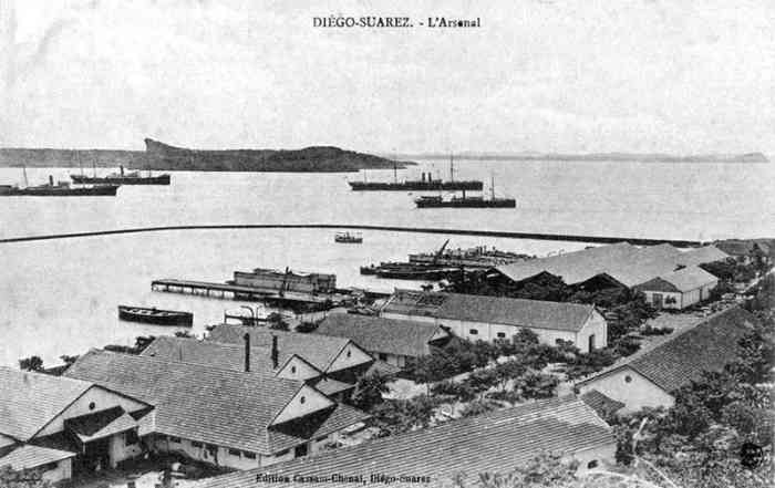Madagascar. Sous influence française depuis 1883, Madagascar devient colonie à part entière par décret du 6 août 1896. Dès 1891, des travaux de défense sont entrepris à Diego-Suarez, dont la Troisième République, par décrets du 4 octobre 1898 et 1er avril 1899, décide de faire un « Point d’appui de la Flotte ». Les travaux d’infrastructure et de fortification ne démarrent réellement qu’après le vote, le 20 juillet 1900, de la loi Gautret sur la défense des colonies. Édifiées sous l’impulsion énergique du colonel Joffre, entre 1900 et 1904, sur la base du programme du 17 février 1900 modifié au gré des évolutions politiques, des défenses solides sont établies, autour d’un arsenal doté d’un bassin de radoub de 200 mètres. Seit 1883 unter französischem Einfluss, wird Madagaskar durch Dekret vom 6. August 1896 zur vollwertigen Kolonie. Bereits 1891 werden Verteidigungsarbeiten in Diego-Suarez unternommen, das die Dritte Republik durch Dekrete vom 4. Oktober 1898 und 1. April 1899 zu einem « Stützpunkt der Flotte » bestimmt. Die Infrastruktur- und Befestigungsarbeiten beginnen erst nach der Verabschiedung des Gautret-Gesetzes zur Verteidigung der Kolonien am 20. Juli 1900. Unter dem energischen Impuls von Oberst Joffre werden zwischen 1900 und 1904 auf der Grundlage des Programms vom 17. Februar 1900, das den politischen Entwicklungen angepasst wurde, solide Verteidigungsanlagen errichtet, um ein Arsenal mit einem 200-Meter-Trockendock herum. Sinds 1883 onder Franse invloed, wordt Madagaskar bij decreet van 6 augustus 1896 een volwaardige kolonie. Reeds in 1891 worden verdedigingswerken ondernomen in Diego-Suarez, waarvan de Derde Republiek bij decreten van 4 oktober 1898 en 1 april 1899 besluit er een « Steunpunt van de Vloot » van te maken. De infrastructuur- en versterkingswerken beginnen pas echt na de stemming, op 20 juli 1900, van de Gautret-wet over de verdediging van de koloniën. Opgetrokken onder de energieke impuls van kolonel Joffre, tussen 1900 en 1904, op basis van het programma van 17 februari 1900 aangepast aan de politieke evoluties, worden solide verdedigingswerken opgericht, rond een arsenaal voorzien van een 200 meter droogdok. Under French influence since 1883, Madagascar becomes a full colony by decree of 6 August 1896. From 1891, defence works are undertaken at Diego-Suarez, which the Third Republic, by decrees of 4 October 1898 and 1 April 1899, decides to make a « Fleet Support Point ». Infrastructure and fortification works only really start after the vote, on 20 July 1900, of the Gautret law on the defence of the colonies. Built under the energetic impetus of Colonel Joffre, between 1900 and 1904, on the basis of the programme of 17 February 1900 modified according to political developments, solid defences are established, around an arsenal with a 200-metre dry dock. Pod francouzským vlivem od roku 1883 se Madagaskar stává plnohodnotnou kolonií výnosem z 6. srpna 1896. Již v roce 1891 jsou v Diego-Suarezu zahájeny obranné práce, z něhož Třetí republika výnosy ze 4. října 1898 a 1. dubna 1899 rozhoduje učinit « Opěrný bod flotily ». Infrastrukturní a opevňovací práce se skutečně rozbíhají až po schválení Gautretova zákona o obraně kolonií dne 20. července 1900. Vybudovány pod energickým vedením plukovníka Joffreho v letech 1900 až 1904 na základě programu ze 17. února 1900, upraveného podle politického vývoje, vzniká kolem arzenálu se 200metrovým suchým dokem pevná obrana. © JJM 27/03/2026