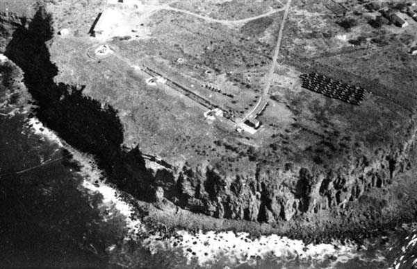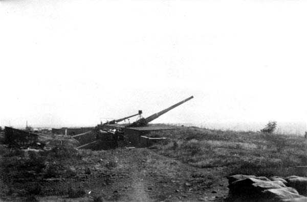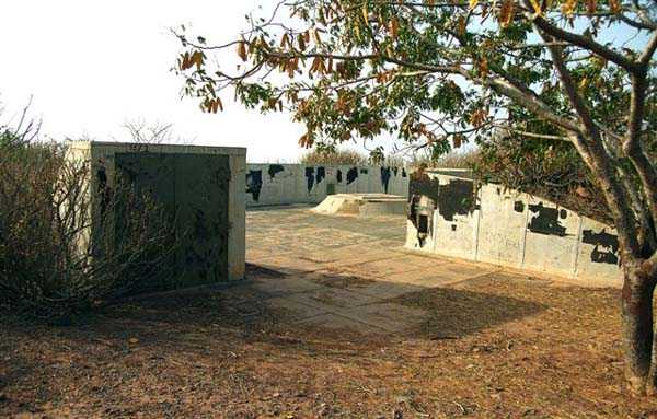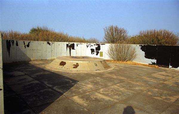 Dakar. This battery is located on Cape Verde, 10 kilometers from Cape Manuel, near the Mamelles hills. Constructed entirely of reinforced concrete, it consists of 4 emplacements each receiving a 240 mm Mle 1893-96 M gun on PC carriage with inclined chassis. They are the same barrels as those arming the turrets of Gorée, Bel-Air and Cape Manuel, but with trunnions. Their characteristics are identical. These pieces remained in position for only a short time because, installed shortly before the war, they were dismantled in 1915 and sent back to mainland France. The battery front extends over 100 meters. A 60 cm gauge track, running behind the emplacements, allows the supply of the individual magazines of each piece from a cavern magazine. The battery was rearmed, before the Second World War, with 3 guns 240 mm Mle 1902-06. These pieces come from the decommissioning of the Danton-class battleships which, in addition to 2 twin 305 mm turrets, carried six twin 240 mm turrets. Mounted on cradle PC carriages, these pieces fire, at the maximum elevation of 26°, a capped armor-piercing shell weighing 220 kilograms, to 19,990 meters. The field of fire is 180° and the rate of fire is one shot every 45 seconds, per piece. To comply with the regulatory spacing, 2 pieces are placed in the outermost emplacements of the old battery, reinforced at the rear by buttresses to withstand the more violent firing shock of the new guns. The central emplacements are filled in, and a concrete pit is built, to the right of the battery, to receive the third piece. This is actually piece 1, according to the regular designation. The battery's PDT is installed on the summit of the eastern Mamelle. It has a Colonies conjugator and an H Mle 34 depression rangefinder. A combat position for a 150 cm GP Bréguet projector is installed on the cliff face. Access is via the gallery of the cavern magazine. The projector is assisted by a listening wall, located on the slopes of the eastern Mamelle. The battery was not engaged during the events of September 1940, because Admiral Cunningham, who knows its power, takes care to stay out of range. It was dismantled before Senegal's independence. Today, it is a sensitive area, an ammunition depot of the Senegalese army. Unfortunately, we were not authorized to see its cavern magazine. JJM 10/08/2008