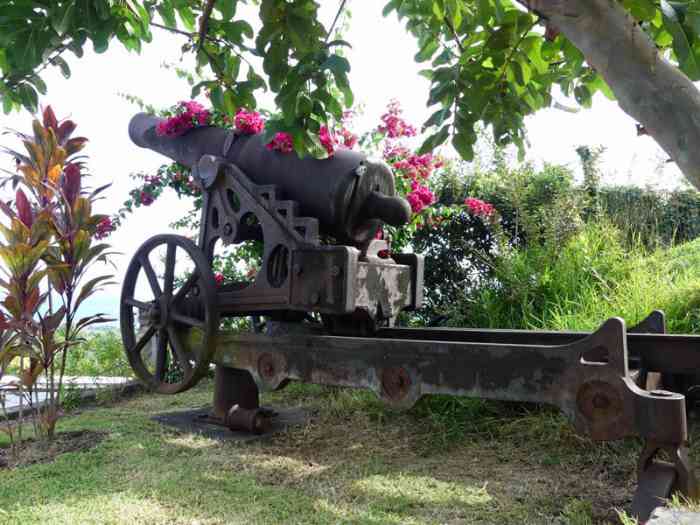 Tahiti. Papeete. Armée de sept canons de 16 cm Mle 1858-60 elle est située sur un îlot du lagon, avec les mêmes inconvénients que la précédente. La batterie est déclassée en 1889, au moment où on envisage d’y établir un poste de commande de torpilles immergées. Bewaffnet mit sieben Kanonen 16 cm Mle 1858-60 liegt sie auf einer Laguneninsel, mit den gleichen Nachteilen wie die vorherige. Die Batterie wird 1889 außer Dienst gestellt, als man erwägt, dort eine Kommandostelle für Unterwassertorpedos einzurichten. Bewapend met zeven kanonnen van 16 cm Mle 1858-60 is zij gelegen op een eilandje in het lagune, met dezelfde nadelen als de vorige. De batterij wordt in 1889 buiten dienst gesteld, op het moment dat men overweegt er een commandopost voor ondergedoken torpedo's in te richten. Armed with seven 16 cm guns Mle 1858-60, it is located on a lagoon islet, with the same drawbacks as the previous one. The battery is decommissioned in 1889, when consideration was given to establishing a submerged torpedo command post there. Vyzbrojena sedmi 16cm děly vz. 1858-60 se nachází na ostrůvku v laguně se stejnými nevýhodami jako předchozí. Baterie je vyřazena v roce 1889, kdy se uvažuje o zřízení velitelského stanoviště pro ponořená torpéda. © JJM 04/04/2026