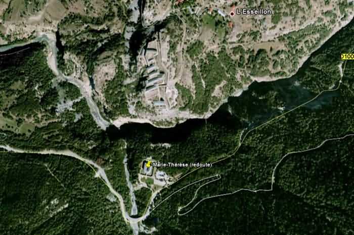 Dept 73 (Savoie). Předsunuté postavení pevnosti Modane. 181?. 1 242 m/n.m. Barrière de l’Esseillon. Bývalé sardinské dílo s Montalembertovou architekturou, které přešlo na Francii po připojení Savojska v roce 1860. Uvedeno pro informaci.