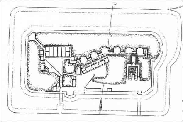 Fortress of Dunkirk, west of the city, 1878-1880. The western counterpart to the Zuydcoote battery, this battery was rectangular with rounded corners, except for salient 4, which was angled. The scarp of the gorge and front III-IV was detached and marked by a 3.5 m high wall. The battery had two entrances in this scarp wall, accessed by crossing the water-filled ditch on a wooden bridge. The first entrance was located approximately one-third of the way along the gorge, and the second closer to salient IV. Between them, a bastion for infantry fire defended the ditch. The rest of the perimeter was defended by a double caponier at salient II and a wing in the curve of salient III. Although four 7-pounder guns are recorded at the battery in 1901, we cannot guarantee that they were actually mounted there. The left flank of the battery consisted of a thick earthwork, the summit of which was arranged in a defensive position. In the center of this earthwork was a courtyard, onto which opened various rooms, including the five bays of the single-level barracks. The barracks housed four officers, thirteen non-commissioned officers, and 159 men. A tunnel passage provided access to the center of the battery and, consequently, to the rear of the six gun emplacements that constituted the battery's main armament. Behind the two rightmost emplacements, an earthen rampart covered a concrete powder magazine with a capacity of 32,600 kg. This magazine was constructed like a rock-cut storehouse, with two parallel entrances and long access galleries leading to a transverse passage in the center of which was the magazine's entrance vestibule. The transverse gallery thus served as an airlock, whereas in the vast majority of cases, this airlock precedes the magazine, certainly, but outside the connecting gallery of the entrances, or the transverse gallery is configured with two airlocks framing the storage room. Here, this storage room is located perpendicular to the transverse gallery forming the airlock. We know of no other similar case. We do not know what the battery's original armament was. After modifications in 1885, it was recorded as having six 24-pounder Mle 1884 cannons on PC carriages. These six pieces formed a line slightly broken in the center. In the battery courtyard was the armament shed, to which was attached a stable for two horses. In 1895, not far to the right of the battery, a second one was built for four 95 mm Mle 1888 guns. The guns were positioned individually in emplacements separated by traverses, at the base of which were ammunition niches. To the right of this battery, a small magazine for propellant powder was built. Around the same time, but unfortunately without further details, there is mention of the construction of one or more concrete shelters for 36 men, as well as two powder magazines, each with a capacity of 50,000 kg. The site was heavily modified by the Germans during the Second World War. As an interesting aside, during the capture of Mount Kemmel by the Germans in 1918, the concrete buttresses were demolished to allow the guns to fire inland. The two batteries were destroyed during the expansion works of the port of Dunkirk, which also destroyed the West structure. See also Dunkirk.