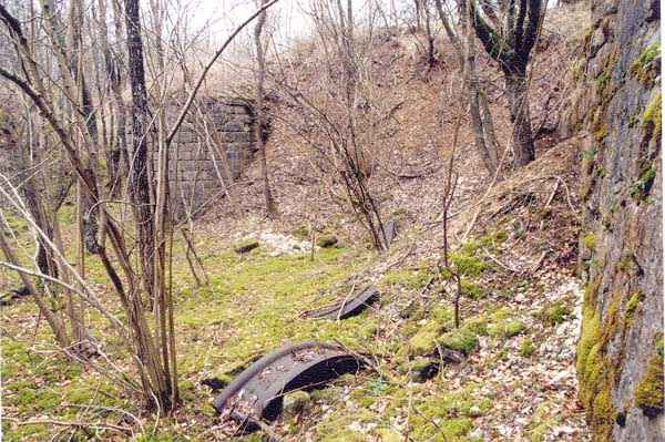 Verdun fortified camp, northwest of the city, 1875-1877. 298 m/alt. Called fort Marceau. Modernized in 1888-1889 (barracks) and 1905-1906 (turret 75 Mle 05). One of the six so-called "panic" redoubts in the place. Large pentagonal fort whose escarpment entrance opens into the face of a double caponier whose embrasures facing salient I are located under a large visor. The drawbridge below has disappeared. The counterscarp entrance, in a tunnel, opens into the right flank of a ravelin whose left (south) parapet covers a powder magazine, a magazine which has retained a large part of its floor. The entrance tunnel provides access to the casemates flanking the gorge, as well as to washrooms and the well. The barracks only have four bays, but they are very long. This barracks was reinforced with simple concrete and the bays of the bays remained open, which is very rarely observed. The barracks do not communicate with any related premises but it has a war entrance in front of the left flank of the gorge caponier. It is necessary to take the rampart street to reach the other points of the fort. The central massif has a hollow. This hollow was accessible by a covered passage in the capital, but this passage has collapsed. It is therefore necessary to climb the massif to be able to reach the powder and ready-made ammunition stores, stores whose lamp crenellations, intact until ten years ago, have now been vandalized (12/2005). These lamp crenellations had windows whose upper part was arched. Practically at the height of the shafts leading to the wings of salients II and IV, in the parados of the rue du rempart, are interesting - and attractive from the point of view of the masonry - artillery magazines. The shelter traverses have for the most part been provided with multiple chicanes in order to protect access to the shafts dug from 1917 (dangerous). Two of these traverses, the closest to salients I and V, are on two levels with passage from one to the other via a shaft provided with steps. In one of the two engineer magazines located in the capital in the parados of the rue du rempart, a shaft opens in the ground. It communicated (at the bottom the access is collapsed) with the approximately 1241 m of galleries dug from 1917. A second shaft, coated with a cement coating, opens into the concrete block of turret 75 Mle 05, a block cast in the capital. This turret, having undergone shaped charge tests by US troops in 1944, is in a sad state and its two guns lie, one on the floor of the firing chamber, the second on the floor of the balance. Pieces of its cap and its mantle are scattered in the ditch on either side of the double head caponier. Note that this turret fired only a few shells in September 1914, when the Germans entered the village of Esnes. The dome of the armored observatory, with a 5 cm diameter hole due to a shaped charge, can be seen on the top of the turret block (to the left and behind the shaft). Along the right of the turret block, the sheath leading to the double head caponier has sustained an impact that has bent all the reinforcement. The fins of salients II and IV are still presentable. The fort was heavily bombarded during the First World War, between April 1916 and October 1917, it is estimated that 6,000 shells were targeted in the fort, mainly 105 and 150 mm calibers. One projectile even burst the pit under the latrines, allowing a rare photo of latrines almost in section. The drinking water well with its thick rim and small raised metal cistern are also among the interesting details, as is the anti-aircraft machine gun mount on the tops of the left part of the barracks. An annex battery on either side of the fort (8-1 and 8-2 according to the 1912 numbering). Abandoned military terrain. Note a small intermediate magazine not far from salient V, a magazine very difficult to find due to the vegetation and a Pamart bell on the glacis in front of the fort. In the interval with the Belle Épine post, we find the combat shelter MBE (for ½ company). Remaining open to all winds for decades, the fort had its entrance walled up in June or July 2008.