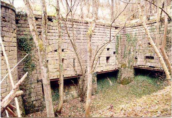 Verdun fortified camp, northwest of the city, 1875-1877. 298 m/alt. Called fort Marceau. Modernized in 1888-1889 (barracks) and 1905-1906 (turret 75 Mle 05). One of the six so-called "panic" redoubts in the place. Large pentagonal fort whose escarpment entrance opens into the face of a double caponier whose embrasures facing salient I are located under a large visor. The drawbridge below has disappeared. The counterscarp entrance, in a tunnel, opens into the right flank of a ravelin whose left (south) parapet covers a powder magazine, a magazine which has retained a large part of its floor. The entrance tunnel provides access to the casemates flanking the gorge, as well as to washrooms and the well. The barracks only have four bays, but they are very long. This barracks was reinforced with simple concrete and the bays of the bays remained open, which is very rarely observed. The barracks do not communicate with any related premises but it has a war entrance in front of the left flank of the gorge caponier. It is necessary to take the rampart street to reach the other points of the fort. The central massif has a hollow. This hollow was accessible by a covered passage in the capital, but this passage has collapsed. It is therefore necessary to climb the massif to be able to reach the powder and ready-made ammunition stores, stores whose lamp crenellations, intact until ten years ago, have now been vandalized (12/2005). These lamp crenellations had windows whose upper part was arched. Practically at the height of the shafts leading to the wings of salients II and IV, in the parados of the rue du rempart, are interesting - and attractive from the point of view of the masonry - artillery magazines. The shelter traverses have for the most part been provided with multiple chicanes in order to protect access to the shafts dug from 1917 (dangerous). Two of these traverses, the closest to salients I and V, are on two levels with passage from one to the other via a shaft provided with steps. In one of the two engineer magazines located in the capital in the parados of the rue du rempart, a shaft opens in the ground. It communicated (at the bottom the access is collapsed) with the approximately 1241 m of galleries dug from 1917. A second shaft, coated with a cement coating, opens into the concrete block of turret 75 Mle 05, a block cast in the capital. This turret, having undergone shaped charge tests by US troops in 1944, is in a sad state and its two guns lie, one on the floor of the firing chamber, the second on the floor of the balance. Pieces of its cap and its mantle are scattered in the ditch on either side of the double head caponier. Note that this turret fired only a few shells in September 1914, when the Germans entered the village of Esnes. The dome of the armored observatory, with a 5 cm diameter hole due to a shaped charge, can be seen on the top of the turret block (to the left and behind the shaft). Along the right of the turret block, the sheath leading to the double head caponier has sustained an impact that has bent all the reinforcement. The fins of salients II and IV are still presentable. The fort was heavily bombarded during the First World War, between April 1916 and October 1917, it is estimated that 6,000 shells were targeted in the fort, mainly 105 and 150 mm calibers. One projectile even burst the pit under the latrines, allowing a rare photo of latrines almost in section. The drinking water well with its thick rim and small raised metal cistern are also among the interesting details, as is the anti-aircraft machine gun mount on the tops of the left part of the barracks. An annex battery on either side of the fort (8-1 and 8-2 according to the 1912 numbering). Abandoned military terrain. Note a small intermediate magazine not far from salient V, a magazine very difficult to find due to the vegetation and a Pamart bell on the glacis in front of the fort. In the interval with the Belle Épine post, we find the combat shelter MBE (for ½ company). Remaining open to all winds for decades, the fort had its entrance walled up in June or July 2008.