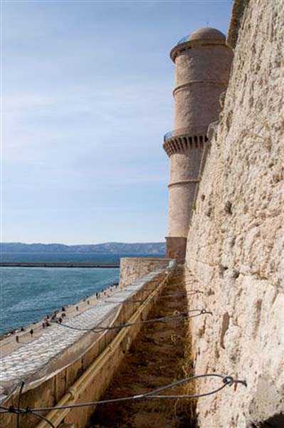 Dept 13 (Bouches-du-Rhône). Plaats wiens kustlint bezaaid was met oude versterkingen. De Commissie voor Kustverdediging sprak trouwens, tijdens haar zittingen van 13 juni tot 11 juli 1874, de declassering uit van de batterijen van Lèques, Carry, kaap Maurrepiane, Joliette, het eilandje Endoume, kaap Croizette (geworden Croisette), Riou, Morgiou, het kasteel van Cassis, La Lèque, Caceau, Lombards, Matelots, Môle, Trois Moulins, Lioquet, Gros Nez, alsook de batterij en de toren van de Rhône (ook Saint-Louis genoemd) en de werken van het Île Verte. Deze Commissie vermeldt niet eens meer (voor wat de in bezit van de auteurs zijnde documenten betreft) de oude forten Saint-Jean, Saint-Nicolas, Notre-Dame de la Garde, noch zelfs het kasteel If. Daarentegen sprak dezezelfde Commissie zich uit voor de bouw van 5 nieuwe batterijen en de reorganisatie van 5 andere. De haven van Marseille had geen militaire roeping, behalve dat hij kon dienen voor de ontscheping van troepen en waren. Weinig informatie werd over deze plaats gevonden, maar het schijnt dat na 1905 ambitieuze versterkingsprojecten hebben bestaan. We weten niet of ze tot hun einde zijn gebracht.