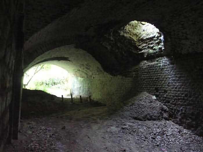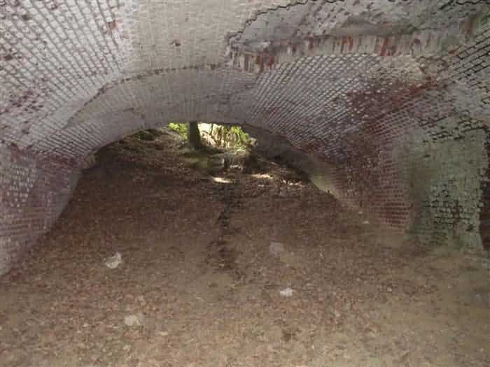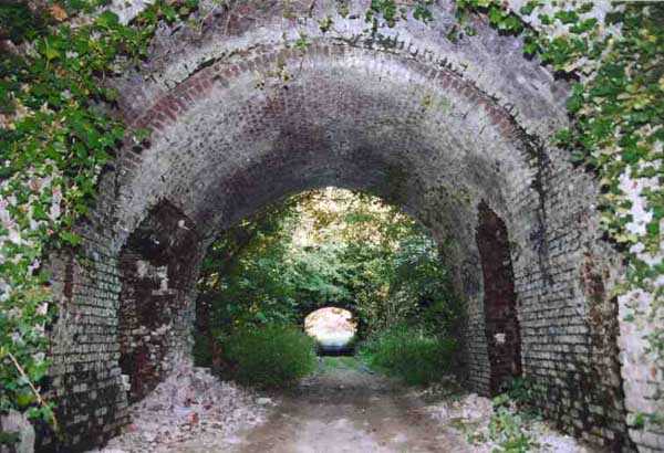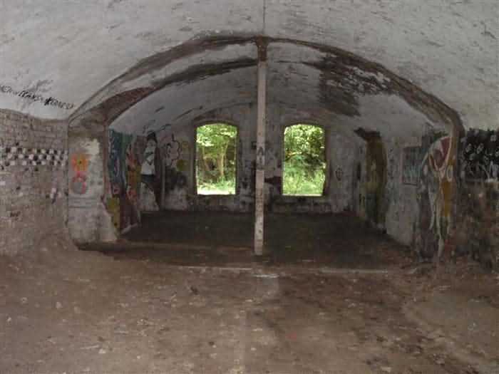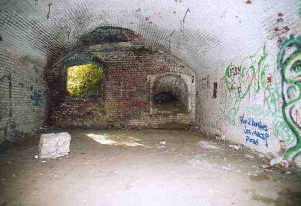 Fortress of Condé-sur-l’Escaut, northwest of the city, 1881-1884. 40 m alt. Called fort Beurnonville. 431 men and 27 guns. It protected the road to Tournai and the Scheldt valley downstream. Its front is located barely 900 m from the Belgian border. It is a trapezoidal fort, made of terracotta bricks, with a curtain wall at the gorge. In addition to the coffers of its curtain wall, the defense of its ditches was entrusted to a wing at salient II and a double caponier at salient III. The back of the curtain wall was occupied by eleven bays of a first barracks. The entrance opened between numbers 6 and 7. Once through the entrance porch, one emerged into a courtyard facing the eleven other bays (deeper than those of the gorge) on a single level of the troop barracks. The powder magazine, with a capacity of 30,000 kg, was located on the left, in the extension of the gorge barracks. On the right of this same barracks, there were other artillery magazines and at least one loading workshop. The fort was decommissioned in 1889, but its complete disarmament only took place on the basis of the famous law of July 17, 1912. In August 1914, a few 90 mm cannons were urgently reinstalled. During their retreat in 1918, the Germans blew up the powder magazine and destroyed part of the barracks. The site would later be further disrupted by the construction of a Maginot Line fort. Today (08/2008) of the Séré de Rivières fortification, only the premises remain in a very poor state. The German damage of 1918, the transformations of the interwar period, the bombardments of 1940 (the fort had to withstand 305 mm shells) and subsequent deterioration are not always easy to separate. The ditches have been filled in. Of the relief arches from the counterscarp to the gorge, only the summits now emerge. The curtain wall is still there, but its left vault has partly collapsed. The barracks of the gorge have held up rather well, but graffiti, rubbish and fires of all kinds have considerably damaged them. The entrance is so damaged that we have not been able to determine what type of drawbridge preceded it. The powder magazine no longer exists. A few bays of the troop barracks, devoid of facades and all with ruptured ceilings, one by collapse, the other following the impact of projectiles, are still visible. A large Maginot observation block with several floors and topped with two armored bells was sunk on its right side. The sides of the fort have each received a modern version of the old casemates of Bourges. These Maginot elements are very degraded. The caponiers are now only a memory and the recurring emergence of filth noted while walking through the fort and its exteriors testifies to outrages well after the Second World War. In the end, the only more or less presentable remains the right-hand chest of the curtain wall. We see there a beautiful concrete platform for a 12-pounder cannon and, above all, a strange basement whose purpose we cannot explain. 150 to 200 m behind salient I, we note the only example of a casemate for a 155 mm G.P.F. gun ever sunk.