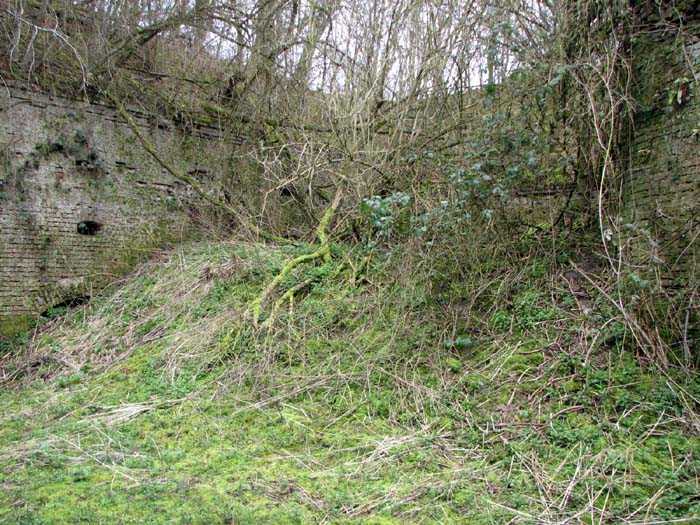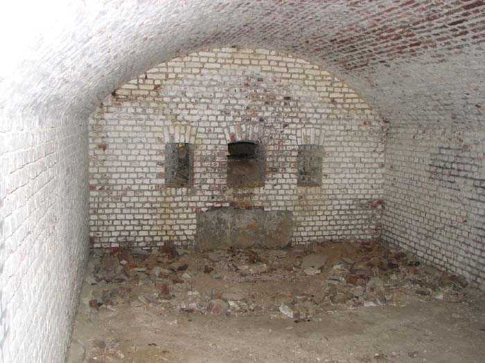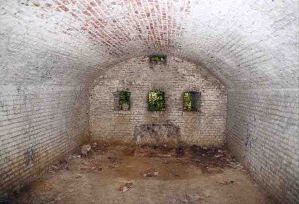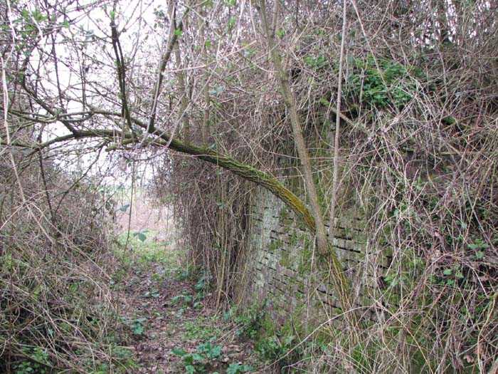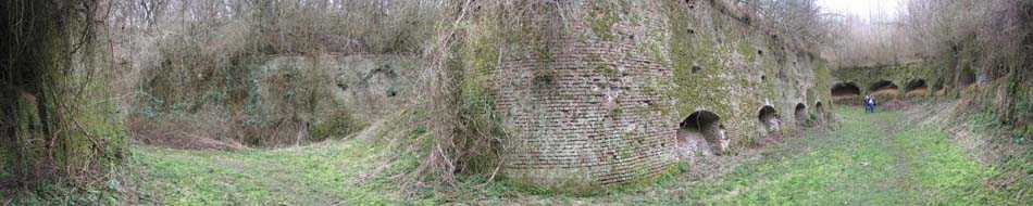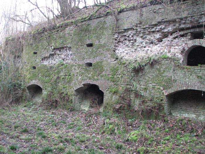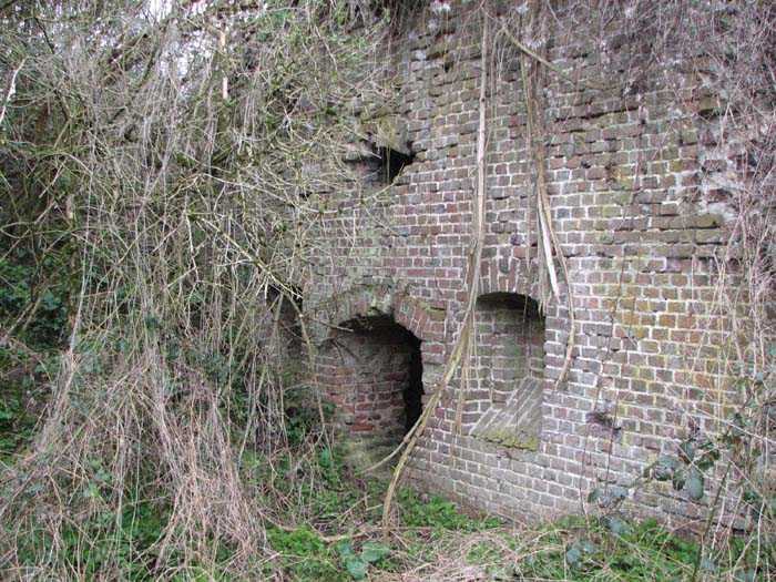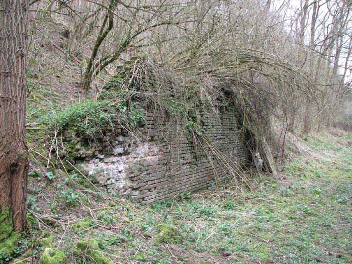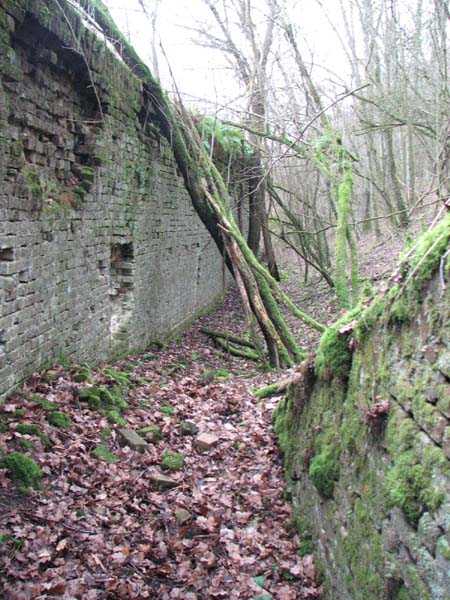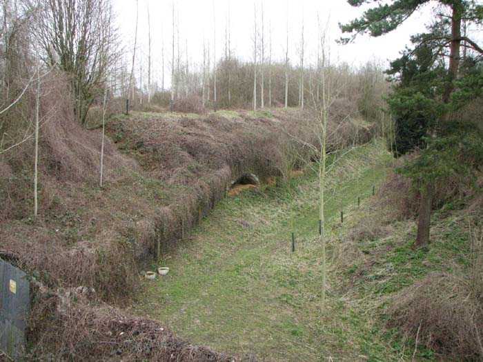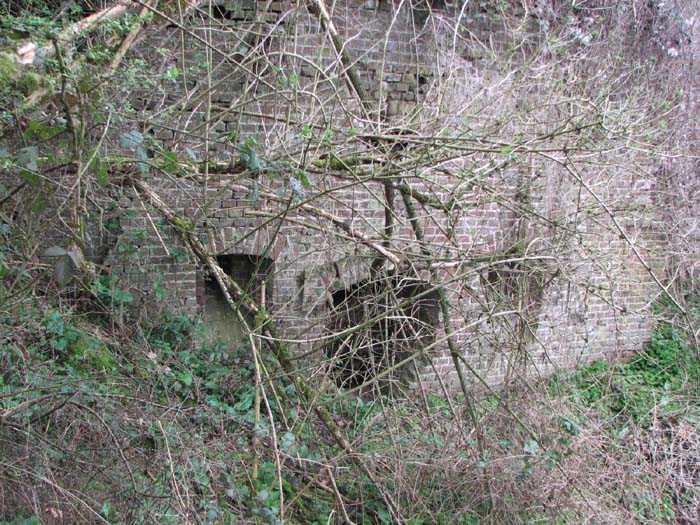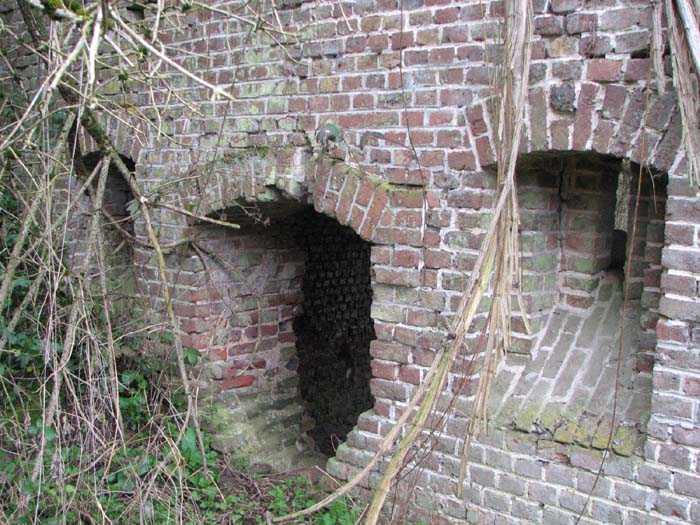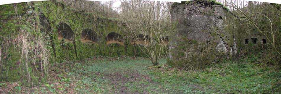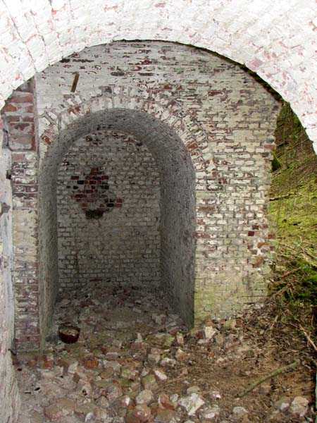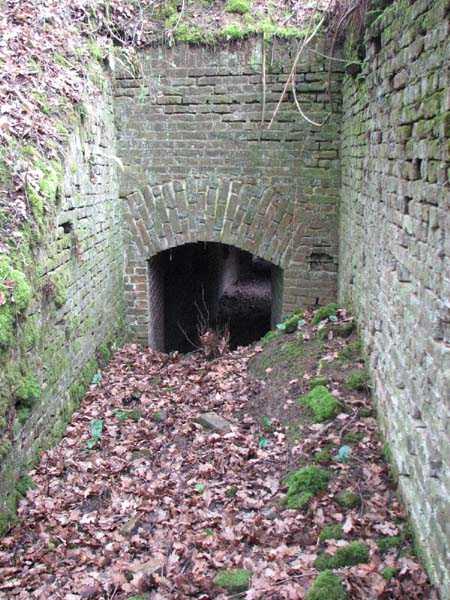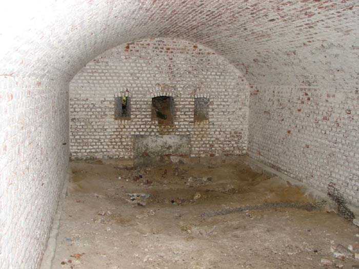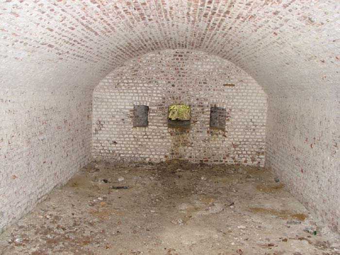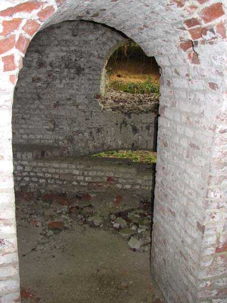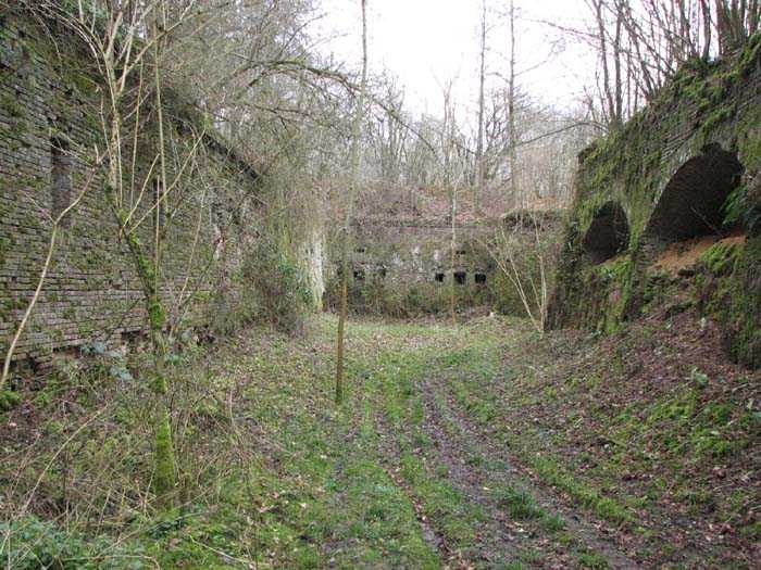 Position La Fère - Laon – Soissons, northeast of La Fère, 1877-1881. 119 m/alt. Named fort Perre. 765 men and 36 guns. It monitored the terrain between the Oise and the Serre. Slightly irregular quadrilateral, it is surrounded by a dry ditch defended by a double caponier at salient II and a flanking battery at salients III and IV. The entrance opens at the center of the gorge, quite strongly set back, in the hollow of a narrow curtain. Past the entrance porch, one emerges into a small courtyard from which one accesses the rampart street on either side. The main axis continues by passing between two stables for, each, six horses, before emerging into a transverse courtyard where stood the two levels of the seven bays of the barracks. Facing these barracks, seven other bays, also on two levels, included the non-commissioned officers' and officers' quarters as well as others for the men. The bakery included two bread ovens of the Lespinasse model for wood, each for 350 rations, replaced in 1886 by two Lamoureux ovens of wood/coal type. To the left of the barracks was a powder magazine with a capacity of 40,300 kg and a second, to the right of the barracks, contained only 22,000 kg. Singularly, one finds built against the barracks, a third magazine with airlock and lateral shafts, magazine with an approximate length of seven meters for a width of three. Another very rare element, the fort counted no less than three drinking water wells. The rampart street runs along 15 traverses, but two-storied, very similar to those one can still see at La Malmaison or in several forts of Paris. Traverses 3 to 13 are moreover connected by an enveloping gallery and numbers 14 and 15, encased, have abutments on the facades, similar to Model 1879. Among the peculiarities, it should be noted that the rooted passages of the rampart street behind fronts I-II and III-IV are supposed to be arranged to serve a piece for indirect fire there. This case is extremely rare if not unique. Nevertheless, in situ, the configuration of these passages as firing casemates is clearly less obvious than on the plan we were able to consult. The fort was dismantled by the Germans during their retreat in 1918. They proceeded to the methodical demolition of the barracks of which only the small powder magazine, via the main axis, from the head, remains somewhat accessible. This small powder magazine possesses no less than seven embrasures per flank. The lateral powder magazines have given way to two enormous craters. The entrance of the fort is extremely degraded. Its porch, with segmental arch vault, has kept only its first three meters, but it was impossible for us to determine the type of drawbridge. By means of crawling, the right guardhouse and the tiny right defense post of the curtain can be reached. The majority of the rampart street remains, except for the first four traverses which were either destroyed or covered by the lip of the crater from the explosion of the nearby powder magazine. Traverse number 3 is supposed to possess an optical communications post oriented on Douai. Traverse number 13, at the right end of the enveloping gallery, shows itself a second optical post, with a single embrasure aimed at the fort of Hirson. The exterior of this post is collapsed. That is a pity because to the left of the optical embrasure a narrow corridor seems, via a postern, to allow exiting in front of the embrasure. If this should be the case, it should be considered as an extremely rare if not unique case. While the ditch still presents a certain obstacle, and that at Manonviller, Saint-Thierry or also Leveau the Germans took care to destroy the flanking organs of these ditches, here, the three caponiers subsist. That is fortunate because their brickwork is superb and several peculiarities deserve to be noted there. Their orillons possess, at 20 cm from the ground, an arc of five oblique conduits of 20 x 15 cm for close defense with grenades. The rear of the firing chambers of the flanking batteries includes, besides foot embrasures, several openings for ventilation. The platforms of the 12-breech-loading guns are of the Mixed Model 1866. The double caponier, between firing chamber and flanking gallery of the faces possesses two projectile magazines. Of the building preceding the entrance, on the counterscarp, only ruins and the left guardhouse remain. Today (03/2008), the fort is private property and closed.