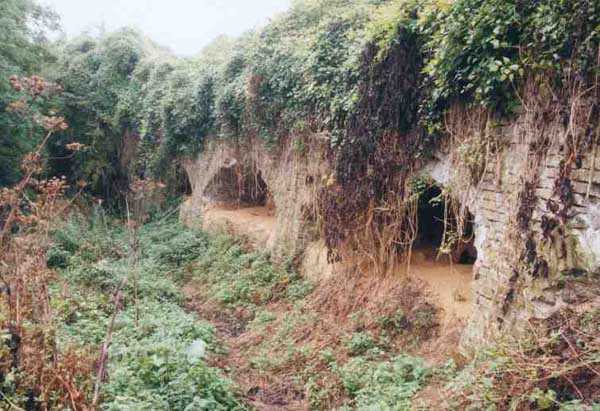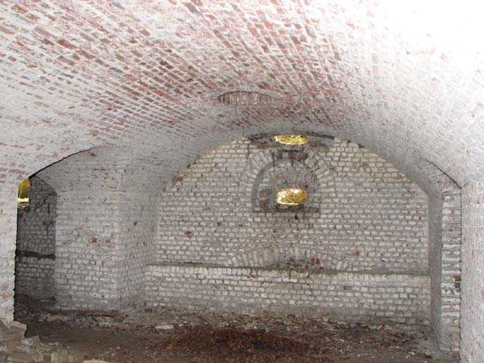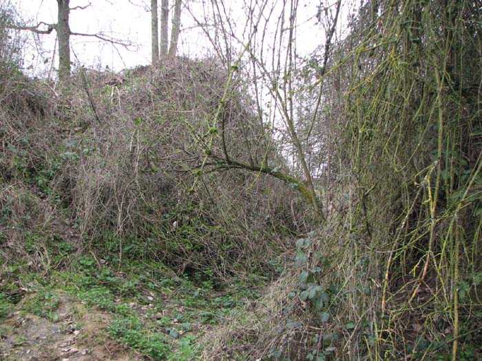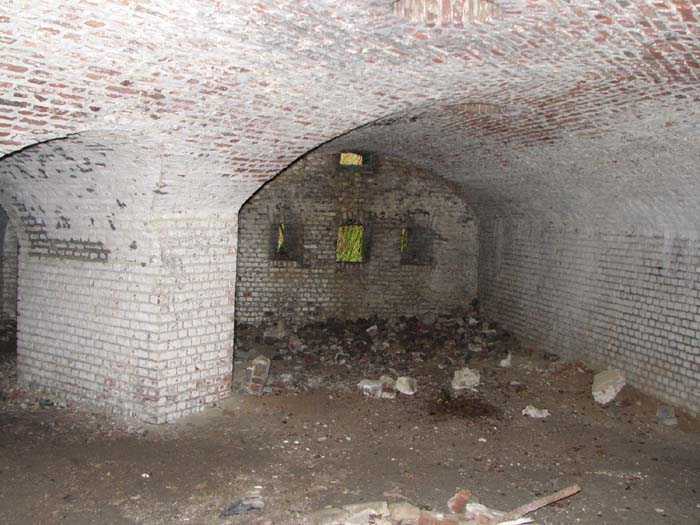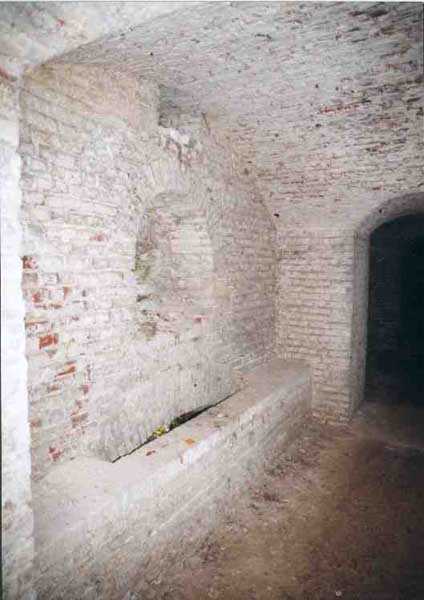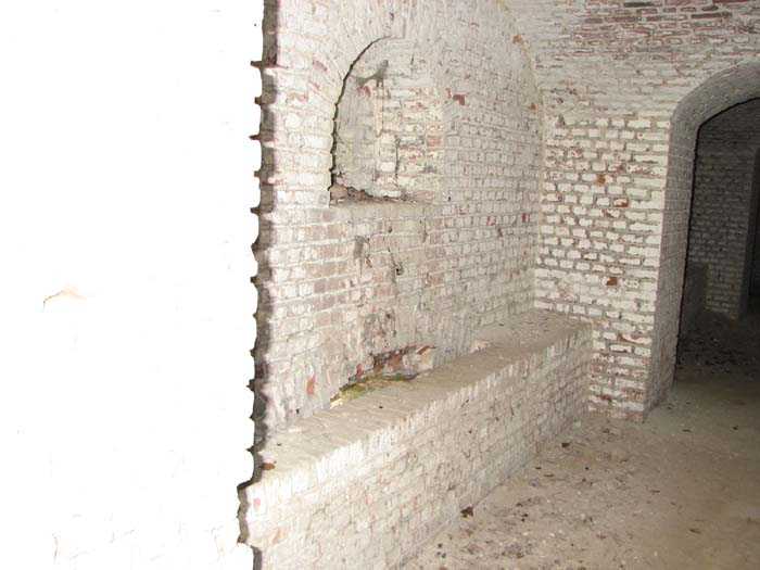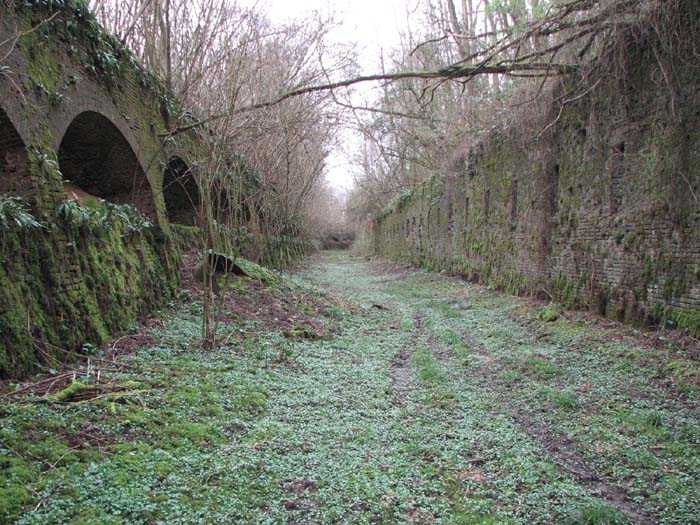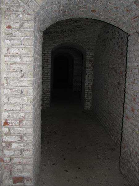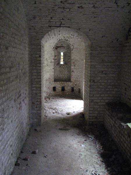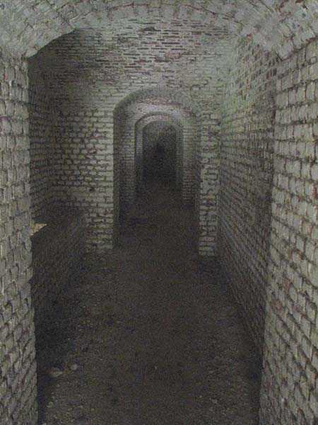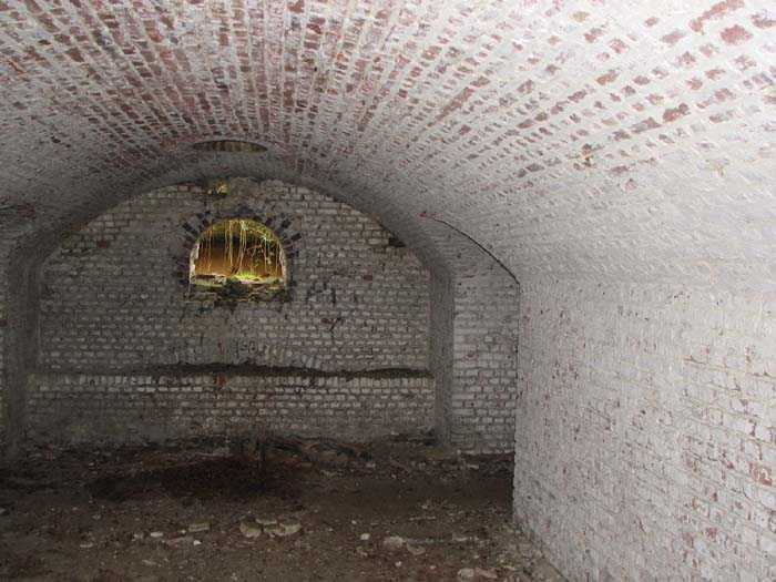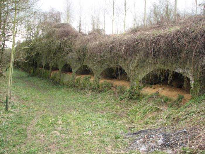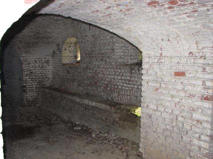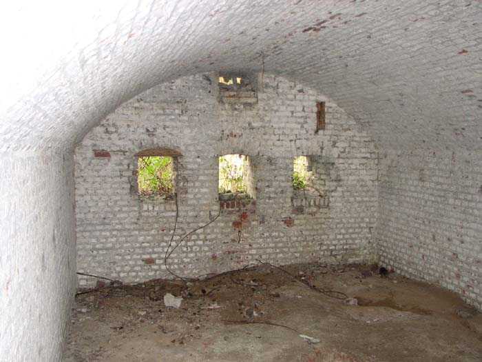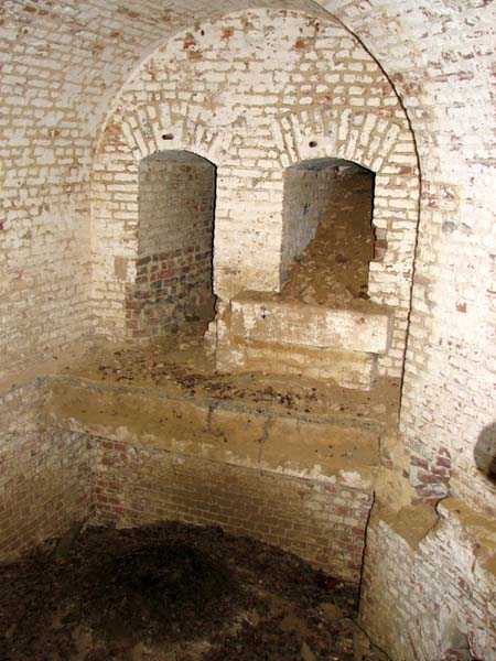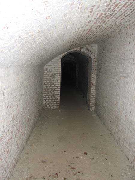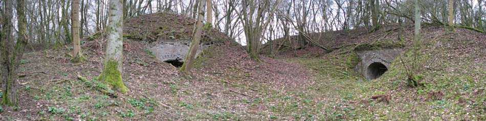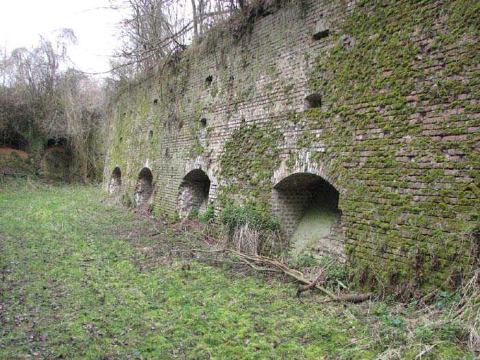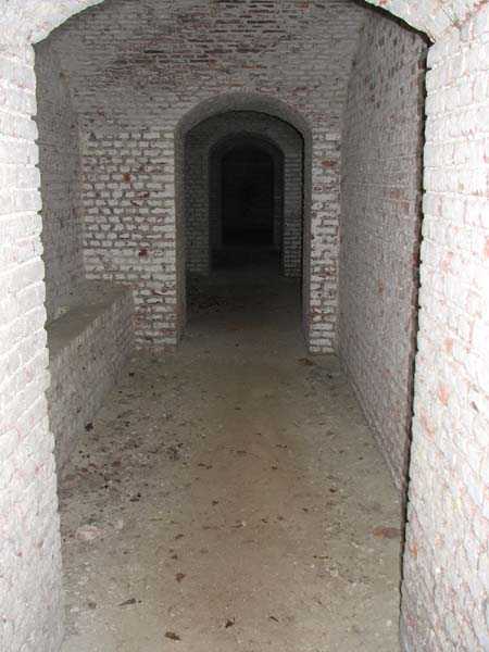 Position La Fère - Laon – Soissons, northeast of La Fère, 1877-1881. 119 m/alt. Named fort Perre. 765 men and 36 guns. It monitored the terrain between the Oise and the Serre. Slightly irregular quadrilateral, it is surrounded by a dry ditch defended by a double caponier at salient II and a flanking battery at salients III and IV. The entrance opens at the center of the gorge, quite strongly set back, in the hollow of a narrow curtain. Past the entrance porch, one emerges into a small courtyard from which one accesses the rampart street on either side. The main axis continues by passing between two stables for, each, six horses, before emerging into a transverse courtyard where stood the two levels of the seven bays of the barracks. Facing these barracks, seven other bays, also on two levels, included the non-commissioned officers' and officers' quarters as well as others for the men. The bakery included two bread ovens of the Lespinasse model for wood, each for 350 rations, replaced in 1886 by two Lamoureux ovens of wood/coal type. To the left of the barracks was a powder magazine with a capacity of 40,300 kg and a second, to the right of the barracks, contained only 22,000 kg. Singularly, one finds built against the barracks, a third magazine with airlock and lateral shafts, magazine with an approximate length of seven meters for a width of three. Another very rare element, the fort counted no less than three drinking water wells. The rampart street runs along 15 traverses, but two-storied, very similar to those one can still see at La Malmaison or in several forts of Paris. Traverses 3 to 13 are moreover connected by an enveloping gallery and numbers 14 and 15, encased, have abutments on the facades, similar to Model 1879. Among the peculiarities, it should be noted that the rooted passages of the rampart street behind fronts I-II and III-IV are supposed to be arranged to serve a piece for indirect fire there. This case is extremely rare if not unique. Nevertheless, in situ, the configuration of these passages as firing casemates is clearly less obvious than on the plan we were able to consult. The fort was dismantled by the Germans during their retreat in 1918. They proceeded to the methodical demolition of the barracks of which only the small powder magazine, via the main axis, from the head, remains somewhat accessible. This small powder magazine possesses no less than seven embrasures per flank. The lateral powder magazines have given way to two enormous craters. The entrance of the fort is extremely degraded. Its porch, with segmental arch vault, has kept only its first three meters, but it was impossible for us to determine the type of drawbridge. By means of crawling, the right guardhouse and the tiny right defense post of the curtain can be reached. The majority of the rampart street remains, except for the first four traverses which were either destroyed or covered by the lip of the crater from the explosion of the nearby powder magazine. Traverse number 3 is supposed to possess an optical communications post oriented on Douai. Traverse number 13, at the right end of the enveloping gallery, shows itself a second optical post, with a single embrasure aimed at the fort of Hirson. The exterior of this post is collapsed. That is a pity because to the left of the optical embrasure a narrow corridor seems, via a postern, to allow exiting in front of the embrasure. If this should be the case, it should be considered as an extremely rare if not unique case. While the ditch still presents a certain obstacle, and that at Manonviller, Saint-Thierry or also Leveau the Germans took care to destroy the flanking organs of these ditches, here, the three caponiers subsist. That is fortunate because their brickwork is superb and several peculiarities deserve to be noted there. Their orillons possess, at 20 cm from the ground, an arc of five oblique conduits of 20 x 15 cm for close defense with grenades. The rear of the firing chambers of the flanking batteries includes, besides foot embrasures, several openings for ventilation. The platforms of the 12-breech-loading guns are of the Mixed Model 1866. The double caponier, between firing chamber and flanking gallery of the faces possesses two projectile magazines. Of the building preceding the entrance, on the counterscarp, only ruins and the left guardhouse remain. Today (03/2008), the fort is private property and closed.