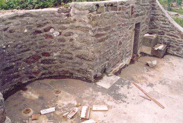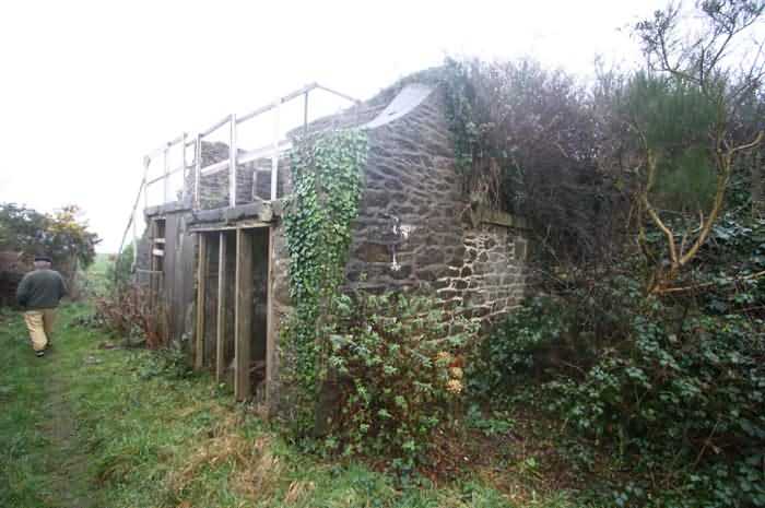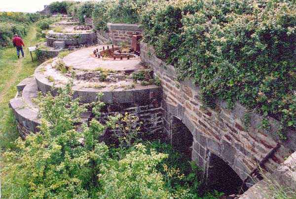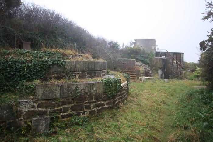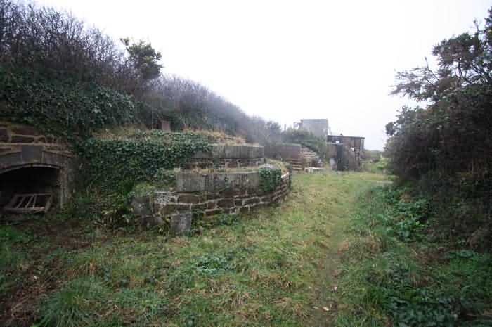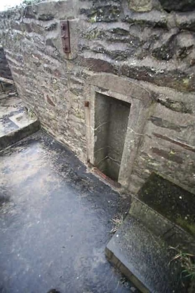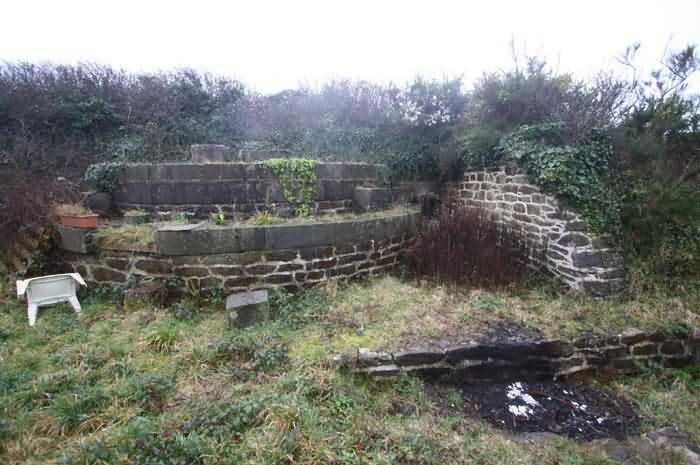 Fortress of Brest, west of the city. 60 m/alt. Decided in 1888, the construction of 12 batteries of 6 × 100 mm was only materialized by the development of 5 of them including 2 with 6 pieces and 3 with 4 pieces. The one now known, with 6 pieces, of Mengant was built in 1896-1897, but apparently as a replacement for an earlier one though recent because built end of 1892. Its M guns 100 c model 1889 T.R. on M mounts model 1891-T-97 P.A. are listed in the armament states of 1900 and 1914 and are the only ones of the fortress of Brest. Established a short distance west of the high battery of the Mengant position, of classical design, this battery aligns its six piece emplacements separated by small traverses at the base of which one finds the niches for the safety shots. At each end, one finds an observation post, uncovered in the east and covered in the west, both cast in 1904. This cover slab probably dates from the Interwar period. The battery is bordered by the road leading to the high battery of Mengant which separates the battery from its projectile magazine, magazine built not shellproof. The battery is private property, sporadically occupied. It is particularly well cleared and its mount sub-beds are the most beautiful of this type that one can encounter in the entire fortress of Brest. Sometimes reported as « Quillihouarn battery ».