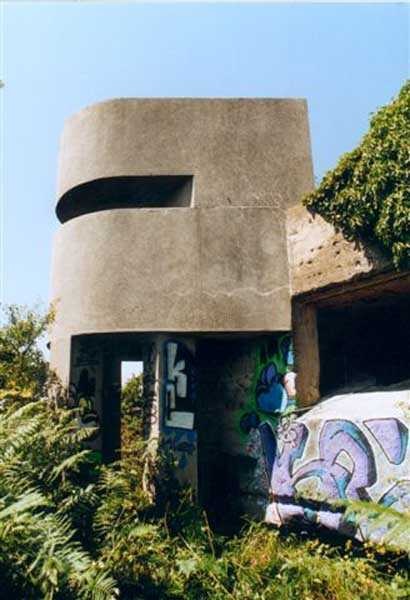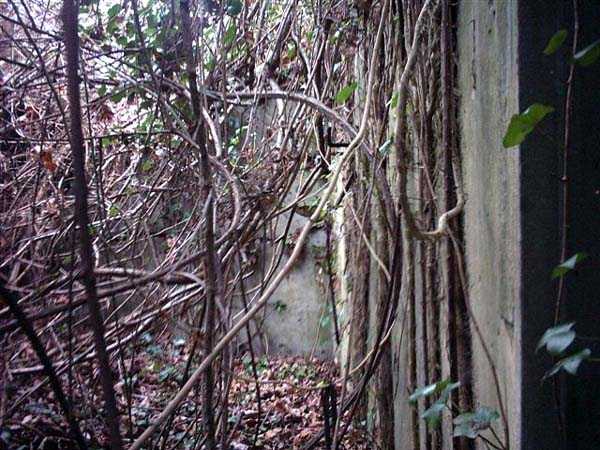 Fortress of Brest, west of the city. 1885-1886. In 1882, the installation or excavation of a breach battery for 4 × 32 c had been proposed. The abandonment of the small port by the torpedo boats of the mobile defense allowed to move back the pieces into the ravine and to install them for barbette firing. Its development in the bottom of the ravine of the stream coming from the hamlet of Kerfesan will first result in an extension of the enclosure of the Mengant position, then in the construction of two traverse-shelters and a powder magazine dug into the cliff. This magazine served to store German shells 105 mm (from the Kerdalaez battery ?) and there was (when ?) an explosion. The rock resisted but the lateral linings were largely blown out, as well as the partition that was to include the lamp embrasure. The traverse-shelters are of the model required for coastal batteries of this caliber, that is to say with a small window above the door, window having two thick wooden shutters, shutters whose hinges are sealed head-to-tail. The 4 M guns 32 c model 1870-81 on M mounts model 1882 P.A., installed in December 1888, are listed in the armament states of 1900 and 1914; due to the configuration of the place, they could practically have no lateral traverse. The rangefinder post of the battery is located more to the east, in height, but would not be the one in front of the Kerdalaez battery which appears to be, with its identical copy a little further west, a construction dating from the Interwar period, reused both by the occupant and by the French army after 1945. The rangefinder post of the ravine battery therefore remains to be searched for in the thick vegetation of the cliff. Note finally that the jetty of the low battery in no way hindered the firing of this battery because it is at level 5.2 whereas the parapet of the pieces of the ravine battery is at level 11.10, except that of the East platform, which is at level 10.00. See also Mengant position.