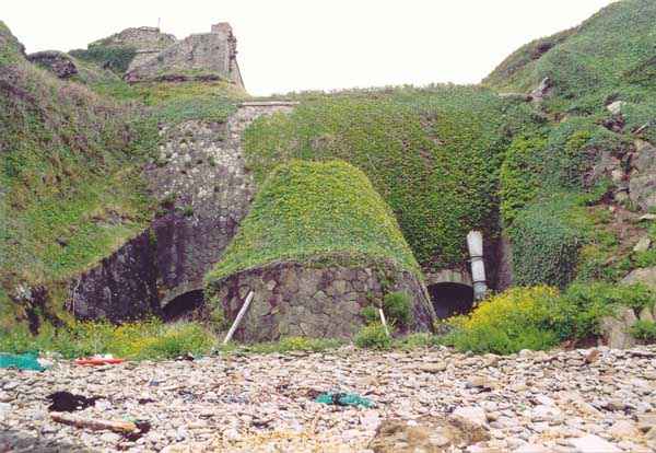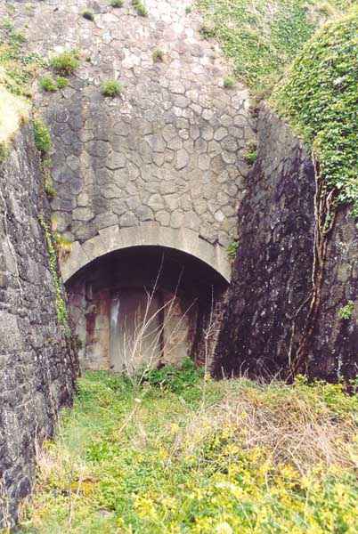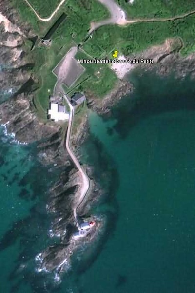 Fortress of Brest, north of the strait, 1887-1888. First, as early as 1876, consideration is given to a breach battery, possibly under turret. In 1882, a breach battery of 2 × 32 c firing on barbette was proposed. Ultimately, it is a casemated breach battery, dug into the rock and armed with 2 navy guns 32 c model 1870-84 on M mounts model 1888, firing at sea level that will be installed. The minutes of the Coastal Defense Commission of February 19 1886 report it as to be built in first urgency. Of a very simple plan, one descended there by a staircase at the foot and to the left of which was a small powder magazine. Six meters further was, on the right, the first of the gun cellars immediately followed by the second. These gun cellars measured twelve meters in length and were protected by a wall three meters thick. It was disarmed in August 1915. The battery was transformed, notably by the French after the second world war. The access staircase, located in the covered passage of the entrance of the old fort, was barred by a thick armored door and the embrasures were concreted. Today, the interior is inaccessible and descending in front of the embrasures proves to be a rather perilous exercise. See position of Minou.