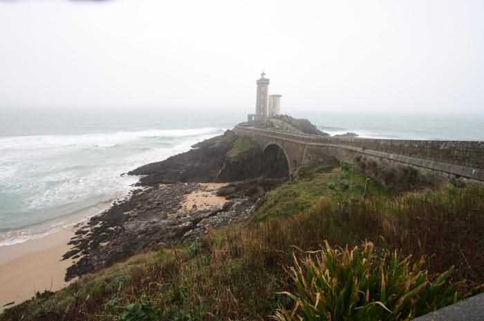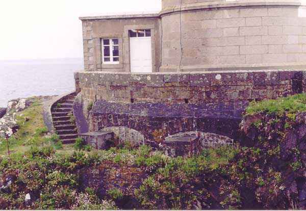 Fortress of Brest, north of the strait. Around 1889, it was proposed, at the foot of the Minou lighthouse (in front of the old fort), a battery of four 47 mm quick-fire guns. In 1892, the battery of 4 × 47 mm model 1885 quick fire on M mounts model 1885 with crinoline was installed. Reputedly suppressed in 1904, curiously, it will still be listed in the armament states of 1900 and 1914. The guns, whose replacement by 65 mm had been requested since April 17 1904, will be removed before February 1916, perhaps even by the end of 1914. Today a semaphore, adjoining the lighthouse, has been built on the location of the guns of which only a single pair of mount sub-beds remains in the ground. The ammunition niches, although walled up, are still detectable in the enclosure wall of the lighthouse, facing the coast. The lighthouse was lit in 1848 and automated in 1989. See position of Minou.