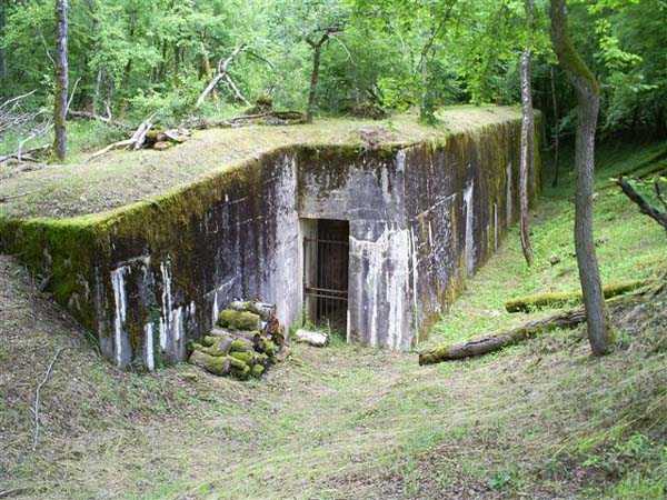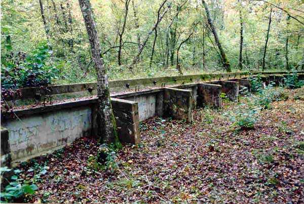 Toul fortified camp, north of the town, 1906. 56 men lying down or 88 men sitting + 12 lying down. Located almost halfway between the western fort of the Old Canton and the fort of the Old Canton, the fort is in fact a concrete shelter for ½ company, perfectly hidden from view, not being topped by an infantry parapet. The infantry fighting position is located about forty meters in front of the shelter and is marked by concrete firing parapets (mask trenches) without parados. The bed frames are still in place, and if it hadn't been cleared of vegetation by the Citadel association in September 2004, it would have remained virtually untraceable for the uninitiated. So far, it has escaped graffiti, but for how much longer? If we consider the shelter separately from the concrete parapets, it is appropriate to refer to this barracks only as the "Nibarde shelter"; if, on the contrary, we consider the shelter and the concrete parapets to be one, it is appropriate to refer to the whole as a structure. We have opted for the latter solution. Free access.
