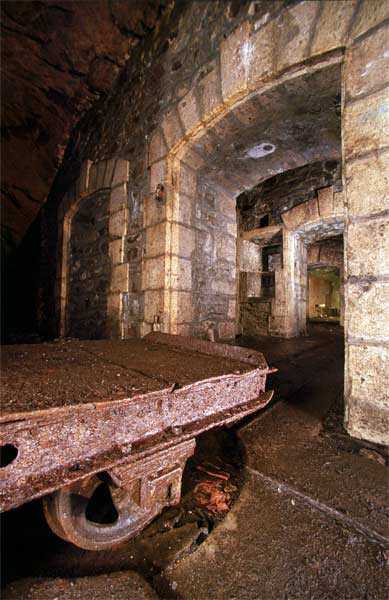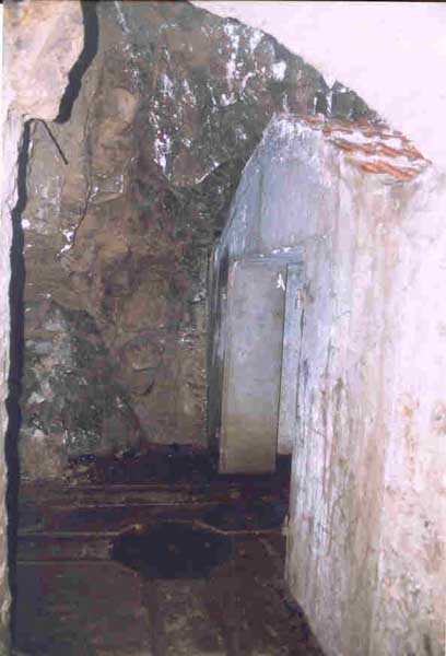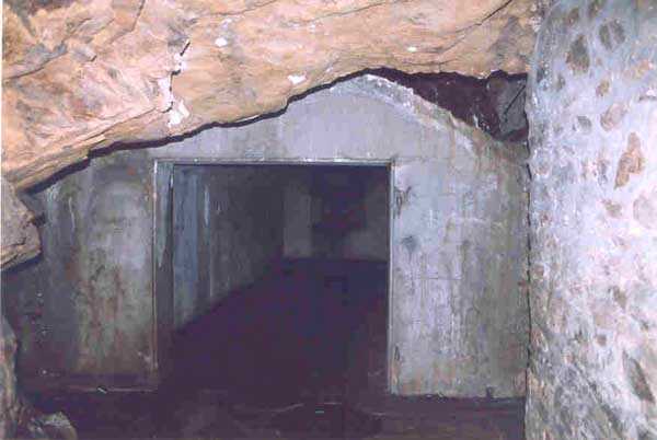 Place de Cherbourg ; NO de la ville, ± 1890. ± 75 m/alt. Magasin sous roc, possédant deux entrées. Il semble bien qu'il communiquait par deux puits, (rebouchés) avec la surface, soit peu en arrière de la batterie annexe de Nacqueville Haut. L'entrée de gauche donne droit vers une pièce de stockage de 12 x 3 m et dont la toiture est faite de tuiles rouges en terre cuite. L'entrée de droite donne sur une galerie qui, après quelques mètres, de divise en deux branches, dont celle de gauche donne sur un local de stockage de 12 x 4,5 m précédé d'un sas avec créneau à lampe, tandis que la branche de droite donne au pied d'un puits d'où part une galerie transversale reliant l'ensemble. Deux wagonnets pour voie de 60 sont abandonnés dans ces galeries sur une voie de… 0,40 m. Ce magasin est aujourd'hui (06/2005) particulièrement bien caché au sein d'une végétation exubérante. Terrain à l'abandon, propriété de la Marine.