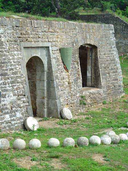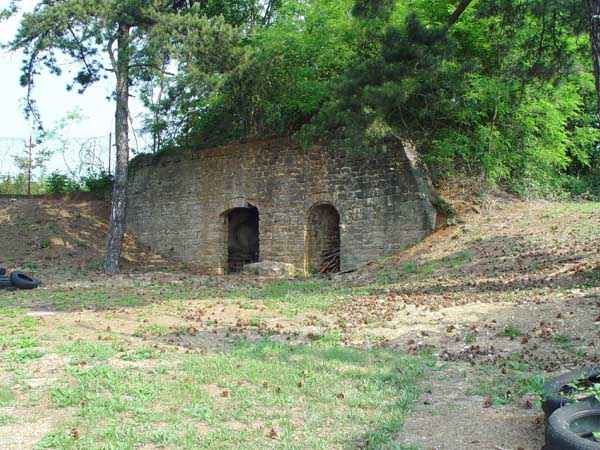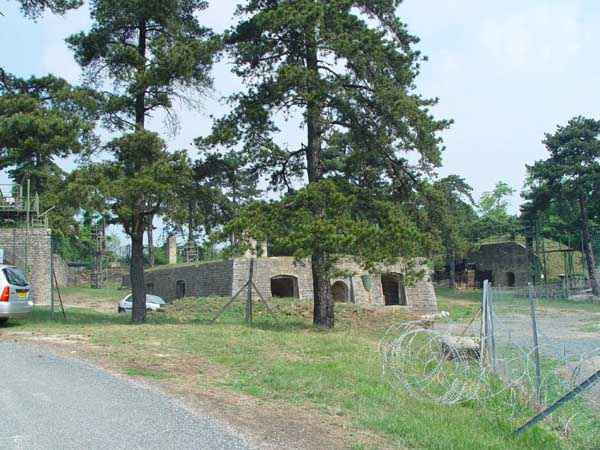 Fortress of Lyon, north-north-west of the city, 1874-1877. 589 m/alt. 49 men. Located a short distance south-south-east of Fort Mont Verdun. Battery with trapezoidal perimeter and lacking a defensive ditch. The gorge is widely open. Four shelter-traverses surround an esplanade at the centre of which is a rectangular redoubt having two levels, namely a ground floor and a basement. As at Mont Thou, this redoubt was encircled by a dry ditch. As at Mont Thou again, we do not know what the initial roof configuration was. The only document from which we can draw some instruction indicates that an earthen covering was established in 1891. What was there before? In July 2003, this work was under full restoration; in April 2007, the site remained in the state of July 2003! Military terrain not to be approached without authorisation. Sometimes spelled "Narcelles".