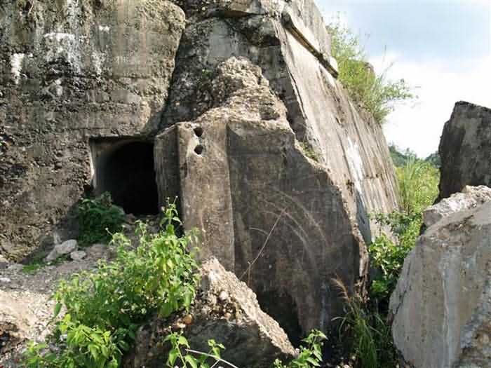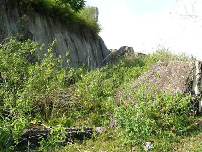 Lang Son. One of the three modern works built at Lang Son between 1942 and 1945, on the site of an old 19th-century post. It is located one kilometre west of Lang Son, at an altitude of 340 metres, above the Song Ky Cong. It has an underground infrastructure, comprising the command post, barracks, a power plant and magazines. This complex is connected by shafts to an intermediate level, which serves the four blockhouses defending the escarp wall. This wall prevents access to the upper part, which includes casemates for guns, observatories and positions for mortars, as well as the external barracks. On 9 March 1945, the work was not completed. It was armed only with two 90 mm guns on carriage Mle 1916, served by a platoon of the 4th Colonial Artillery Regiment, and its defence was provided by a section of the 21st Company of the 3rd Tonkinese Rifle Regiment, as well as by a dozen legionnaires of the 5th Foreign Infantry Regiment. On the morning of the 10th, the 81 mm mortars, placed on the top of the fort, supported a counter-attack launched by the occupants of Fort Brière de l’Isle, with which it communicated by an optical post. The objective was to recapture a casemate taken by the enemy during the night. The work surrendered at 16:30, its bugler then sounding the ceasefire. Its crew was massacred shortly afterwards by the Japanese. The superstructures of the fort were destroyed by the Chinese troops before their departure in 1946. During the Indochina War, the underground facilities were used by the French army to store equipment and ammunition. These were recovered intact by the Vietminh during the retreat of Colonel Constans' troops in October 1950, after the RC4 disaster. Nowadays one can see the blocks blown open by explosives and walk through the galleries of the intermediate level, if one finds the entrance… Seen from Fort Brière de l’Isle, the resemblance of the work, surrounded by its escarp wall, to that of Rimplas in the Tinée valley, is striking. The lower floor, reportedly still freely accessible a few years ago, is now occupied by the Vietnamese army, which uses it to store equipment. The entrance to the work is incorporated into a new building, and the whole is guarded like a safe. It is absolutely inaccessible. Below the fort, lost in the gardens of the houses that now surround the north and east sides of the hill, are the remains of the 155 mm battery Mle 1916, placed in position there in 1940. Originally intended for the Rach-Cat work in Cochinchina, these guns took part in the fighting of September 1940, before being sabotaged by their crews, who also threw their breechblocks into the river on the evening of the 24th. As history sometimes stutters, they were joined there by the impedimenta and the war treasure of General de Négrier's army, dumped there on 28 March 1885 during the first Lang Son affair, which caused the fall of the Jules Ferry Cabinet. After the return of French military authority on 30 November 1940, they hastened to recover the breechblocks and, on the same occasion, fished out the war treasure of the Négrier column, which consisted of several thousand Mexican silver piastres, dated 1884 and 1885. Admiral Decoux, who relates this anecdote in his book "À la barre de l’Indochine", immediately had them deposited at the Banque de l’Indochine. This treasure was probably taken by the Japanese during their attack on the bank's headquarters in Hanoi on 9 March 1945. They also committed one of their most heinous crimes on that occasion by massacring all the survivors of the company responsible for defending the bank after it had surrendered with its ammunition exhausted. It must be said that it had inflicted very heavy losses on them. Be that as it may, one of the 155 mm guns Mle 16 from Lang Son, still very recognisable, is still in place, near its brick shelter-magazine. The barrel of another emerges from the surface of the alley under which it is buried, and the last two were cut up and sold by weight by the inhabitants of the neighbourhood. JJM 03/07/2008