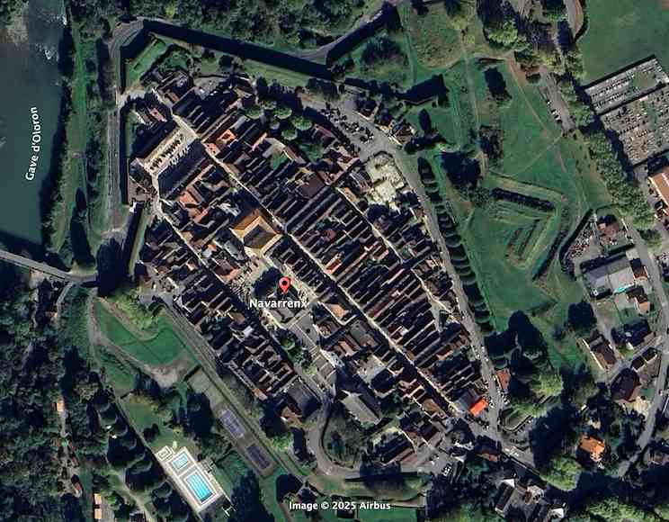 Dept 64 (Pyrénées-Atlantiques) Stará pevnost na řece Gave d'Oloron, která byla vyřazena z provozu až v roce 1887 dekretem z 23. března. Navarrenx je jedním z prvních bastionovaných měst ve Francii. Opevněná od roku 1542 na příkaz Jindřicha II. z Albretu, krále Navarry, se stala avantgardní pevností přizpůsobenou modernímu dělostřelectvu. Její kamenné hradby, hranaté bastiony, kurtiny a suché příkopy z ní činí raný příklad opevnění à la Vauban, přestože mu předchází. Ležící nad řekou Gave d'Oloron, ovládá strategický přechod mezi Béarnem a Soule. Později začleněná do francouzského království si udržela vojenskou úlohu až do 19. století. Výjimečně zachovalá pevnost Navarrenx svědčí o renesančním vojenském inženýrství.