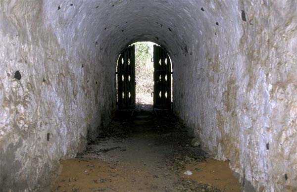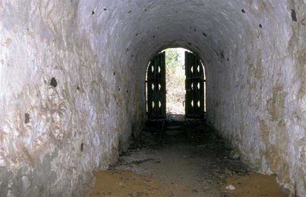 Diego-Suarez. Built to store the ammunition of the peninsula's batteries, to which it was connected by a network of 60 cm railway, it consists of a straight gallery about a hundred meters long, entirely traversed by said railway. Off this gallery branch various rooms, powder magazines, shell stores etc.… The whole is in good condition. Outside, one can see the ruins of a few small buildings used for offices and caretaker accommodation. Military land. JJM 02/12/07