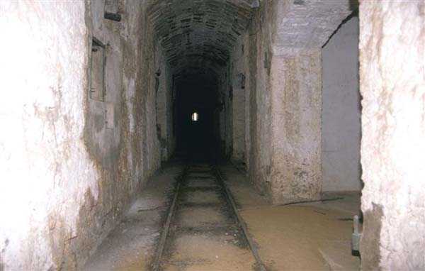 Diego-Suarez. Errichtet, um die Munition der Batterien der Halbinsel zu lagern, mit der er durch ein Netz von 60-cm-Bahnen verbunden war, besteht er aus einem geradlinigen, etwa hundert Meter langen Stollen, der vollständig von besagter Bahn durchzogen ist. An diesen Stollen schließen sich verschiedene Räume an, Pulvermagazine, Geschosslager etc.… Das Ganze ist in gutem Zustand. Außen sind die Ruinen einiger kleiner Gebäude für Bürozwecke und Wachmannschaftsunterkünfte zu sehen. Militärgelände. JJM 02/12/07