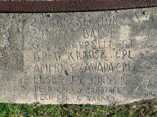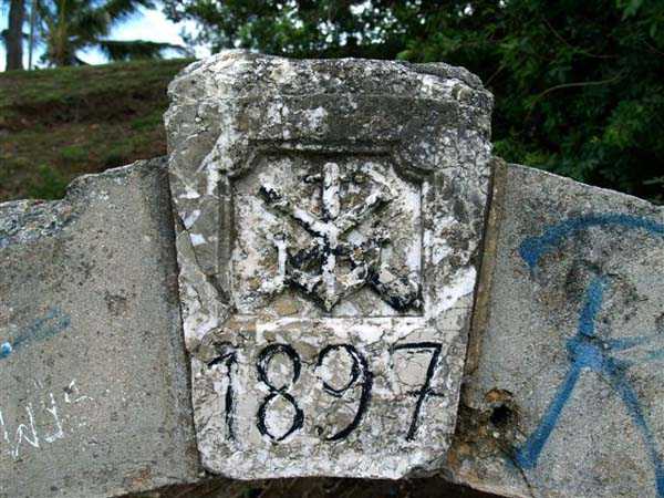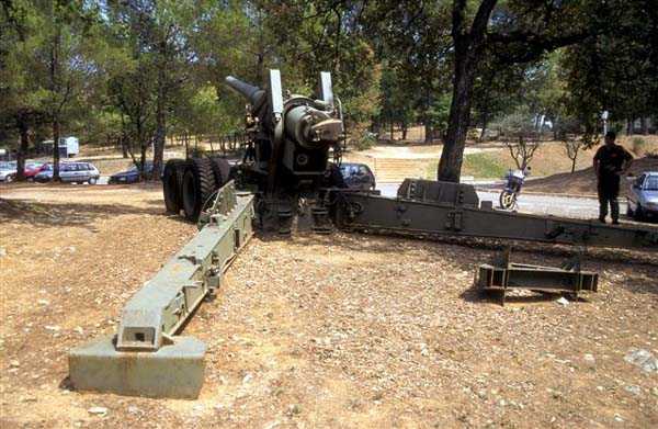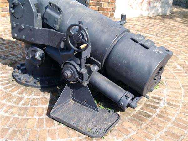 Nouméa. The Ouen Toro battery, or du Ouen Toro battery, is situated at elevation 128 at the southern tip of the Nouméa peninsula. Built in 1897, it is armed with four M guns 19 cm Mle 1870 No. 1, coming from the decommissioning of the armoured corvette Thétis. The armament of this 3,569‑ton ship, launched in 1867, included six guns of this model, four on low‑chassis carriages for reduits and two in two barbette turrets. The two turret guns would arm the Ouémo battery. This equipment, with an actual calibre of 194 mm, fires a cast‑iron shell filled with mélinite, weighing 78 kg, out to 9,000 metres at an angle of 30°. The muzzle velocity of 448 m/s is obtained with a charge of 5.180 kg of BM 3 powder. However, with the low‑chassis carriages the range does not exceed 5,000 metres. This armament was unsatisfactory, and an order from the Inspector General of Artillery recommended its use only with caution… That is why it was replaced in 1902 by four M guns 19 cm Mle 1870‑93 on M carriage Mle 1886 PC. This modern equipment fires the same projectile to 10,000 metres at an angle of 20°, with a muzzle velocity of 675 m/s, obtained with a charge of 13.900 kg of BM 7 powder. The battery was decommissioned in 1913, then re‑armed with personnel from the aviso Kersaint in September 1914, after the bombardment of Papeete by the armoured cruisers of Admiral von Spee’s squadron. It was disarmed again after the destruction of the German ships at the Battle of the Falkland Islands on 11 December 1914. Its equipment was dismantled and sent back to metropolitan France in October 1917. The Ouen Toro battery is the only one in Nouméa to meet the standards then in force in metropolitan France. It has a cavern magazine with a hoist and a concrete projectile magazine. Unfortunately, practically nothing remains visible on the surface of this fine work, so extensively has the French Navy, the present owner of the site, transformed it to build a signals centre, bristling with antennas and guarded like a fortress. The underground magazines may still exist, but we were not permitted to see them. There are said to be two 19 cm Mle 1870 No. 1 barrels still on the site, but we could see only one, oddly placed on a makeshift carriage chassis Mle 1847. Of the actual work all that can be seen now is a masonry porch, the keystone of which bears a chronogram dated 1897. On their arrival in July 1941, the Australians installed, below the work, two 6‑inch Mark IV guns. These pieces, manufactured in 1900 and 1901, came from a decommissioned New Zealand ship. They are placed on concrete platforms, decorated with red bricks, and partly protected by a concrete wall also faced with bricks. An FCP (fire‑control post), sited behind the guns and now disappeared, provided fire direction. We do not know the range of these guns, but given the firing angle allowed by the low height of the carriages it must not have exceeded 15,000 metres. These guns are still in very good condition, but unfortunately heavily tagged. In August 1942, a battery of the 244th Coast Artillery Regiment, US Army, installed its four 155 mm M1 “Long Tom” guns on Ouen Toro. The 155 mm M1 gun is an improvement of the French 155 GPF gun. It can fire a 43‑kg shell out to nearly 24,000 metres, with a muzzle velocity of 853 m/s. Two guns are mounted on a concrete platform, called a “Kelly” mount, which permits 360° fire, on the remains of the old French battery. The other two are placed, on identical platforms, on the Petit Ouen Toro, a terrace halfway up the slope west of Ouen Toro. Besides the two gun emplacements, the position includes a small concrete structure, used as a store or shelter, and a building for quarters of which only the foundations remain. On one of the two platforms can be read, engraved in the concrete, the names of the gun crews, as is often the case in American installations built during the Second World War. The equipment and its crews left for Guadalcanal in January 1943. JJM 30/06/07