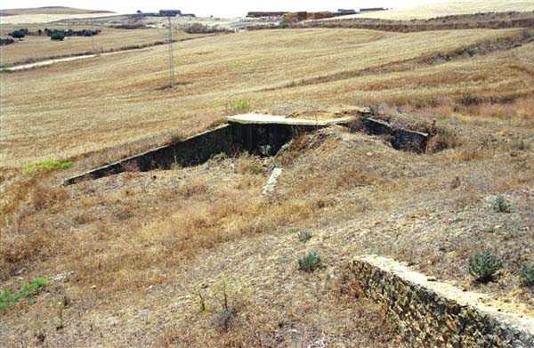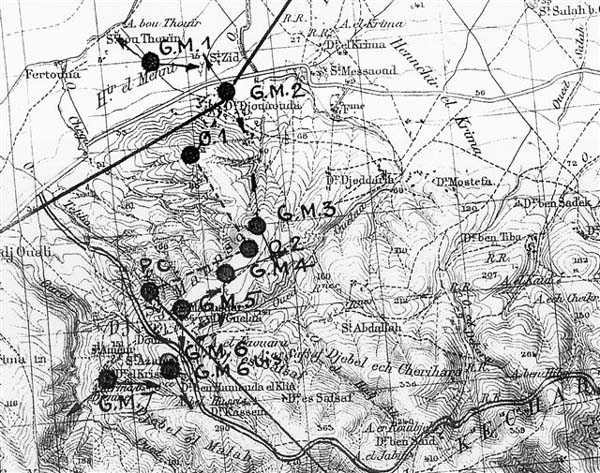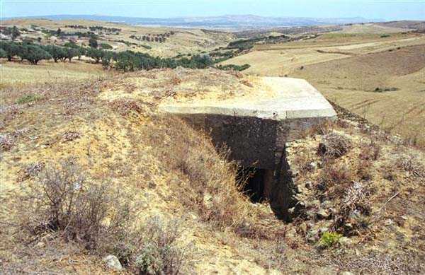 Bizerte. Cette position, rĂ©alisĂ©e au sud du lac en 1932, a pour mission la dĂ©fense de l’arsenal, par l’interdiction du passage entre le lac et le djebel Mansour. Elle comprend six blockhaus doubles pour mitrailleuses, GM 1 Ă 5 et GM 7, deux blockhaus simples pour mitrailleuse, GM 6 et 6bis, deux observatoires, O1 et O2, un poste de commandement et un central tĂ©lĂ©phonique enterrĂ©. Diese 1932 sĂĽdlich des Sees errichtete Stellung hat die Aufgabe, das Arsenal zu verteidigen, indem sie den Durchgang zwischen dem See und dem Djebel Mansour sperrt. Sie umfasst sechs Doppel-Maschinengewehrbunker, GM 1 bis 5 und GM 7, zwei einfache Maschinengewehrbunker, GM 6 und 6bis, zwei Beobachtungsposten, O1 und O2, einen Gefechtsstand und eine unterirdische Telefonzentrale. Deze positie, ten zuiden van het meer gerealiseerd in 1932, heeft tot taak de verdediging van het arsenaal, door de versperring van de doorgang tussen het meer en de djebel Mansour. Zij omvat zes dubbele mitrailleurbunkers, GM 1 tot 5 en GM 7, twee enkelvoudige mitrailleurbunkers, GM ®6 en 6bis, twee observatieposten, O1 en O2, een commandopost en een ondergrondse telefooncentrale. This position, built south of the lake in 1932, has the mission of defending the arsenal, by denying the passage between the lake and Djebel Mansour. It comprises six double machine gun blockhouses, GM 1 to 5 and GM 7, two single machine gun blockhouses, GM 6 and 6bis, two observation posts, O1 and O2, a command post and a buried telephone exchange. Toto postavenĂ, realizovanĂ© jiĹľnÄ› od jezera v roce 1932, má za Ăşkol obranu arzenálu uzavĹ™enĂm prĹŻchodu mezi jezerem a DĹľabal MansĂşr. Zahrnuje šest dvojitĂ˝ch kulometnĂ˝ch bunkrĹŻ, GM 1 aĹľ 5 a GM 7, dva jednoduchĂ© kulometnĂ© bunkry, GM 6 a 6bis, dvÄ› pozorovatelny, O1 a O2, velitelskĂ© stanovištÄ› a zahloubenou telefonnĂ ĂşstĹ™ednu. © JJM 12/02/2026