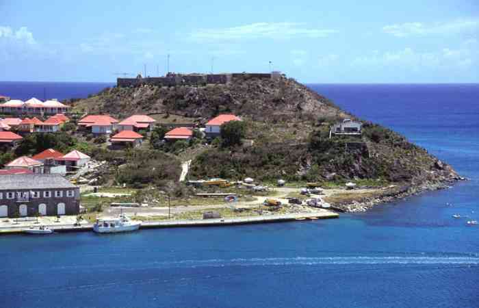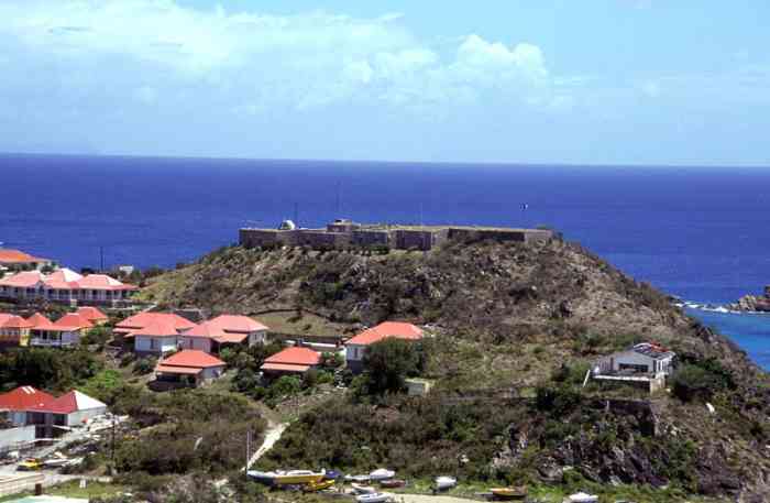 Saint-Barthélémy. Gustavia. Fort suédois construit à partir de 1787. Il abrite actuellement la gendarmerie de Saint-Barthélemy. Schwedisches Fort, erbaut ab 1787. Es beherbergt derzeit die Gendarmerie von Saint-Barthélemy. Zweeds fort, gebouwd vanaf 1787. Het huisvest momenteel de gendarmerie van Saint-Barthélemy. Swedish fort built from 1787. It currently houses the gendarmerie of Saint-Barthélemy. Švédská pevnost postavená od roku 1787. V současnosti zde sídlí četnictvo Saint-Barthélemy. © JJM 31/03/2026