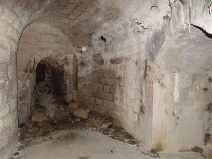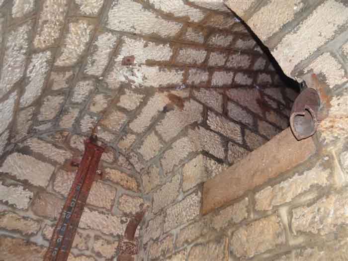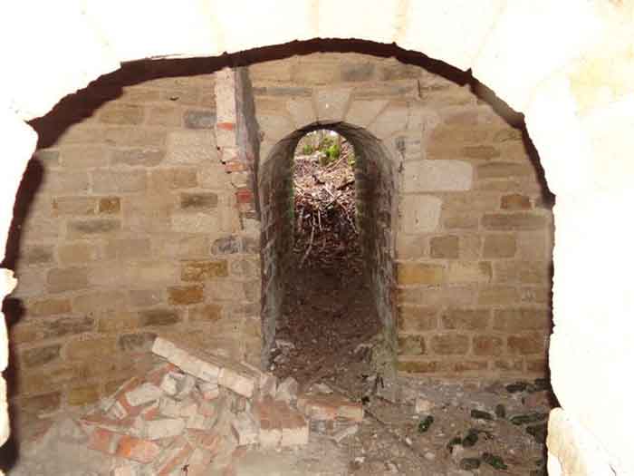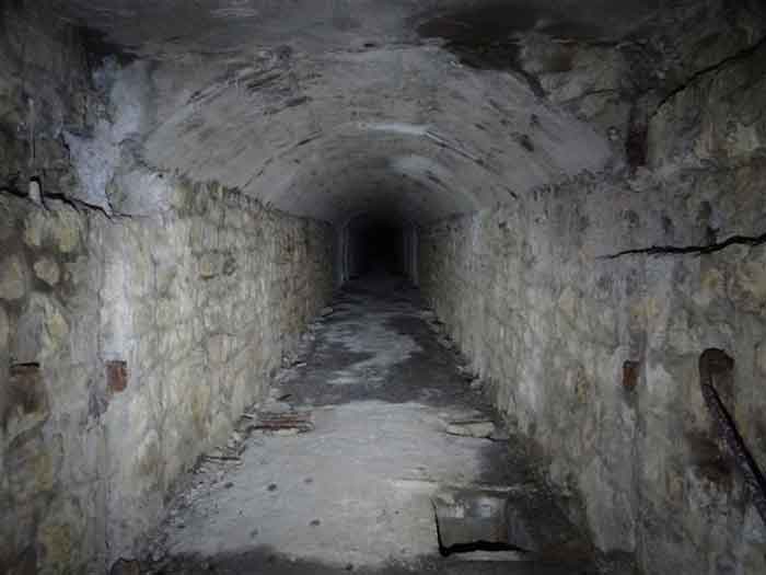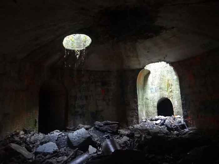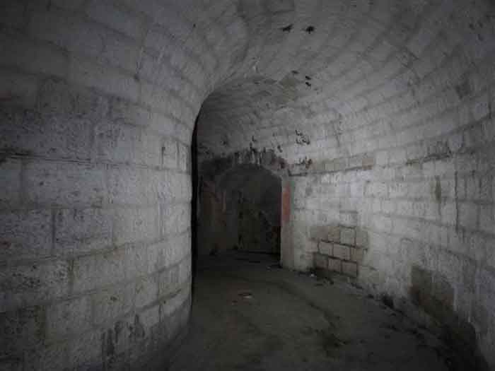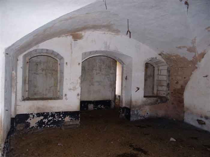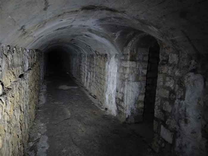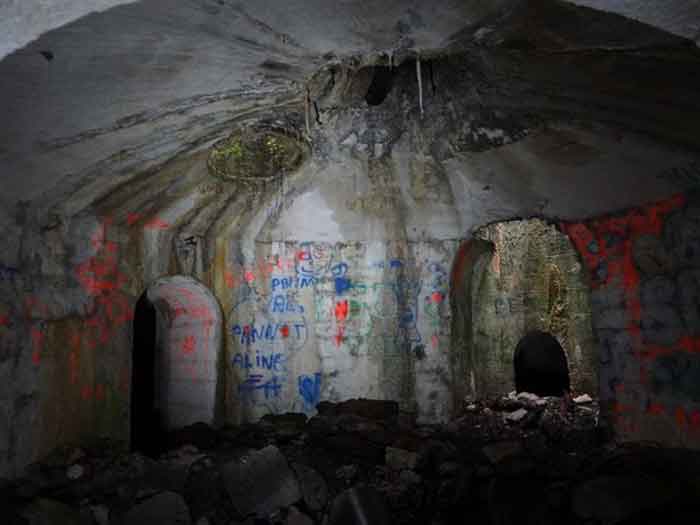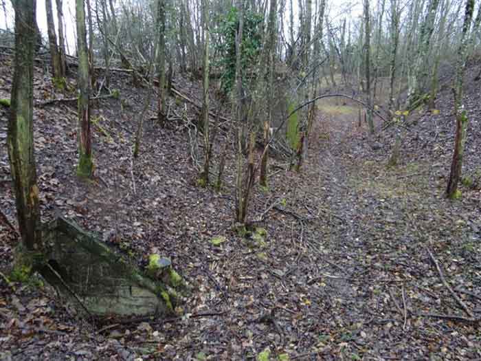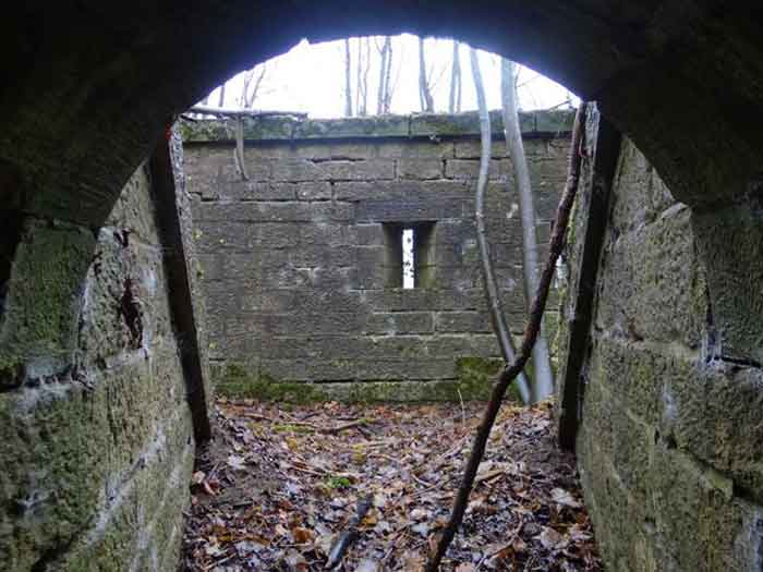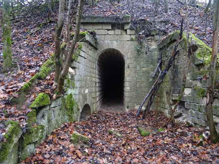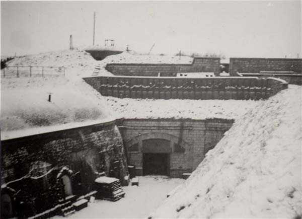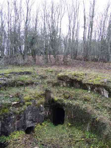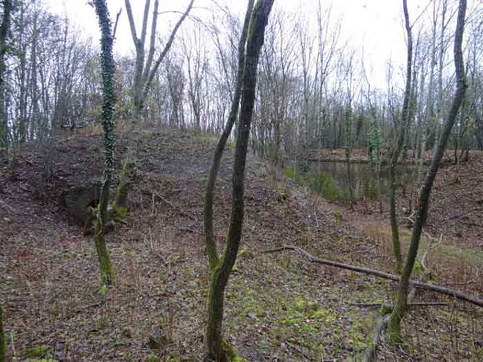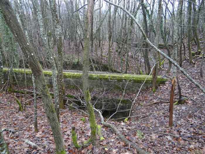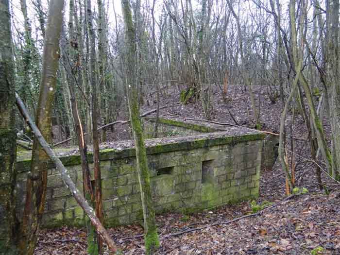 Toul fortified camp, north of the city, 1874-1877. 370 m alt. Battery forming an integral part of the envelope of the fort of Mont Saint-Michel. We only found mention of it under this name on a plan subsequent to the concreting of the redoubt. It occupies the northeastern part of this envelope. Originally, it comprised six shelter traverses, the fourth of which from the left was anchored to an earthen mound extending to behind the eastern battery of the envelope (see envelope of the fort of Mont Saint-Michel). Eleven cannons were placed on the platforms, one firing due west, three oriented north, three others to the NNE and the last four to the ENE. In 1885, a competition was held at the Cotroceni polygon in Romania, between builders, with a view to equipping the Bucharest forts with armor. France participated with a cupola which, in short, was an improvement on that of Commander Mougin's Mle 1876. It is known as the Saint-Chamond cupola. The diameter was now only 4.80 m and the height outside the shaft no longer exceeded 1.20 m. The embrasures were smaller, thanks to a new device for damping the recoil of the guns. The rollers allowing the rotation of the assembly were moved under the voussoirs and the weight relief thanks to the use of a glycerin water pump was not only retained, but improved so as to be able to raise the cupola by 50 cm to facilitate certain maintenance work. The armament consisted of two long 155 mm cannons of the de Bange system. By six votes to three, the French cupola was adopted over its German competitor. However, it was not until 1891 that Romania placed a firm order for 34 examples. This order, however, concerned a modified armor. Indeed, from a cylindrical turret, a domed cap had been chosen, which required a change to a diameter of 6.30 m, despite which the volley of guns still protruded by 50 cm, but a further 0.15 m in height was gained. This modified armor underwent trials at the Chalons camp between October 1887 and May 1888. As an opponent, it had the turret of Lieutenant-Colonel Bussière. Neither really convinced. Better was expected and this improvement would arrive two years later with the turret of Captain Galopin. The two turrets of the competition were recovered and transferred, one (Mougin) here to the fort of Mont Saint-Michel and the other (Bussière) as an annex of the fort of Souville. Around 1890, behind the third traverse, the substructures of the turret were poured, substructures connected by a corridor of about fifteen meters with a small concrete barracks. The block of the turret includes an annular gallery from which starts, straight towards the redoubt, a very long gallery comprising only two diverticula plus a small magazine, diverticula in a dead end. Shortly before reaching the height of salient V of the redoubt, the gallery slants to the left and goes, not far from salient VI of this redoubt, to end at the head of the goods lift going up from the sector magazine (see Mont Saint-Michel). An emergency exit was made towards the ditch of the redoubt near this hoistway head. To sink the barracks and install the impressive (approximately 15 m in diameter) concrete block of the turret, it was necessary to remove crosspieces 4 and 5 of the initial battery. To the right of the barracks, a small gallery leads, after a staircase, to a special construction. In fact, this construction is completely identical to the casemated tower that forms the outer wall of the Mont Saint-Michel fort in front of the Bruley battery. Of its seven musketry loopholes, this defensive structure could only have actions in the ditch of the outer wall. The turret was scrapped by the occupier around 1943 or 1944. Today (12/2011), some walls of the turret block are tagged but not excessively compared to what some forts in the same place have. The support for the glycerin water pump is still there, as are the four pieces of the press pot, which measured 120 cm. The annular gallery and the gallery towards the freight elevator are still immaculate. Opposite the barracks, a shelter traverse remains, while three others remain visible beyond the turret massif, including one that is singularly damaged and the one leaning against the massif accessible only by a narrow corridor forming a traverse arm. An observatory with access through a narrow trench precedes this battery, which we would not bet a cent that it was still armed in 1914. On the other hand, directly to its left, beyond a small covered passageway allowing access to a short portion of the parapet of the envelope escarpment, of the three shelter traverses of the battery of the north curtain wall, only the central one remains, framed by two platforms with concrete sides and parapets. This, however, seems to testify to a late armament. Moreover, the platforms of the Pont-à-Mousson battery would have been made (very) uncomfortable by the shots from the turret if they had to be directed over them. Like the rest of the mountain, the Pont-à-Mousson battery is private property.