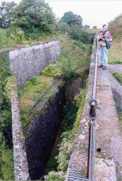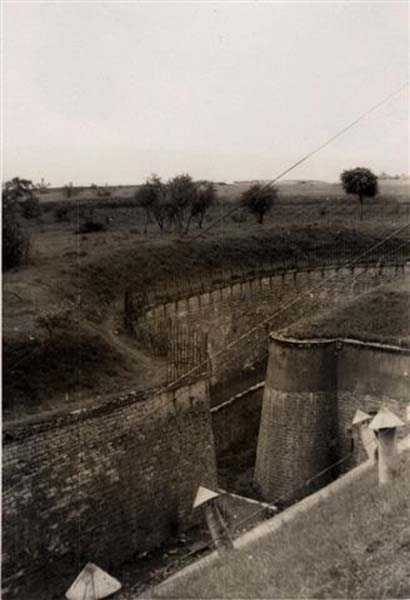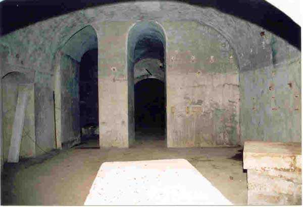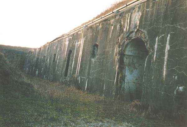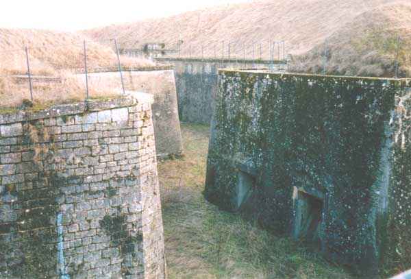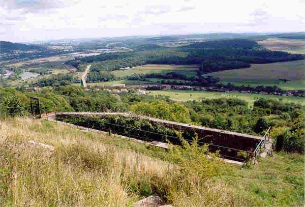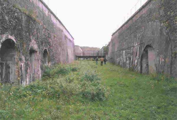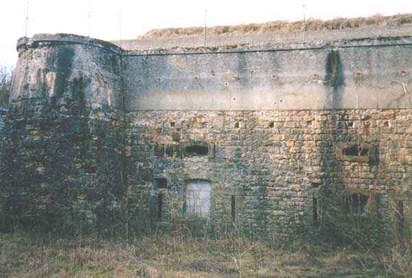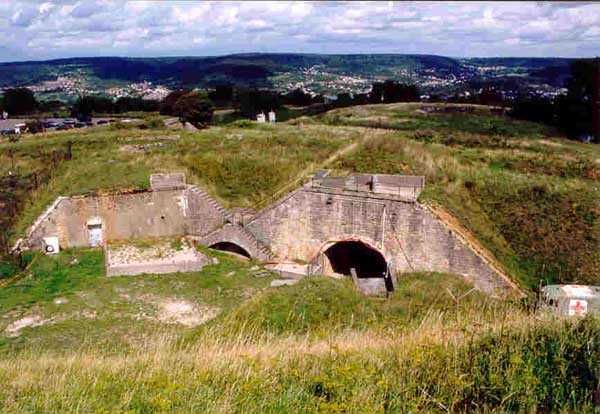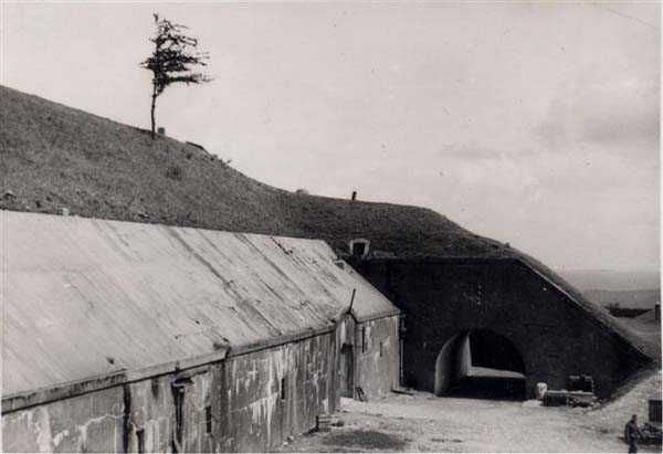 Dept 54 (Meurthe-et-Moselle) Defensive fort to the SE of CR Toul and SSW of Nancy, 1878-1881. 415 m/alt. Called fort Pélissier. 816 men and 53 guns. Modernized from 1893 to 1894 and in 1907. 1 T 155 Mougin Mle 1876, 1 T 155 Galopin Mle 1890, 1 T searchlight and 5 OC. Defensive fort, atypical, whose entire SE face opens onto a sheer drop. The Mougin turret has been lowered. The two courtyards of the barracks are separated by a covered passage with two floors, the first being a terrace. The bread ovens have disappeared. The vast electrical plant, with six bases, still houses a very rare air-cooler. Numerous gun sheds made of simple concrete. A rock magazine located under the barracks (80 staircases and an inclined plane with small rollers) with two freight elevators. Two war barracks, connected by staircases and an inclined plane with large rollers. Two optical stations, one with two directions, very large and whose extension of one of the conduits required the drilling of the wall of the semi-detached escarpment, and one with a single direction whose access must currently be via the conduit. A bascule overhead crane at the north postern. Caponiers having received a concrete cover. 3 concrete casemates for, from NE to SW, 3, 2 and 2 machine guns to beat the glacis of the fort, glacis called "plaine Sainte-Barbe". Extended towards the NE, during the installation of the Galopin turret, by an area surrounded by dry ditches defended by an unconnected double box and a tunnel caponier. Beyond, on the glacis, are 4 gun emplacements that will be designated "battery of the Chapelle". An annex battery to the northwest (of Saint-Jean) and a second to the southwest (of Bainville). On either side of the fort, on the cliff side, we find two concrete observatories with visors and two casemates for 90 cm searchlights, exactly as on the coasts. Privately owned since 1999, but visits are possible, even by renting a room in the fort, because this superb structure, quite complex and tormented, requires more than a day for a comprehensive visit. In good weather, the landscape is of rare beauty.