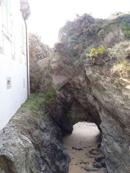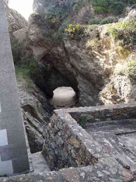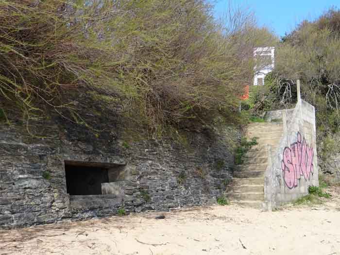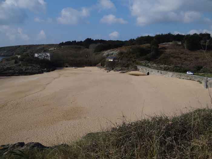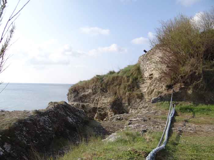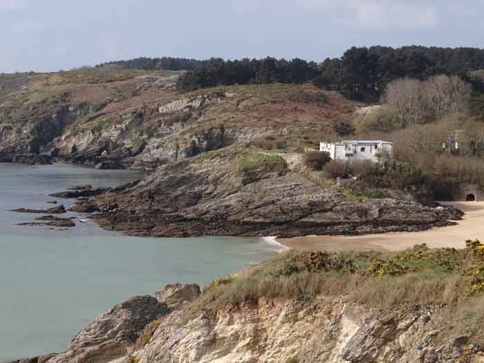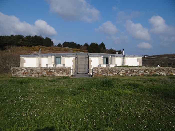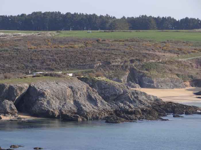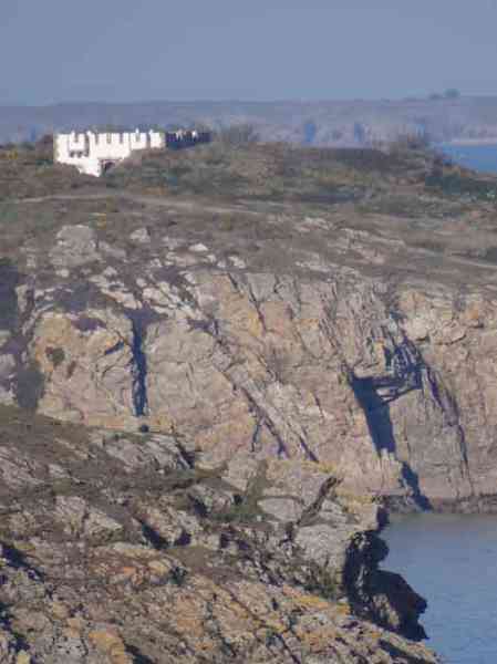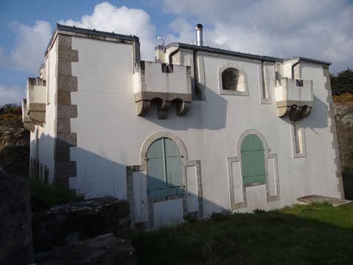 Place de Lorient, Belle-Île, immédiatement au sud de la pointe de Kerdonis. Quand on est sur place, que l’on regarde la plage, on est surpris de l’intérêt tout relatif porté par Vauban à ce site possible pour un débarquement. L’intéressé le justifie de la sorte : "À chaloupes très mauvais, la mer y étant presque toujours agitée, l’entrée nette, les bords ferrés et élevés de même que la côte qui est très fâcheuse. Il y a deux échouages, le premier de 18 toises de large et le deuxième de 50 ; l’un et l’autre de sable fort plat, où la mer déplie furieusement en sorte qu’il est rare de trouver un temps propre à y entrer. (…)". Force nous fut de constater que ce 3 avril 2012, date de notre visite sur place, à l’instar d’un certain matin quelques 251 ans auparavant, fut donc un de ces rares jours propices à un débarquement. Ses directives de palissader la plage au niveau de la laisse de haute mer et d’établir une batterie de trois pièces au sud de la plage ont été rapidement suivies d’effet. Une avancée rocheuse, désignée alors "presqu’île de Bludel", se prêtait à ce dessein. Un plan d’un nommé Detaille, de 1780, nous en est parvenu. Il s’agissait d’une batterie en forme de fer à cheval, avec fossé dérocté à la gorge, un petit corps de garde et magasin à poudre sur la gauche en entrant et quatre embrasures évasées dans le parapet pour les pièces d’artillerie. De ces quatre embrasures, une était orientée vers l’est, une au sud-est et deux au sud ! Aucune ne pouvait avoir d’action sur la plage. Cette mission était confiée à un retranchement garni de nombreux créneaux, de surface à peu près similaire à celle de la batterie et accolé à la face nord de cette dernière. Les fortifications de la pointe de Kerdonis n’existant pas encore, les Anglais tentèrent donc de débarquer ici le 8 avril 1761. Heureusement, il existe un retranchement, "construit en 1759 et il barre la vallée morte près de la redoute." Chacun interprétera cette phrase, laquelle nous a valu –et nous vaut encore- quelques interrogations. Le rôle précis des fortifications reste peu connu mais on sait que la batterie résista et qu’avec l’aide des "détachements des forts circonvoisins", les Anglais furent repoussés : "Outre les bateaux plats coulés à fond, il y eut des centaines d’hommes tués ou noyés (et) 360 prisonniers". On le sait, l’Anglais débarqua avec succès un peu plus au nord, le 22 du même mois. Après l’occupation, la batterie connaît quelques améliorations et travaux jusque vers 1780. Elle est ensuite réarmée dès 1792, puis régulièrement armée, entretenue et gardée par une quinzaine d’hommes. La Commission de 1841 juge le site comme étant de première importance et souhaite y voir une tour n° 2, armée de deux obusiers et huit fusils de rempart, avec trente hommes d’infanterie et dix canonniers. Élevée en 1861, elle sera la seule tour modèle 1846 de Belle-Île. Pour les besoins de son implantation, le rocher fut excavé et le terrain taluté pour que seule la terrasse commande la plage ; ses faces sud-ouest et sud-est sont entièrement défilées par le rocher. Les déroctages furent tels que la lecture des anciennes installations est devenue très compliquée. Près de son saillant III, une coupure dans la falaise a été obturée d’un mur maçonné avec passage en tunnel pour le flot. Devant la gorge, côté plage, un mur percé de larges embrasures (désormais obturées) garni de constructions allemandes de la seconde guerre mondiale, est aussi percé d’un passage en tunnel laissant la marée pousser ses eaux jusque dans le périmètre de la batterie à marée haute. Les embrasures, anciennes et plus récentes, battaient toutes la plage perpendiculairement au retranchement de fond de baie. Une des casemates allemandes, il convient de le souligner, a comme blindage frontal, coulé dans le béton, un bouclier de canon G de 95 mm modèle 1888. Toujours devant la gorge, les mêmes Allemands ont bétonné deux petites soutes à munitions. Ils avaient codé leurs installations ici Wn I 318. La tour est particulièrement jolie. Les créneaux verticaux de sa plate-forme sont tronconiques. Côté mer, une passerelle permet désormais de gagner via un pont-levis un terre-plein avec petit parapet. Cette passerelle existait-elle lors de la période opérationnelle de l’édifice ? Quoi qu’il en soit, chaque centre des trois autres côtés de cette plate-forme crénelée comporte une embrasure pour petite pièce d’artillerie. Singulièrement, le fronton de l’entrée affiche clairement, gravé dans le linteau de la porte : "Poste de Port-Andro". Sur plusieurs de ses faces, les locaux du sous-sol alternent une petite ouverture verticale et une horizontale. Lors de notre passage sur place, le pont-levis de l’entrée était relevé aussi ne sommes-nous pas en mesure d’indiquer si les contrepoids présents sont ceux d’origine ou non. La tour est peinte en blanc (04/2012) à l’exception de ses chaînes d’angle et contours de baies dont les pierres contrastent superbement avec le reste des murailles. Entre le 13 juin et le 11 juillet 1874 on proposera au déclassement pas moins de 22 vieilles batteries sur Belle-Île, dont celle de Port An Dro. Ce déclassement sera entériné définitivement en 1889. Le poste fut vendu, pour 2 000 F (mise à prix 1 700 F) par les Domaines le 11 septembre 1891 à M. Emile Cazalet (le même qui achetât le Poste du Port-Maria), qui le revendit le 13 décembre 1893 à Me Martial-Achille Dieuaide, notaire de son état, et transformé en résidence secondaire. Force est de constater que l’actuel propriétaire prend grand soin de son bien qui nous est apparu comme un des plus beaux édifices de l’île. La tour a été inscrite à l’Inventaire supplémentaire des Monuments Historiques le 30 octobre 2000. Le poste ou la batterie ont été trou