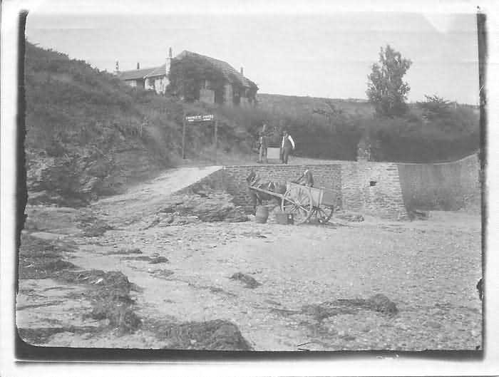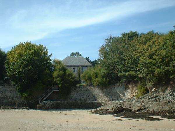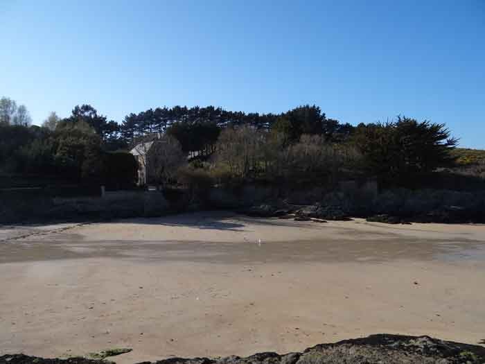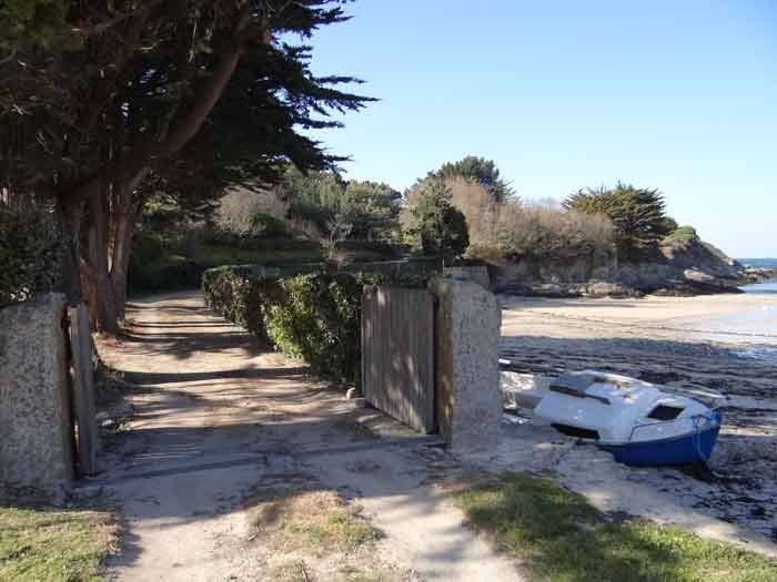 Fortress of Lorient, Belle-Île, northwest of Le Palais. 5 m/alt. Some 1100 m west of the point of Taillefer, nestled at the bottom of a narrow but deep cove, the Port-Fouquet post had the mission of preventing any landing at that spot. Remarkably, Vauban had not recommended any battery there, judging the place "dirty and only good for longboats". The 1841 Commission did not share this opinion and, after giving up on creating a post model (see description at Port-Maria), had a guardhouse model 1846 no. 3 for twenty men erected in 1859, while the shores of the cove were cleared of rocks to give them a deterrent verticality. The outlet of the small beach was barred by a masonry wall, of which practically nothing remains today (04/2012). Perfectly concealed from view of the open sea, note that the entrance to the guardhouse faces the beach. It thus curiously presented its most sensitive width towards the supposed direction of danger. This seems to indicate that it was "only" barracks and a stronghold of resistance and that the action of its men took place primarily from a nearby entrenchment now disappeared. Proposed for declassification during the sessions of the Coastal Defence Commission between 13 June and 11 July 1874, the post was not actually declassified until 1889. Less than two years later, in 1891, it was purchased by the painter Henri Trouville (30/06/1849 - ?). Having become a residence, the guardhouse has been somewhat altered without overly altering its military character. The terrace, raised to a living floor, is covered by a rather aesthetic black slate roof. The property moreover appears perfectly maintained. The drawbridge has retained its bolts and, above all, its original counterweights, an extremely rare thing. Above this entrance, the terrace included a single embrasure for a possible – as it was not organically provided for – small-calibre piece which covered the front of the wall barring the beach. For the record, it served as quarters for a few men during the German occupation (Wn I 304) of the Second World War. The guardhouse was listed in the Supplementary Inventory of Historical Monuments by decree of 30 October 2000. Private property, not visitable.
